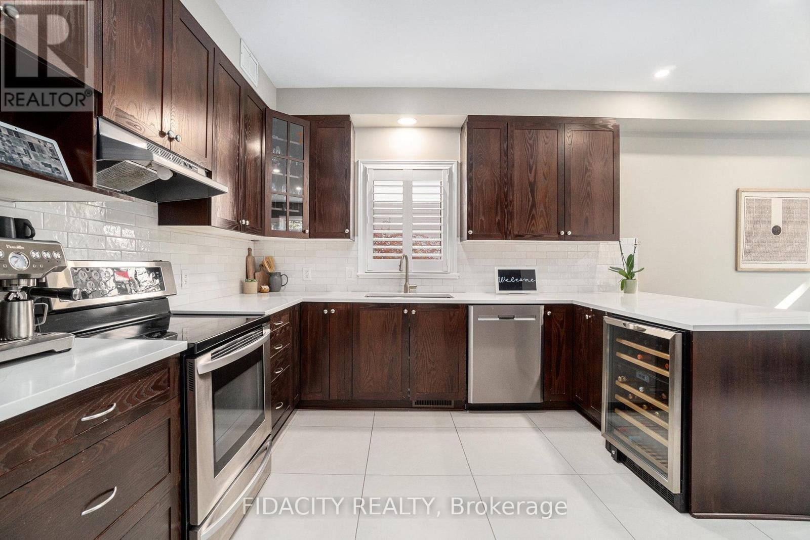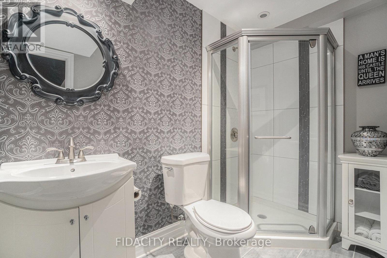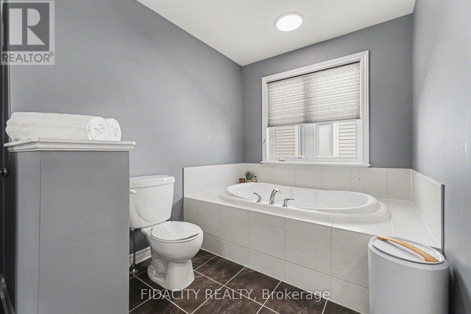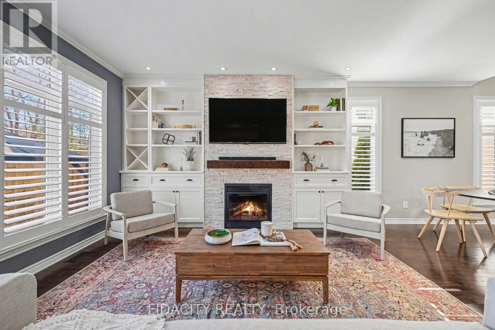This exceptional 4-bedroom, 4-bathroom detached home stands out from every angle, offering a seamless blend of luxury, thoughtful design, and rare privacy with no rear neighbours. From the moment you arrive, the striking curb appeal makes a lasting impression, highlighted by a beautifully crafted stone walkway, high-end exterior lighting, and a covered front porch. Inside, a spacious foyer welcomes you with soft contemporary tones, rich dark hardwood floors, and refined finishes including crown moulding and California shutters throughout. The open-concept main level is designed for both comfort and style, featuring a stunning kitchen with deep-toned cabinetry, quartz countertops, a full wall of pantry storage, and a peninsula island with seating. A bright breakfast area provides direct access to the backyard. The living room offers a warm and inviting atmosphere, anchored by a custom stone fireplace wall with built-in shelving, and enhanced by smooth ceilings and pot lighting throughout. A well-appointed main-floor office offers dual workstations, ideal for productivity at home. Upstairs, the primary bedroom serves as a relaxing retreat with a cozy window bench, walk-in closet, and spa-inspired ensuite. Three additional bedrooms, a full bathroom, and a generous laundry room with built-in storage complete the upper level. The fully finished basement is designed for entertaining, featuring a 9-foot wet bar with a restaurant-style feel, commercial-grade draft beer fridge and bar fridge, a third full bathroom, and a spacious recreation area. Outdoors, the private backyard offers a peaceful escape with tiered landscaping and mature greenery. The patio features a gazebo-covered entertainment area with dedicated lounge space and a full electrical setup. Located in the desirable Jackson Trails community, this home is ideally situated close to Catholic and Public schools, parks, walking paths, shopping, and dining, with convenient access to Highway 417.