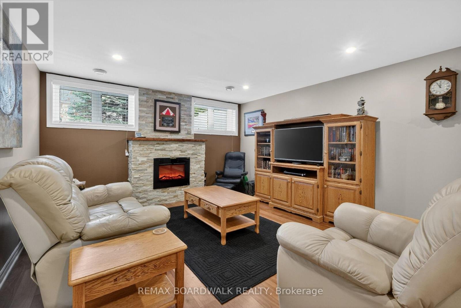 Welcome to the sought-after Bristol model by Tamarack Homes, ideally located in the desirable Jackson Trails community of Stittsville. This family-friendly neighborhood offers exceptional convenience just minutes to DND Carling Campus, Tanger Outlets, Canadian Tire Centre, Stittsville Main Street, schools, parks, recreation, public transit and walking trails. Designed for modern living, the open concept main floor features 9' ceilings, hardwood flooring and an inviting layout ideal for both everyday living and entertaining. A main floor den provides an excellent home office or flex space, the (schrank) bookcase can be included if desired. The spacious kitchen offers tile flooring, ample cabinetry and center island overlooking the living room with gas fireplace and adjoining dining area. A bright breakfast area provides direct access to the maintenance-free rear deck and fully fenced yard. The second level features a generous primary bedroom retreat complete with walk-in closet and five-piece ensuite with double sinks and separate shower. Three additional well-sized bedrooms offer double closets and large windows. Convenient second floor laundry includes upper cabinetry and laundry sink. The finished lower level expands the living space with a large family room featuring an electric fireplace, oversized windows and pot lighting, plus a fifth bedroom and full four-piece bathroom ideal for guests or extended family. Ample storage and utility space included. Furnace and air conditioner inspected and cleaned annually. Owned on-demand hot water tank and air exchanger included. Double car garage with automatic opener, interlock walkway and driveway surround. Fully fenced yard with storage shed.24 hour irrevocable required on all offers. Offers considered between 09:00 and 21:00 hours.