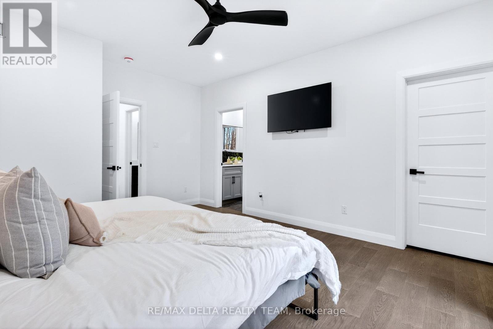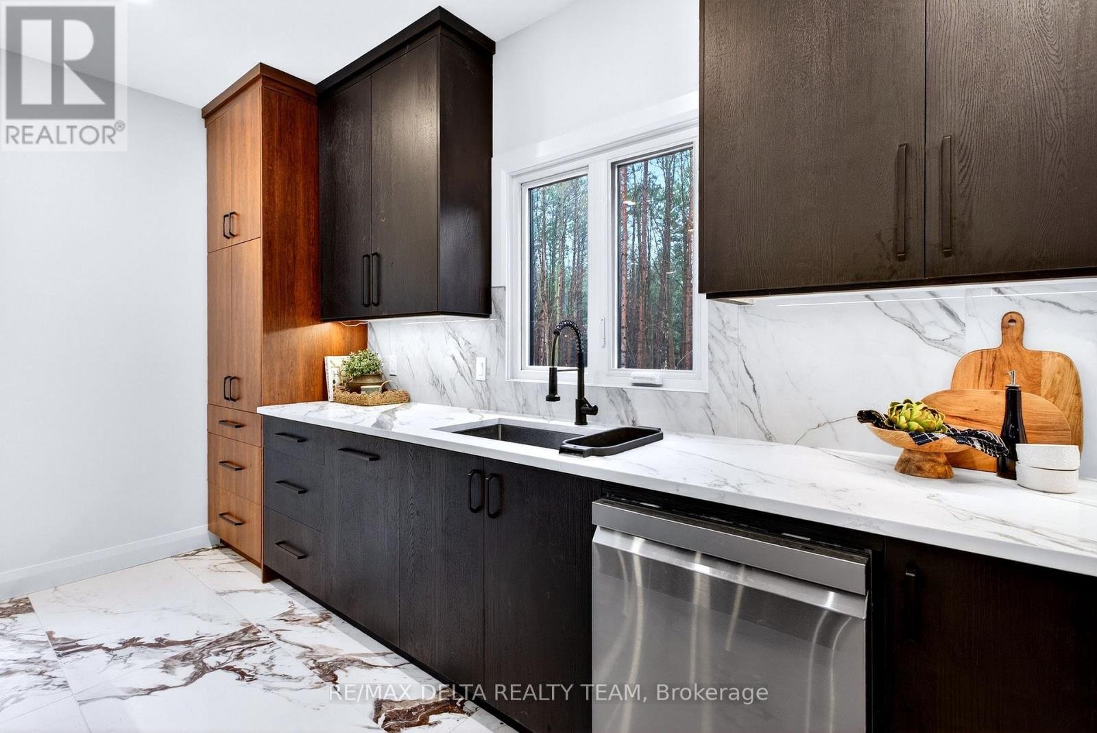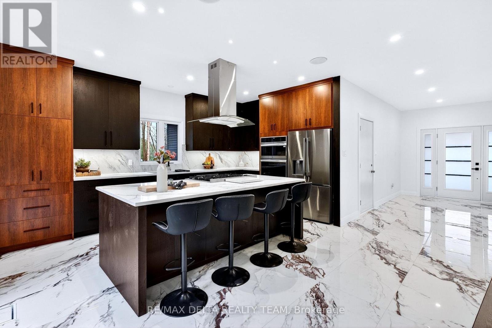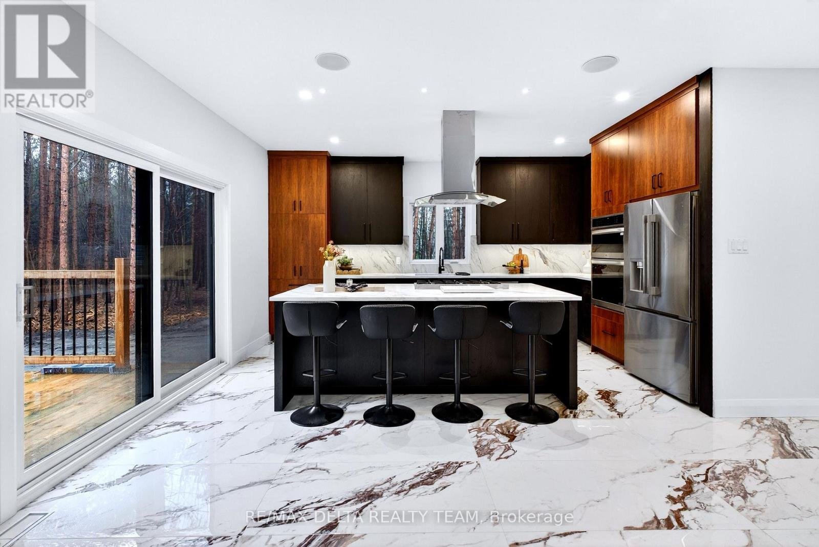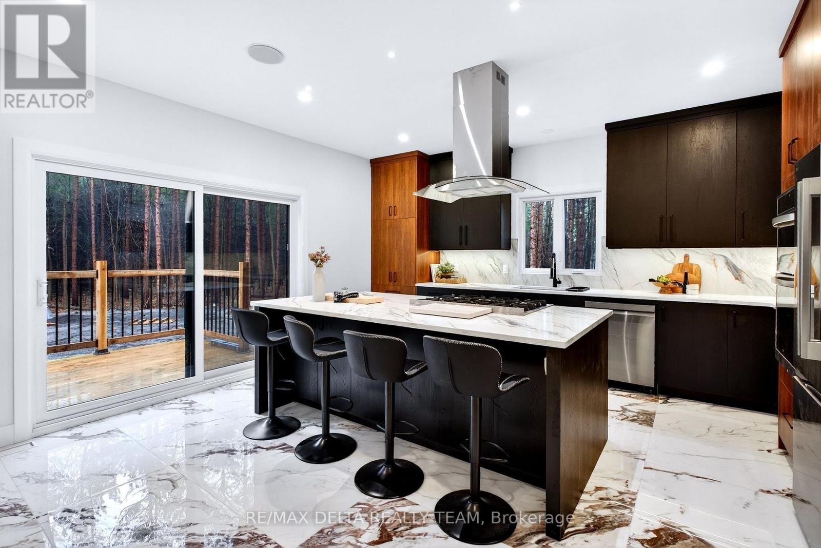 OPEN HOUSE, Sunday April 26th, 2-4pm! Welcome to Springhill-where modern luxury meets total privacy. This brand new bungalow sits on over 2 acres within city limits, offering a rare blend of upscale living and peaceful seclusion on a quiet street. From the moment you arrive, the home makes a statement-especially with its oversized garage featuring two single bay doors, soaring 12-foot ceilings, and an impressive 26-foot depth. Perfect for trucks, toys, or a true workshop setup. Inside, you're greeted by 9-foot ceilings on both levels and a bright, open-concept layout designed for both everyday living and entertaining. The heart of the home is a stunning, contemporary kitchen with a quartz island, matching counters and backsplash, two-tone cabinetry, and a striking chimney-style hood fan above the island gas range. A wall-mounted double oven and premium appliances complete the space. Large patio doors flood the area with natural light and lead to an expansive deck-ideal for hosting or simply enjoying the privacy of your surroundings. The living area features custom built-in cabinetry with a mounted TV and designer display niches, adding both function and style. The main floor offers three well-sized bedrooms, including a beautiful primary suite with an oversized glass shower in the ensuite. High-end finishes continue throughout, from the hardwood flooring to the refined tile work, plumbing fixtures, and mirrors. Convenient main floor laundry adds to the thoughtful layout. Downstairs, the fully finished basement mirrors the quality above with 9-foot ceilings, a massive recreation space, a fourth bedroom, and a full bath. Whether you envision a home gym, theatre, office-or all three-there's room to make it happen. A truly rare opportunity to own a turnkey, high-end home on a large, private lot in Springhill.