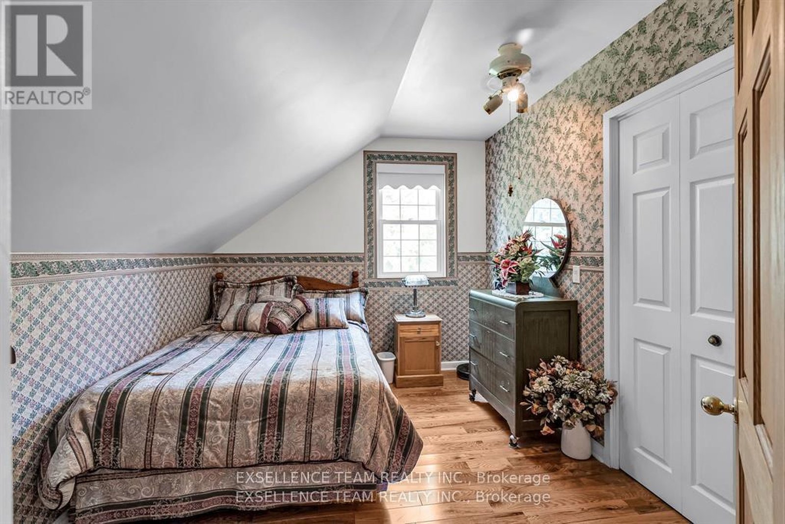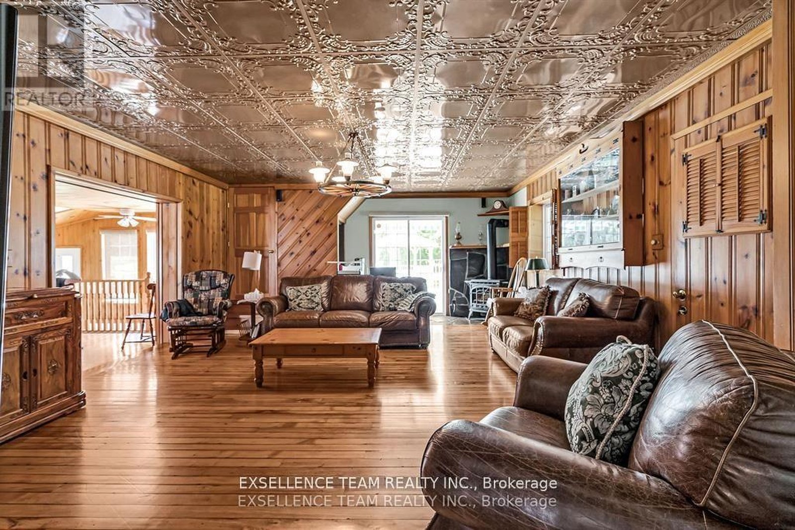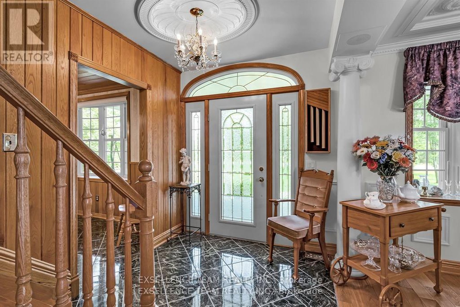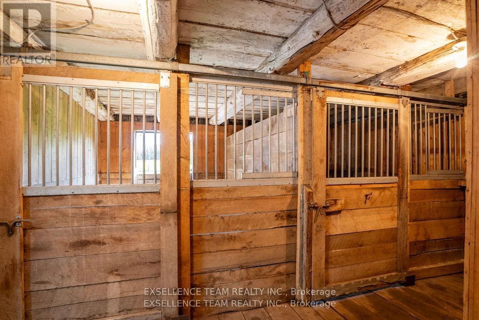 This 34 acres custom home can only be described as elegant. From the Gorgeous Family Room that features distinctive ceilings imported from Belgium and 3 inch Hickory Flooring. Patio doors that lead out to a covered porch, that flows into a beautiful landscaped backyard accented with a Gazebo and Stone waterfall. Great for family gatherings, or weddings. The Gourmet kitchen boasting beautiful granite counter tops, lots of cupboard and stainless steel appliances. Formal Dinning room that features distinctive ceilings that were imported from Italy. This home features 4 bedroom, 4 bathroom. Master Bedroom has ensuite bathroom and walkout balcony. Lower level features a kitchen, bathroom and laundry room that could be used as an in-law suite or office space. Newly refurbished Barn all set up for horses complete with 4 box stall, corral, pasture, hay field, storage space. A wood area complete with trails for nature walks, hunting or 4 wheeling. No power no problem with 10,000 Watt Generac. Flooring: Vinyl, Hardwood, Ceramic.