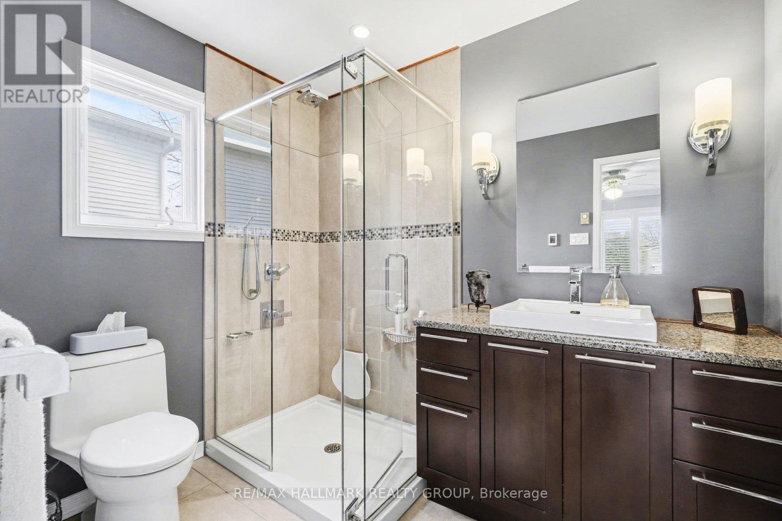 Welcome to this beautifully upgraded, EXCEPTIONALLY MAINTAINED home located on a quiet residential street directly across from a PARK. This is the perfect layout for young professionals who love to entertain or families with teenage children, offering both functional living space and room to gather. Impressive curb appeal with interlock driveway and walkway, featuring timed lighting on the front steps and post.The main floor offers CROWN MOULDING, BARWOOD HARDWOOD flooring, CALIFORNIA SHUTTERS in the living and dining rooms and primary bedroom, as well as convenient main floor laundry and central vacuum. The custom ASTRO DESIGN KITCHEN features QUARTZ countertops, porcelain flooring and backsplash, and BUILT-IN APPLIANCES including cooktop, wall oven, and microwave. A bright 3-SEASON SUNROOM overlooks the backyard, which offers a true tropical oasis feel. INTERLOCK patio, PERENNIAL GARDENS, STORAGE SHED, and PERGOLA (electric hot tub cover). Outdoor wiring with GFI hookup is in place for a future hot tub.The primary bedroom includes a RENOVATED ENSUITE, with walk-in shower, quartz counters, and HEATED PORCELAIN floors. The fully finished lower level offers two additional bedrooms, a spacious family room, and a full bathroom-ideal for extended family or guests-along with another lower level finished area, perfect for storage or a FOURTH BEDROOM. Custom front door with 48" opening provides enhanced accessibility. A perfect blend of quality upgrades and a peaceful setting.