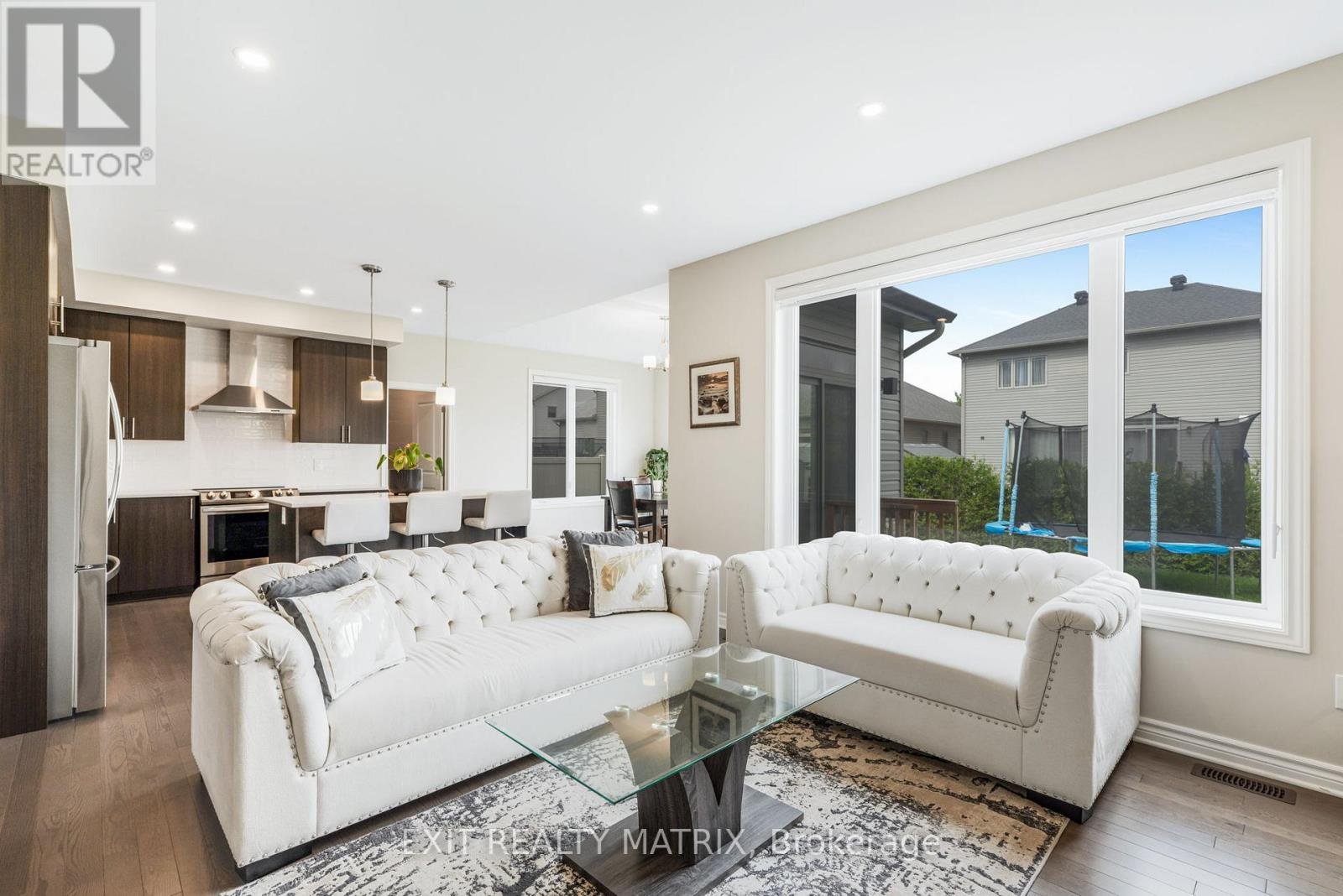 Stylish, spacious, and perfectly positioned, this impressive two-storey corner-lot home is tucked into one of the area's most sought-after, family-friendly neighborhoods. Surrounded by lush hedges and a sleek PVC fence, it offers enhanced privacy with standout curb appeal. Inside, discover 5 bedrooms plus a main-floor den/office that can easily be converted to an additional bedroom, and 4 bathrooms, offering generous space for growing families. The open-concept layout is filled with natural light and thoughtful design, featuring a front office, formal dining room, and a striking double-sided fireplace with a warm oak mantel connecting the main living areas. The chef-inspired kitchen is the heart of the home, complete with quartz countertops, a stylish backsplash, a large island, and a walk-in pantry. A bright dining nook with vaulted ceilings and backyard access adds charm and versatility, all set atop elegant engineered hardwood flooring. Upstairs, four spacious bedrooms and two full bathrooms provide comfort and convenience for the whole family. The primary suite is a luxurious escape with a spa-like 5-piece ensuite and walk-in closet. The fully finished basement adds even more living space with a large family room, an extra bedroom, and a full bathroom, ideal for guests, teens, or entertaining. Step outside to your private backyard retreat with a shed and space to unwind. With parks, scenic walking trails, and everyday amenities just moments away, this home blends comfort, privacy, and location in one irresistible package.