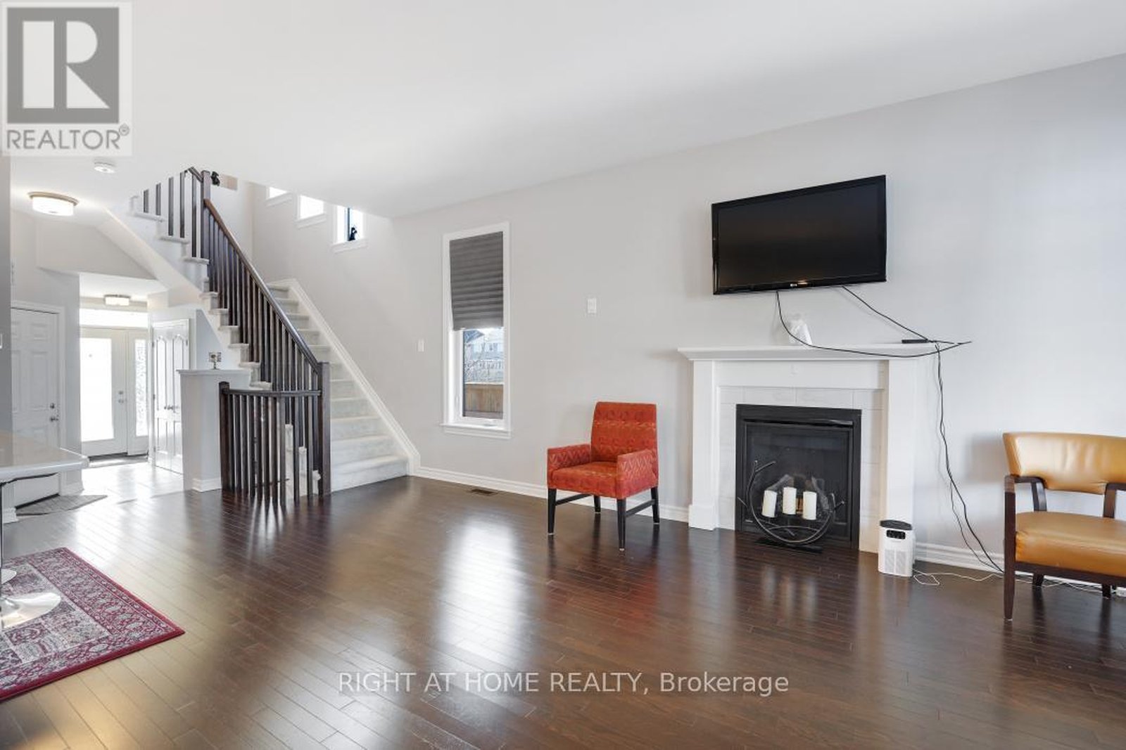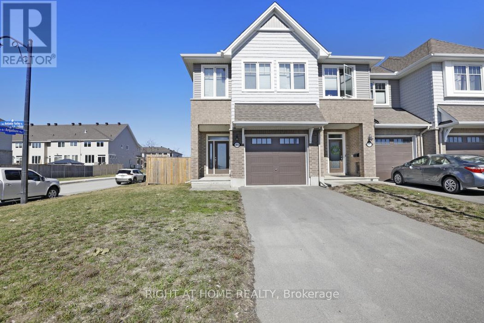 This corner lot unit townhome offers a bright, open layout with modern flooring throughout the main level and extra windows that fill the home with natural light. The open-concept main floor is anchored by a modern kitchen featuring quartz countertops, island with seating, stainless steel appliances, ample cabinetry, and pantry, flowing seamlessly into the living and dining areas. A gas fireplace adds warmth and definition to the space. The second level includes 3 spacious bedrooms, including a well-appointed primary suite with a walk-in closet and a convenient laundry room with cabinets and sink with quartz countertop. All upper level washroom sinks are with quartz countertop. The finished basement provides flexible additional space ideal for a family room, home office, or a gym, along with a large dedicated storage room. The fully fenced backyard with interlock offers privacy and everyday functionality. Newly built and well maintained, this home is located directly across a future school and a brand new park in Cardinal Creek, a growing, family friendly community known for its parks, trails, and convenient access to shopping, schools, and commuter routes.