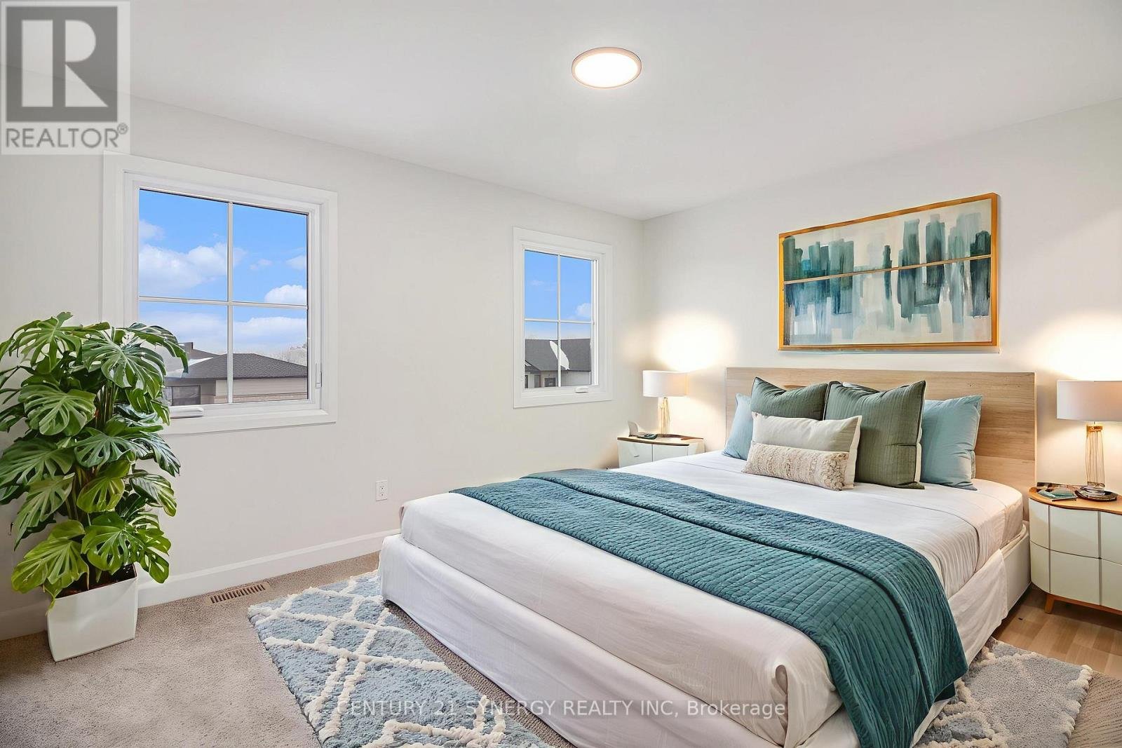 *FULL HST REBATE INCLUDED IN LISTING PRICE*Agent must be present on initial visit*Pictures are of similar model*Farmhouse meets modern! Beautiful property built by trusted local builder. Gorgeous semi detached 2Storey with approximately 1688sq/ft of living space, 3 beds & 3 baths and a massive double car garage to provide plenty of room for your vehicles and country toys. The main floor has an open concept layout with a spacious kitchen, a large 9ft island with breakfast bar with quartz countertops, ample cabinets & a large kitchen walk-in pantry. Luxury vinyl floors throughout the entry way, living room, dining room, kitchen, bathroom & hallway. Plush carpeting leads you upstairs into the bedrooms. Primary bedroom offers a spacious walk-in closet & a 3pc ensuite bath. 2nd/3rd bedrooms are also spacious with ample closet space in each. Full bathroom & Laundry room on second floor. Backyard offers a stunning 25' 8" x 8' 0" covered deck. The basement comes unfinished. Eavestroughs included. No Appliances or AC included. Site plan, Floorplan, Feat. & Specs/upgrades attached!, Flooring: Vinyl, Flooring: Carpet Wall To Wall