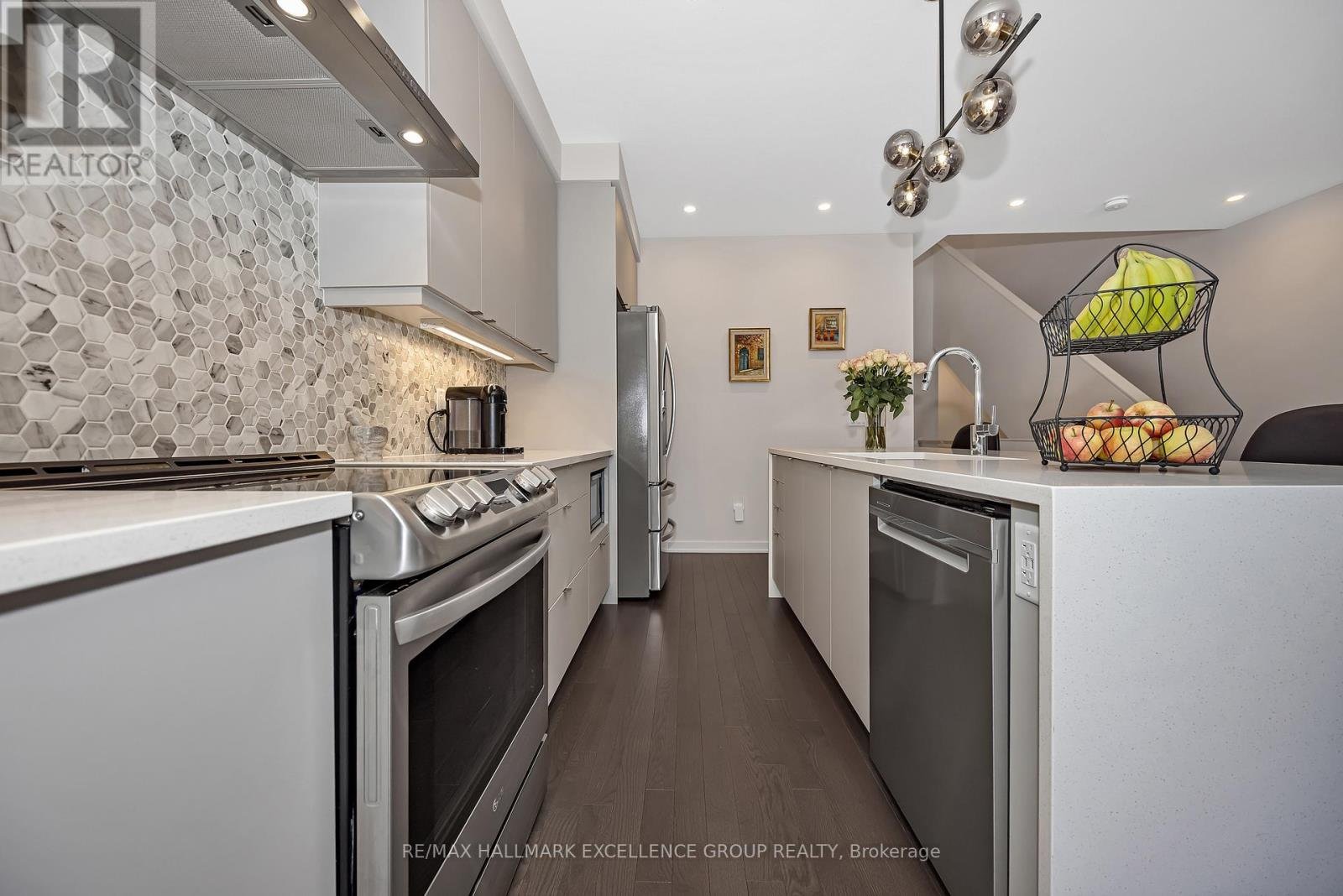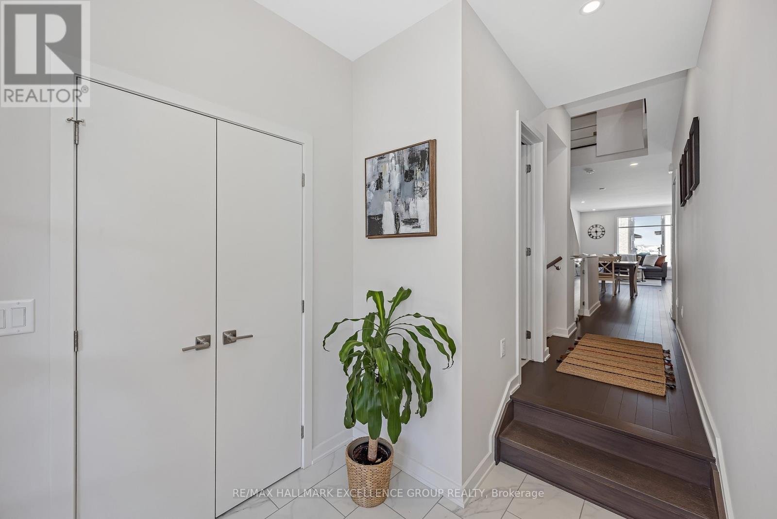Looking for a stunning home ,built in 2025 from a premium-quality builder? Skip the risk and wait for HST rebate confirmation-get this like-new HN Homes build for even less without the stress, plus approximately $20,000 in upgrades, not counting the high-end appliances, gutters and gas lines already installed for BBQ and stove. No construction dust or noise to tolerate, pavement and grass already done. This beauty is one of the largest square-footage middle units on the market, in sought-after Riverside South.Built by award-winning HN Homes, this Weston executive townhome offers 2,112 sq ft of finished interior living space (as per builder) with an elegant, contemporary layout. The open-concept main level is flooded with natural light from oversized windows. Hardwood floors, 9+ ceilings, steel-and-glass railings, & a cozy gas fireplace create a bright, upscale feel.The chef-inspired kitchen is a showpiece: ultra-resistant, eco-friendly PET (polyethylene terephthalate) cabinetry to the ceiling with soft-close doors and drawers, pantry, breakfast bar, upgraded backsplash, stainless steel appliances & oversized quartz counters w/waterfall edge. Matching PET cabinetry continues in both bathrooms and the laundry room.Up the extra-wide hardwood staircase: three generous bedrooms, two full baths, upgraded laundry & a versatile loft for office or lounge. The primary suite features a coffered ceiling, large walk-in and spa-style ensuite with double vanity and glass corner shower. Finished lower level offers spacious family room, egress window, abundant storage, and rough-in for a future three-piece bath. Southern rear exposure, sodded yard, low-maintenance Hardy Board exterior, and insulated garage. Extras: whisper-quiet central A/C, Wi-Fi thermostat, mudroom, pre-rough EV charger, pre-wire Wi-Fi extender and future solar panels, and TV wiring on all floors. 24 hours irrevocable on all offers.Home is still under full warranty and available for summer closing.