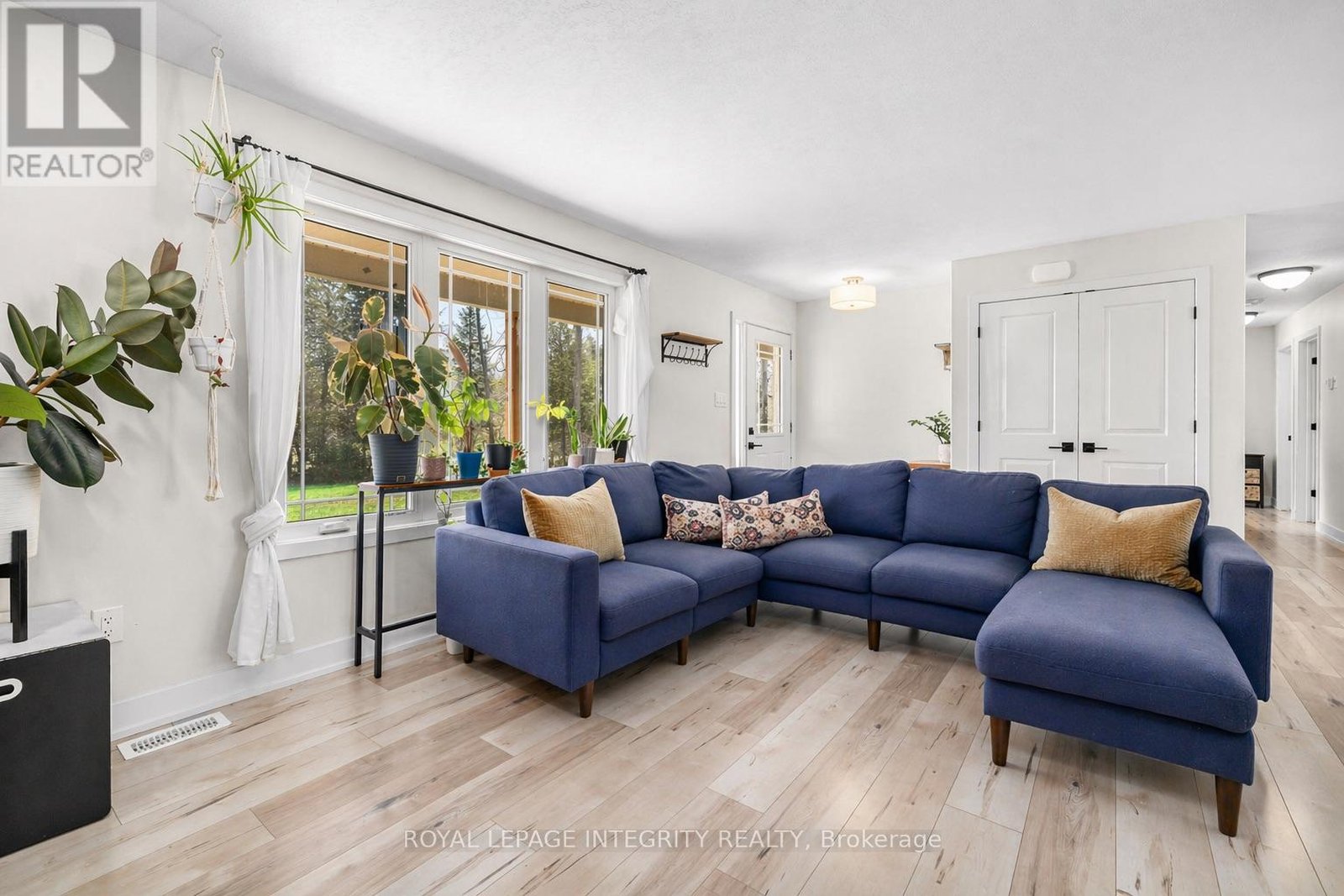 There's something about this home that just feels right the moment you arrive. Tucked into a mature, treed lot-- rare for a newer build-- it offers a level of privacy that's hard to find, paired with the kind of quiet that makes you instantly slow down. It's a place families grow into, not out of. Inside, the bungalow layout offers easy, functional living with timeless finishes throughout- neutral floors, wrought iron spindles, and a clean, modern aesthetic. The kitchen anchors the home, featuring quartz countertops, an island with seating that naturally becomes the gathering place, a six-burner dual-fuel range, Bosch dishwasher, and smart LG fridge. It flows seamlessly into the living and dining areas, creating an open space where everyone stays connected. Large windows and a patio door draw your eye to the backyard, while the primary bedroom offers a peaceful retreat with direct outdoor access (with a view that never really gets old). The ensuite is thoughtfully upgraded with a custom-tiled shower, double vanity and extra linen storage. Practical touches like a walk-in closet, storage closets, and an unfinished basement provide flexibility and room to grow. Outside is where this home truly shines. A large composite deck (2021) with propane BBQ hookup and LED lighting sets the stage for entertaining, while the 27-foot above-ground pool (2021) and patio stone fire-pit (2023) create a space you'll use in every season. With full afternoon sun and mature trees surrounding, the yard feels private, warm, and inviting. Set in a community where neighbours look out for one another, kids play freely, and there's a mix of growing families and long-time residents who all appreciate the pace of life here. You're minutes to the Ottawa Valley Rail Trail, Beckwith Park, and local favourites like the Franktown General Store, with convenient access to Carleton Place, Perth, and Kanata. It's country living with connection-where life feels a little simpler and a lot more meaningful.