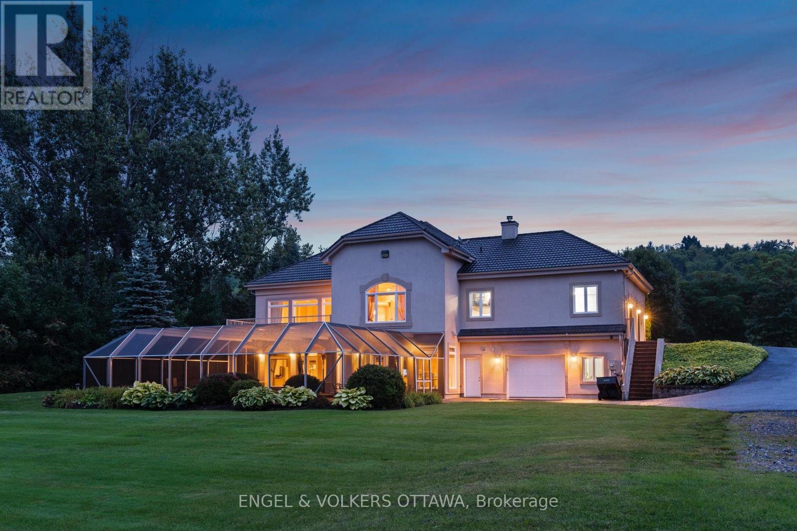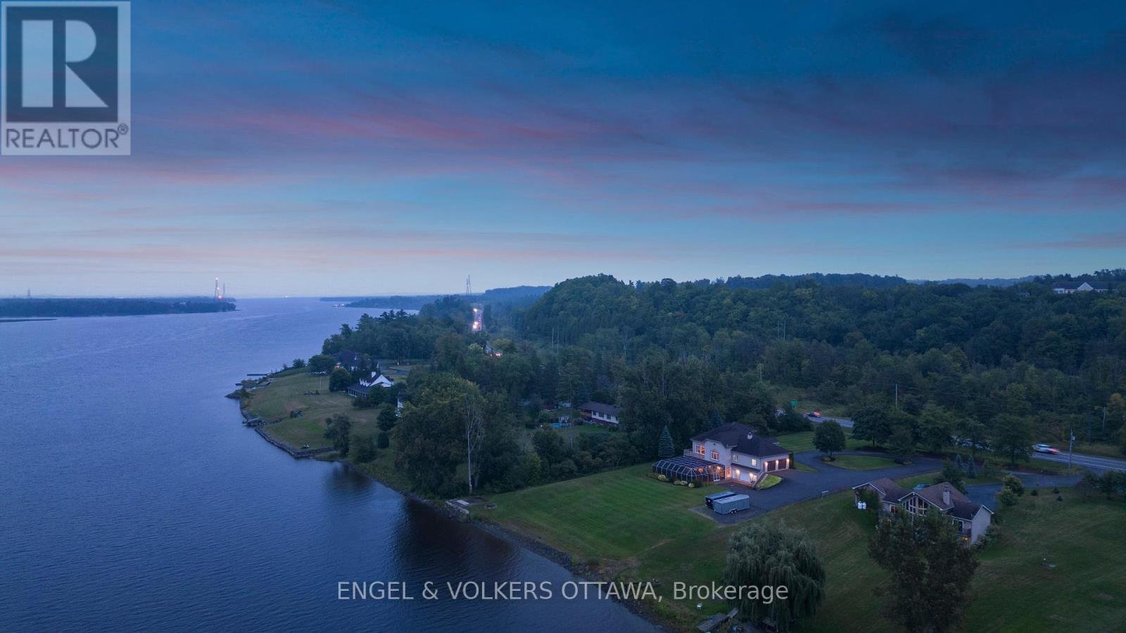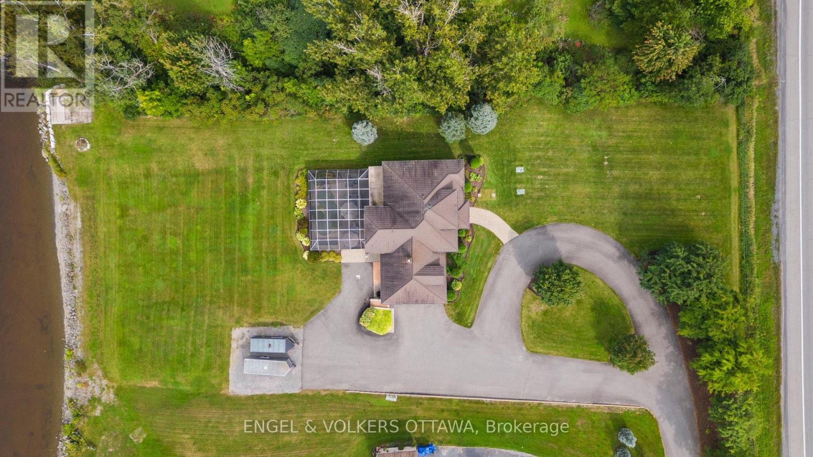 Nestled 2.4km East of Trim Rd, this stunning 3-bed + den, 2.5-bath custom home showcases a mesmerizing waterfront panorama. The foyer leads to a luminous hardwood staircase, unveiling a grand living space perfect for hosting. Highlights include a two-story living room with a gas fireplace, a formal dining area, a well-appointed bar with outdoor access, a media room, and an eat-in kitchen with deluxe amenities. Luxe touches feature granite countertops, dual islands, Monogram appliances, Fisher Paykel dishwashers, and aThermador gas stovetop. Upstairs, the Primary Bedroom boasts dual walk-ins, a lavish en-suite, and a private deck. Also, find two bedrooms, an office, a full bath, and laundry. Outside, a screened-in sunroom opens to a serene patio with a putting green, hot tub connection, lush gardens, and a two-storey garage providing ample space for vehicles and storage.