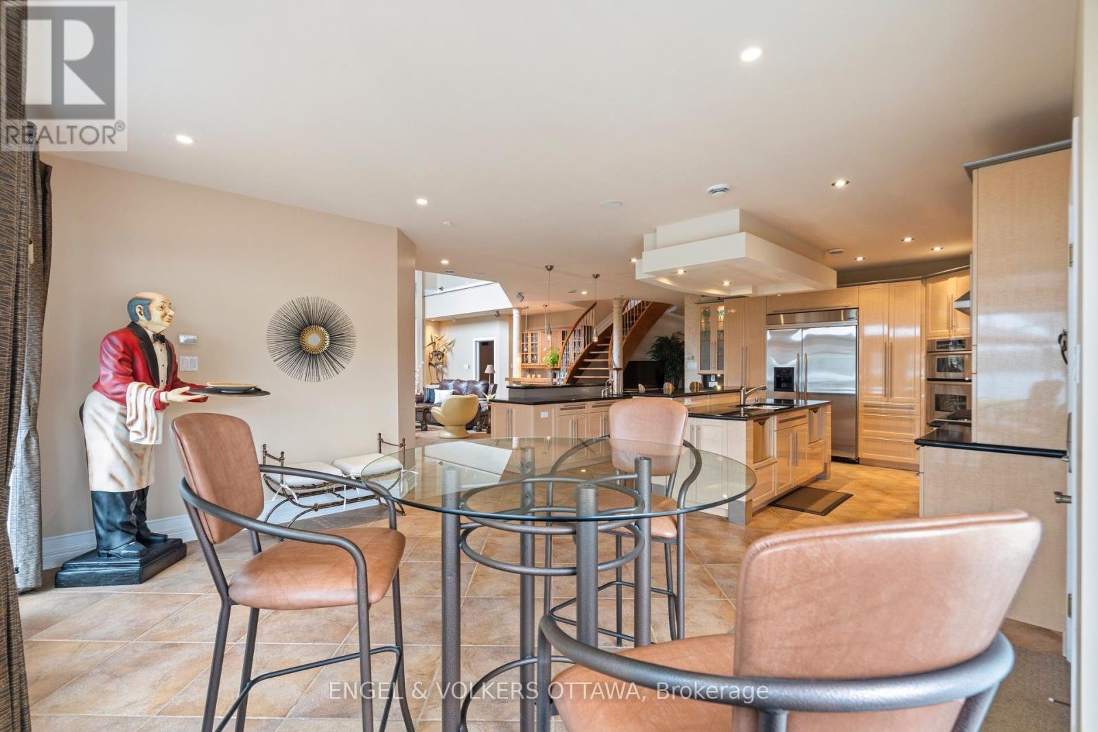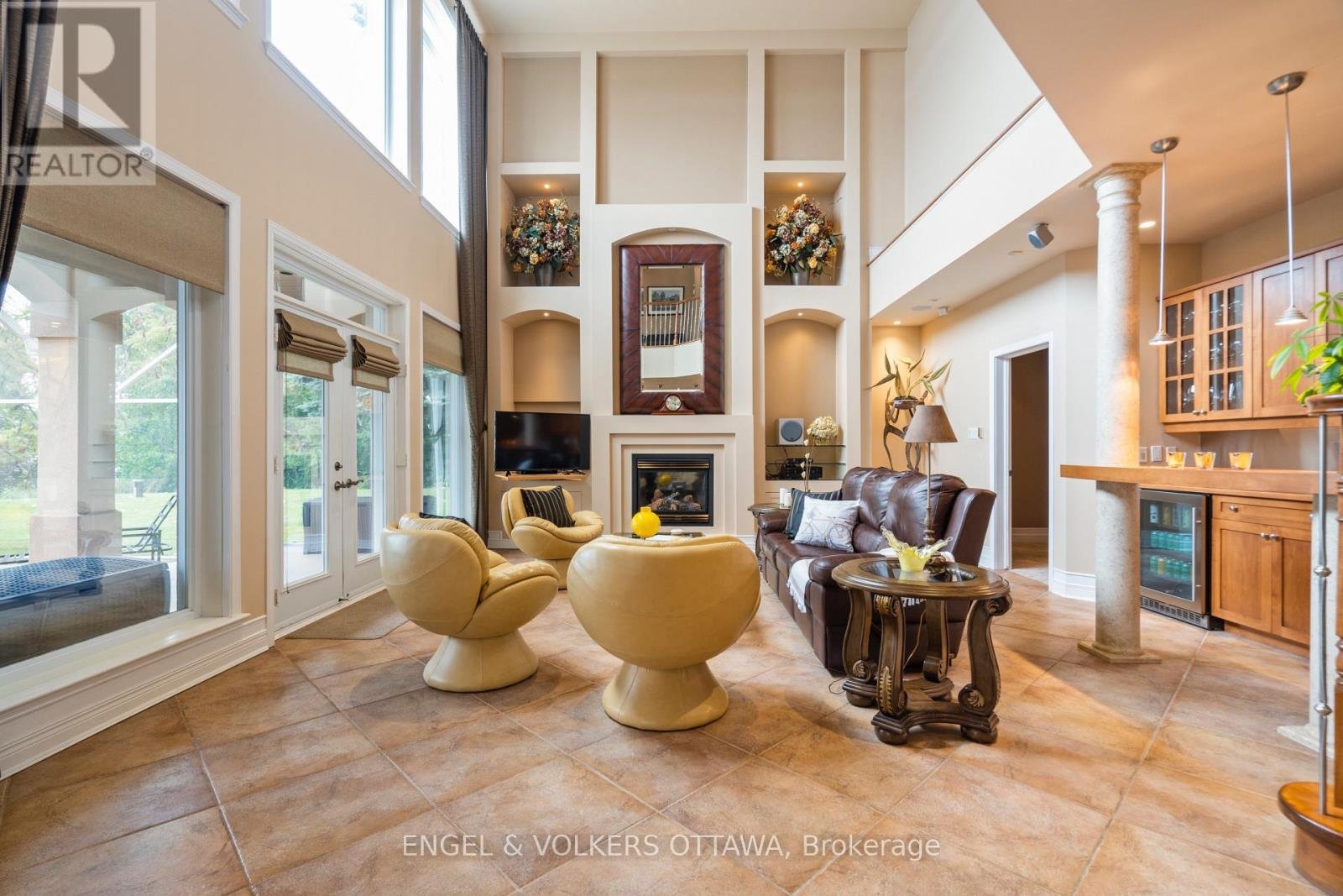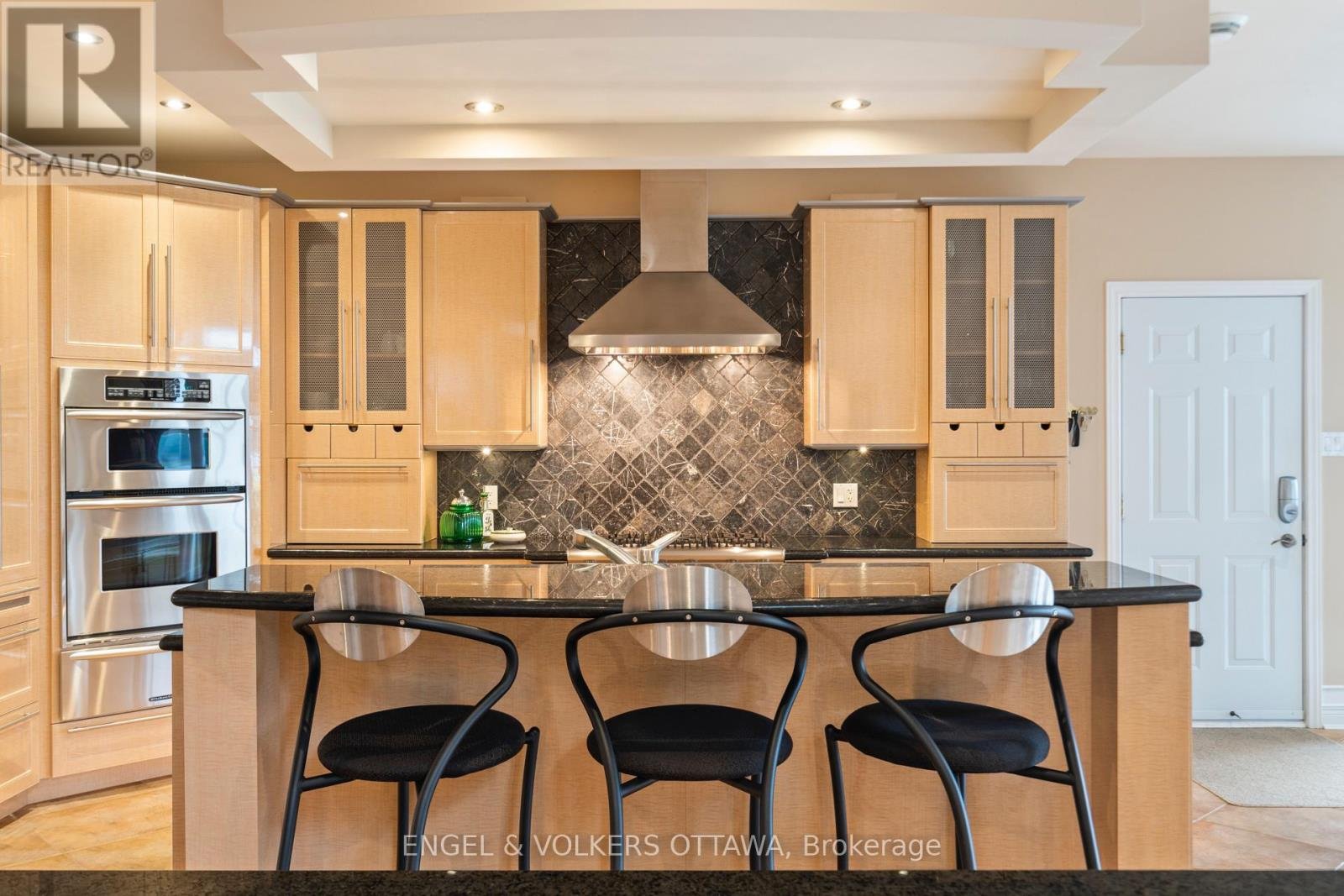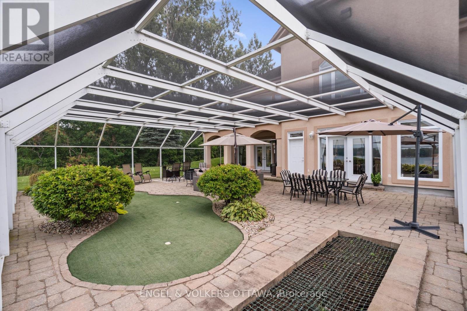 Nestled 2.4km East of Trim Rd, this stunning 3-bed + den, 2.5-bath custom home showcases a mesmerizing waterfront panorama. The foyer leads to a luminous hardwood staircase, unveiling a grand living space perfect for hosting. Highlights include a two-story living room with a gas fireplace, a formal dining area, a well-appointed bar with outdoor access, a media room, and an eat-in kitchen with deluxe amenities. Luxe touches feature granite countertops, dual islands, Monogram appliances, Fisher Paykel dishwashers, and aThermador gas stovetop. Upstairs, the Primary Bedroom boasts dual walk-ins, a lavish en-suite, and a private deck. Also, find two bedrooms, an office, a full bath, and laundry. Outside, a screened-in sunroom opens to a serene patio with a putting green, hot tub connection, lush gardens, and a two-storey garage providing ample space for vehicles and storage.