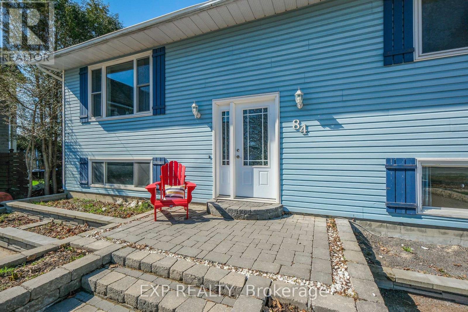 Welcome to 84 Martin Street - an ideal opportunity for first-time home buyers seeking comfort, space, and convenience. Built in 1988, this well-maintained hi-ranch offers a bright and functional layout with plenty of room to grow. A sun-filled picture window sets the tone in the spacious living room, flowing seamlessly into the dining area with direct access to a large deck overlooking the backyard. The efficient U-shaped kitchen features crisp white cabinetry and newer stainless steel appliances. Two generously sized bedrooms and a full main-floor bathroom complete this level, each offering ample closet space. Large windows bring natural light into the expansive recreation room-perfect for family gatherings or a cozy media space. The oversized primary bedroom includes a walk-in closet and a private ensuite with double sinks. A dedicated utility room provides side-by-side laundry and water treatment equipment. The front yard has been thoughtfully hardscaped for low-maintenance appeal, while the backyard includes an interlock patio ideal for outdoor entertaining. Situated in a desirable area of town, this home is close to schools and within easy walking distance of downtown amenities. A welcoming home in a prime location-discover the value and comfort of 84 Martin Street.