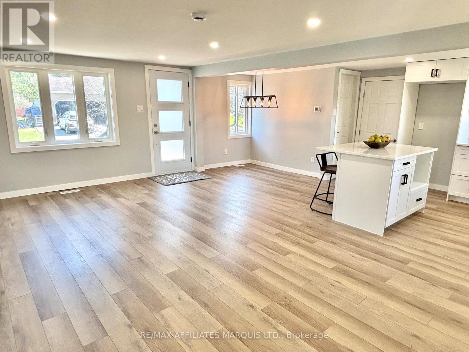 Welcome to this beautifully renovated bungalow in the charming village of Maxville - perfect for first-time buyers or those looking to downsize to a low maintenance property. This move-in-ready home offers a bright, open-concept main floor featuring a seamless modern flow between the living, dining, and kitchen areas. The brand-new kitchen is a standout, complete with a centre island, sleek quartz countertops, and ample cabinetry. The stylishly updated 3-piece bathroom includes convenient laundry hookups, adding to the home's practical design. Extensively updated since 2024, this home showcases new floors, ceilings, walls, trim, interior and exterior doors, kitchen, bathroom and fresh paint throughout. Also, enjoy extra comfort and efficiency with a newer furnace, central air system, and hot water tank. Stylish pot lights have been added in every room, along with all new plugs and light switches. Exterior upgrades include new siding and both front and back steps/porches. Set on an nice double wide lot with no rear neighbors, this property offers privacy and outdoor space in a quiet neighborhood. Additional highlights include a 22' x 14' detached garage, a double paved driveway, and full municipal services. Conveniently located just 20 minutes to Alexandria, 30 minutes to Cornwall and 40 minutes to Ottawa, this turnkey property combines small-town living with easy access to city amenities. A fantastic opportunity to purchase a fully renovated home at an affordable price. Book your viewing today!