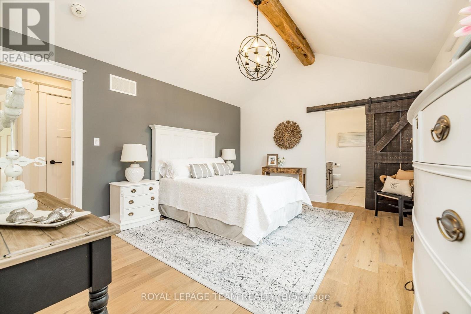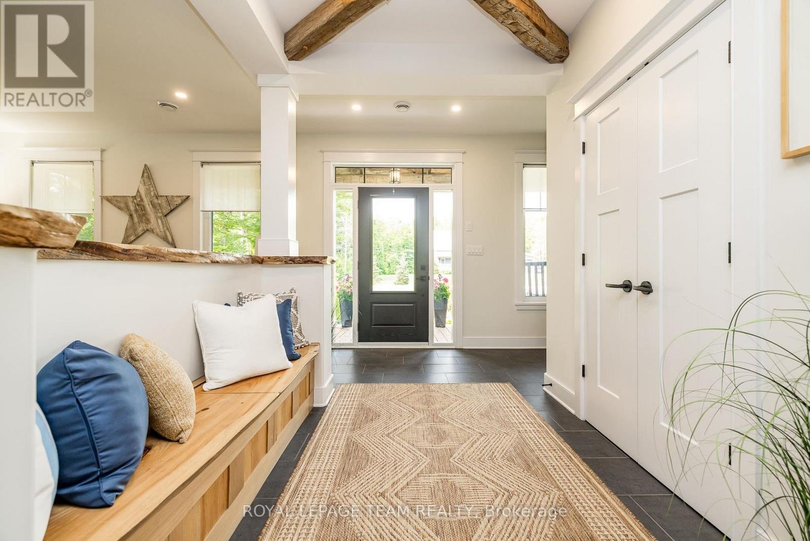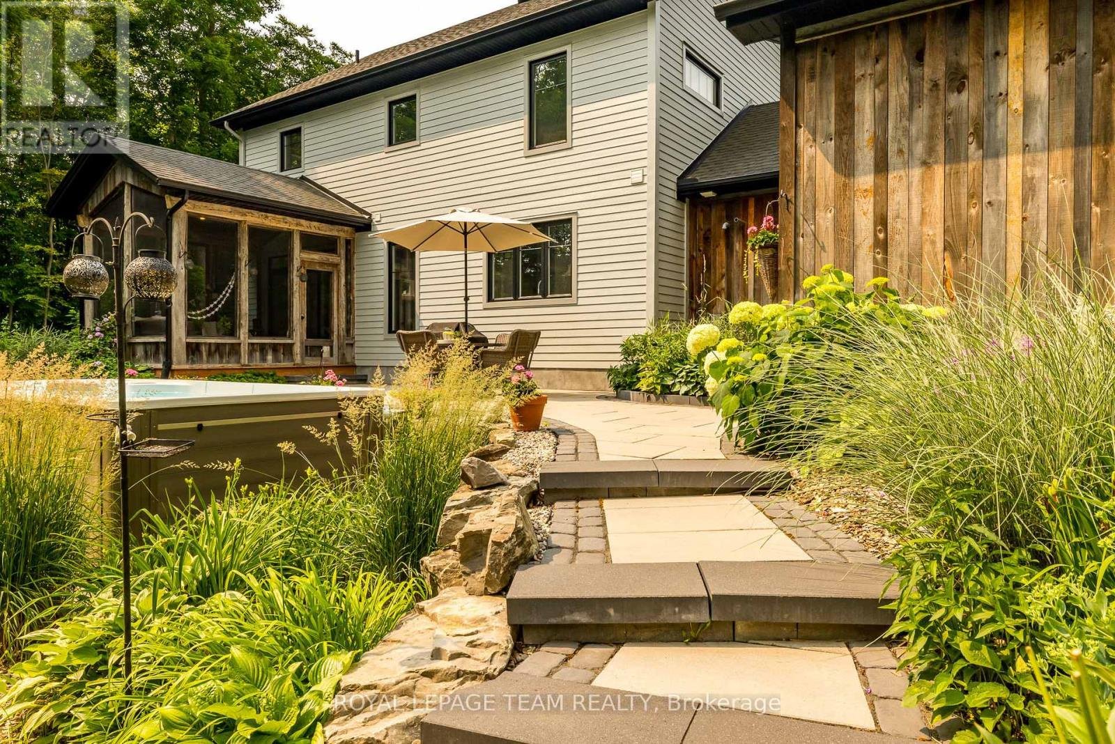 Welcome to 103 Brookberry Crescent, a stunning custom 'Lockwood Brothers' built home; the perfect blend of artistic elegance and high quality construction! Located in an upscale neighbourhood, Flint Hill Estates, only minutes from Kemptville and Hwy 416 for a seamless commute to Ottawa, this dream house features 3 bedrooms plus loft, 3 bathrooms & an expansive open concept living/dining/kitchen area with reclaimed wood accents and engineered hardwood throughout! An aesthetic front porch with reclaimed wood beams leads to a bright spacious front foyer with live edge accents, a large closet & convenient seating bench with storage. Entertain in the gorgeous living room with stone & shiplap gas fireplace with wood hewn mantle, or in the dining room with an abundance of natural light! The gourmet kitchen features a generous walk-in pantry, stainless steel appliances quartz countertops, a custom island with seating and more! The main level continues to impress with a two-piece bathroom, a generous, welcoming side entrance off the garage, complete with custom shelving & live edge bench and a spacious loft with chinked wood accent walls: perfect as a family room or gym! Large windows, engineered hardwood, wood beams and live edge wood accents throughout! The second floor features a primary bedroom suite, two more large bedrooms, a gorgeous laundry room and a main bathroom; the primary suite with walk-in closet & ensuite with soaker tub is a private retreat! This home is all about lifestyle, whether spending quiet evenings in the stunning screened-in porch with reclaimed wood accents located off the dining room or enjoying BBQ's with friends on the beautifully landscaped patio with lush gardens by the luxurious swim spa. Heated, oversized double car garage with third garage bay on the side is a dream for car enthusiasts and workshop needs. This sale represents a rare opportunity to enjoy exquisite design and meticulous craftsmanship at its finest; book your showing today!