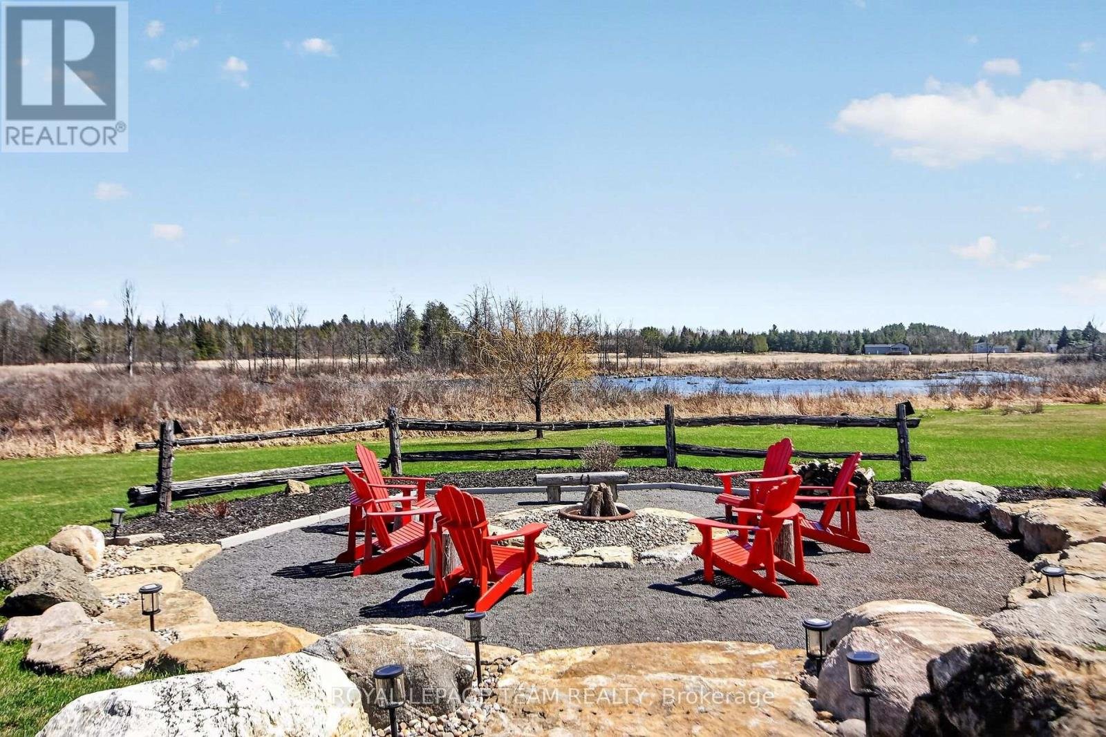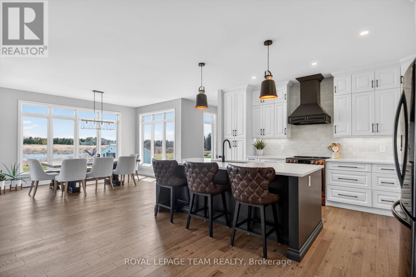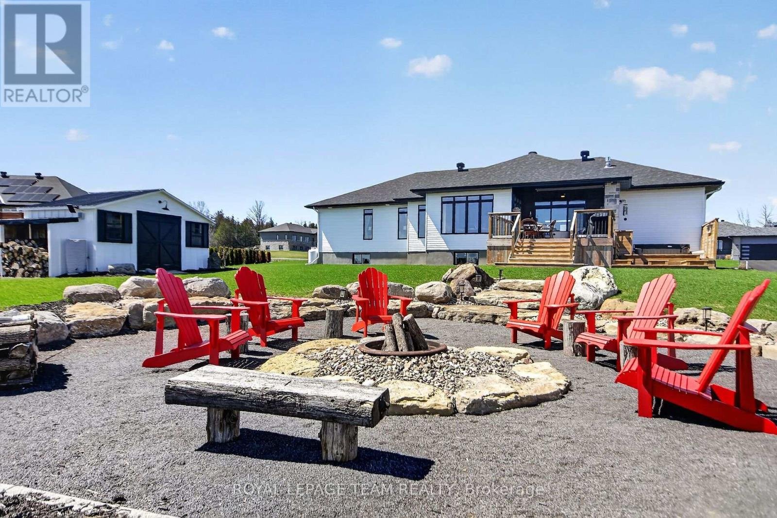 Luxury living in Kings Creek Crossing, one of Beckwith's most prestigious country estate communities, just a short drive to Carleton Place & Ottawa. This meticulously maintained, newly built by Mackie Homes offers over 4,100 sq ft of finished living space, set on a breathtaking 5+ acre lot with no rear neighbours & a true backyard oasis backing onto a peaceful creek. The main floor showcases a spacious, thoughtfully designed open-concept layout with a grand foyer, an elegant living rm with a fireplace & a dining area surrounded by oversized windows that fill the space with natural light. The designer gourmet kitchen is a true showpiece, featuring an abundance of cabinetry, quartz countertops, a striking hood fan, high-end SS appliances & a large island perfect for gathering & entertaining. 2 generously sized bedrooms & a well-appointed full bath with a separate water closet provide the ideal setup for family or guests, while the private primary retreat is a luxurious escape complete with its own fireplace, walk-in closet & a spa-inspired ensuite with a soaker tub. A practical mudroom with extensive storage, laundry & direct access to the oversized 3-car garage adds everyday convenience. The fully finished lower level extends the living space with a massive rec rm ideal for a home theatre or games rm, 2 additional bedrooms, a full bath & a large fitness room that could easily serve as a 6th bedroom, all while still offering excellent storage. Step outside to the covered porch featuring a built-in bar & revel in the beautifully landscaped grounds designed for both relaxation & entertaining, including a large deck, fire pit area & expansive green space, plus a hot tub perfectly positioned to unwind & take in the peaceful surroundings. With its rare combination of luxury finishes, functional design & one of the largest & most private lots in the subdivision, this is truly a show-stopping property that offers the perfect blend of upscale living & peaceful country charm.
