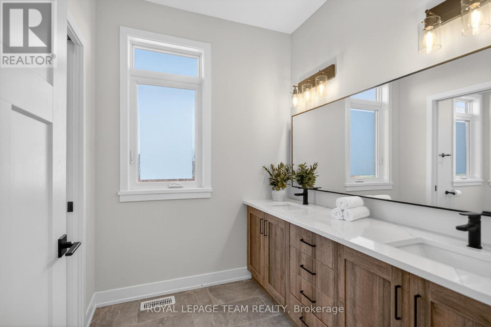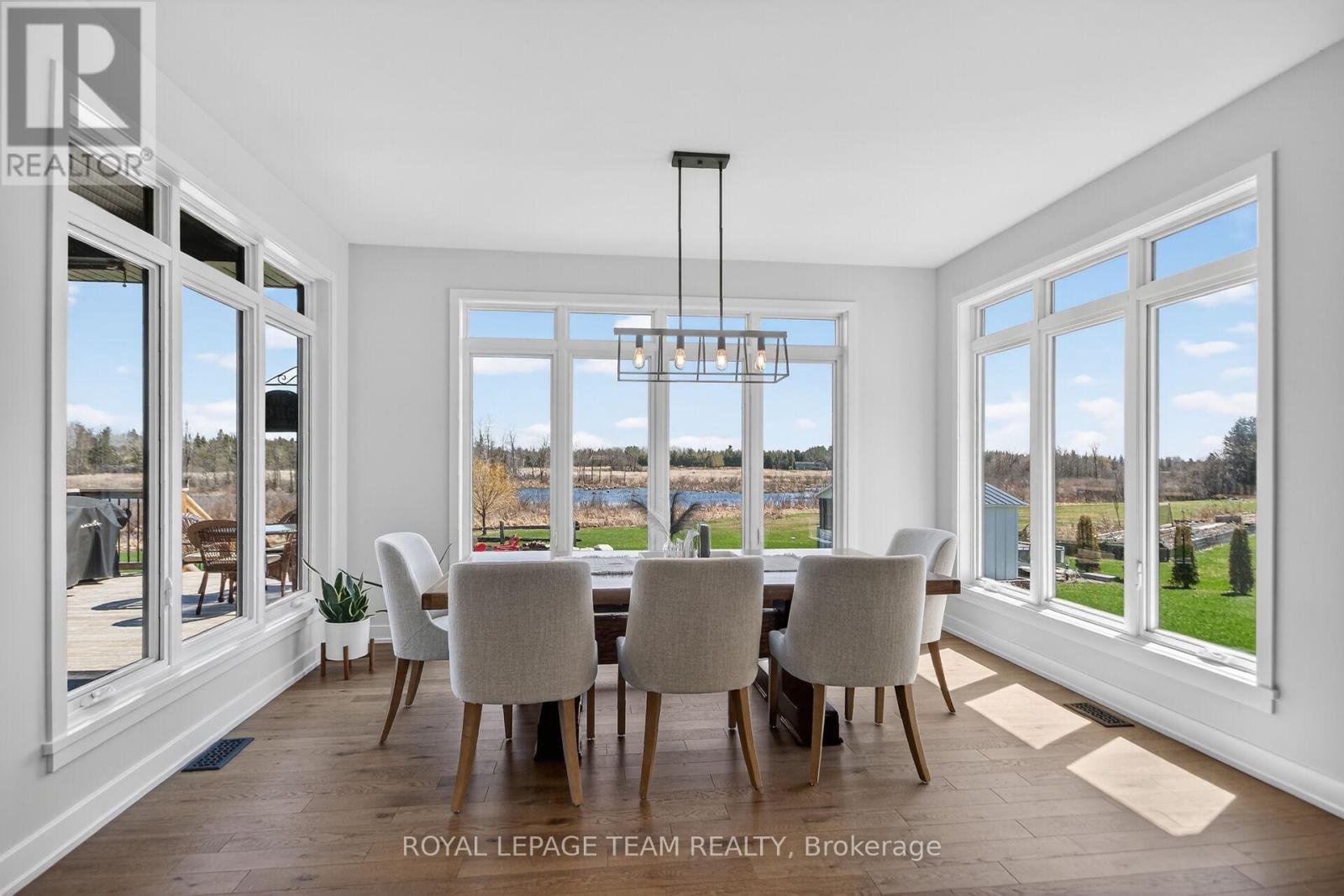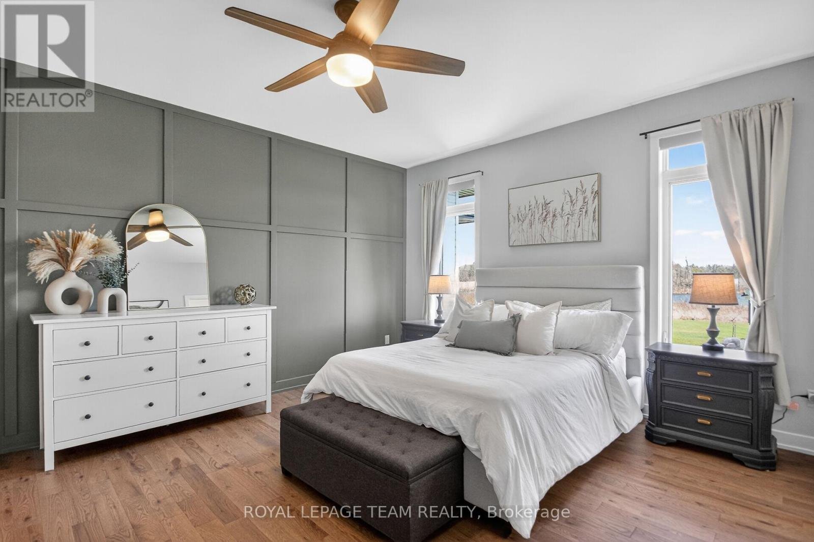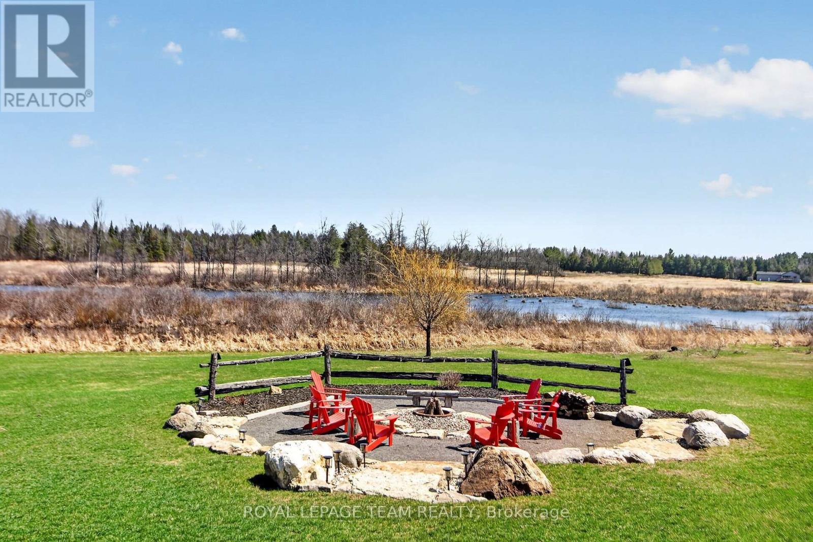 Luxury living in Kings Creek Crossing, one of Beckwith's most prestigious country estate communities, just a short drive to Carleton Place & Ottawa. This meticulously maintained, newly built by Mackie Homes offers over 4,100 sq ft of finished living space, set on a breathtaking 5+ acre lot with no rear neighbours & a true backyard oasis backing onto a peaceful creek. The main floor showcases a spacious, thoughtfully designed open-concept layout with a grand foyer, an elegant living rm with a fireplace & a dining area surrounded by oversized windows that fill the space with natural light. The designer gourmet kitchen is a true showpiece, featuring an abundance of cabinetry, quartz countertops, a striking hood fan, high-end SS appliances & a large island perfect for gathering & entertaining. 2 generously sized bedrooms & a well-appointed full bath with a separate water closet provide the ideal setup for family or guests, while the private primary retreat is a luxurious escape complete with its own fireplace, walk-in closet & a spa-inspired ensuite with a soaker tub. A practical mudroom with extensive storage, laundry & direct access to the oversized 3-car garage adds everyday convenience. The fully finished lower level extends the living space with a massive rec rm ideal for a home theatre or games rm, 2 additional bedrooms, a full bath & a large fitness room that could easily serve as a 6th bedroom, all while still offering excellent storage. Step outside to the covered porch featuring a built-in bar & revel in the beautifully landscaped grounds designed for both relaxation & entertaining, including a large deck, fire pit area & expansive green space, plus a hot tub perfectly positioned to unwind & take in the peaceful surroundings. With its rare combination of luxury finishes, functional design & one of the largest & most private lots in the subdivision, this is truly a show-stopping property that offers the perfect blend of upscale living & peaceful country charm.