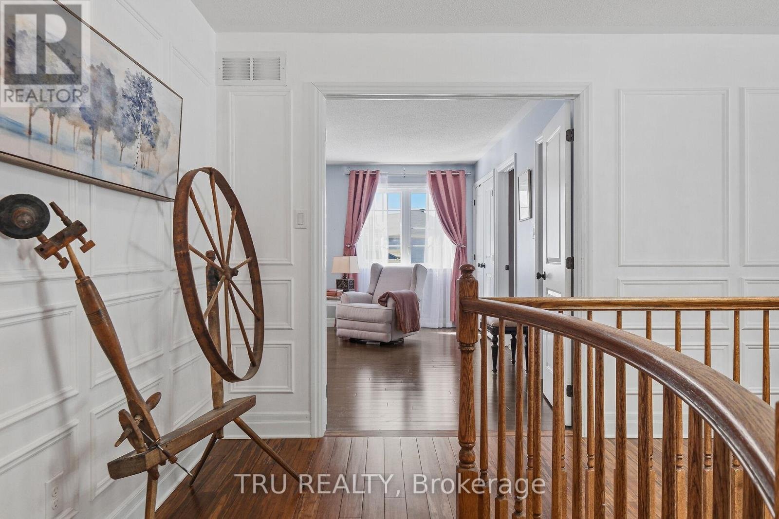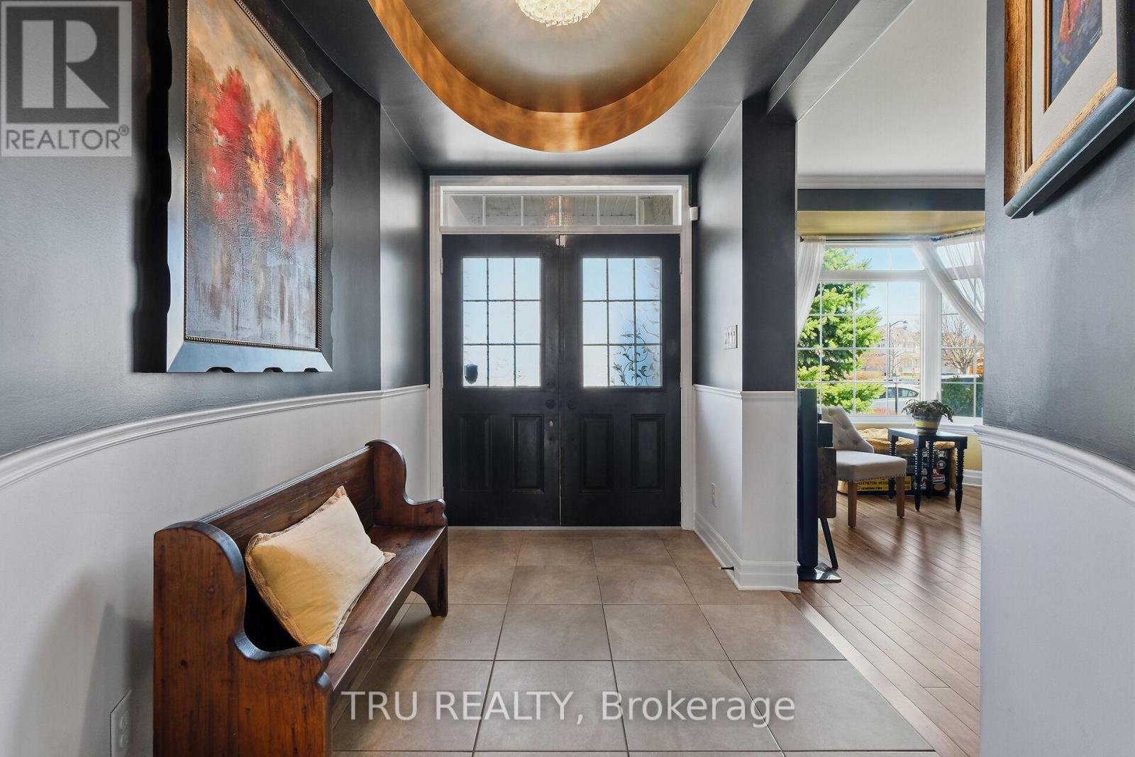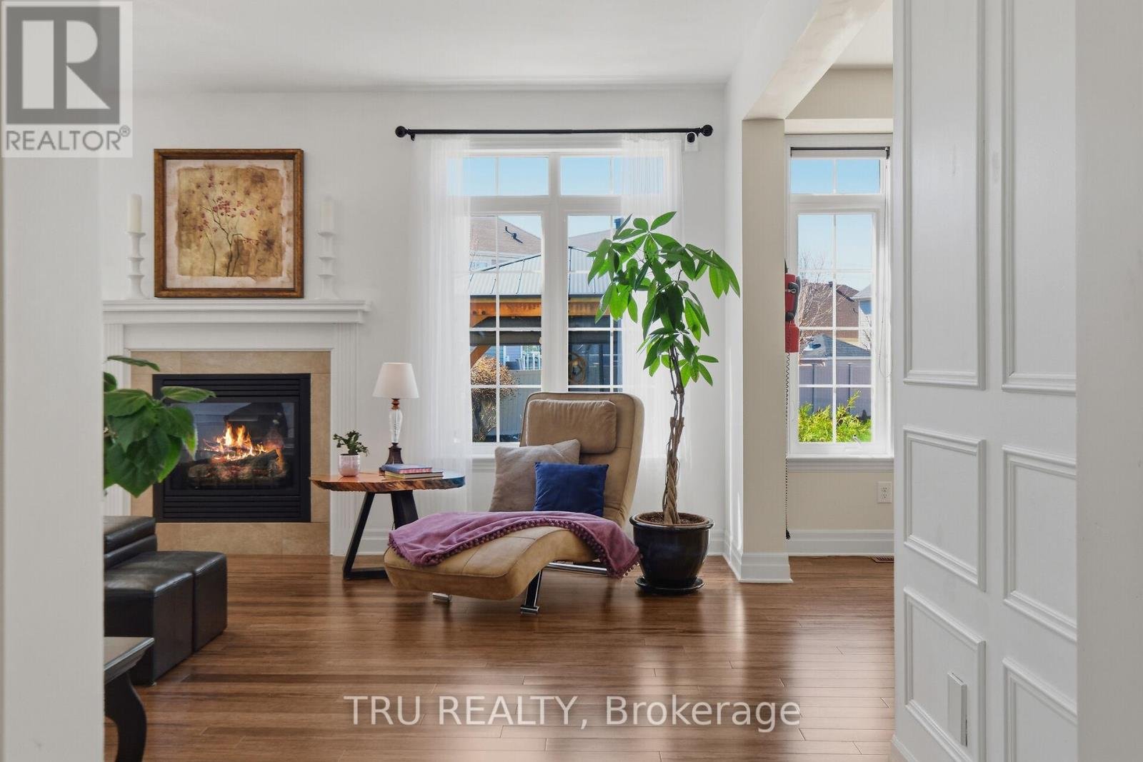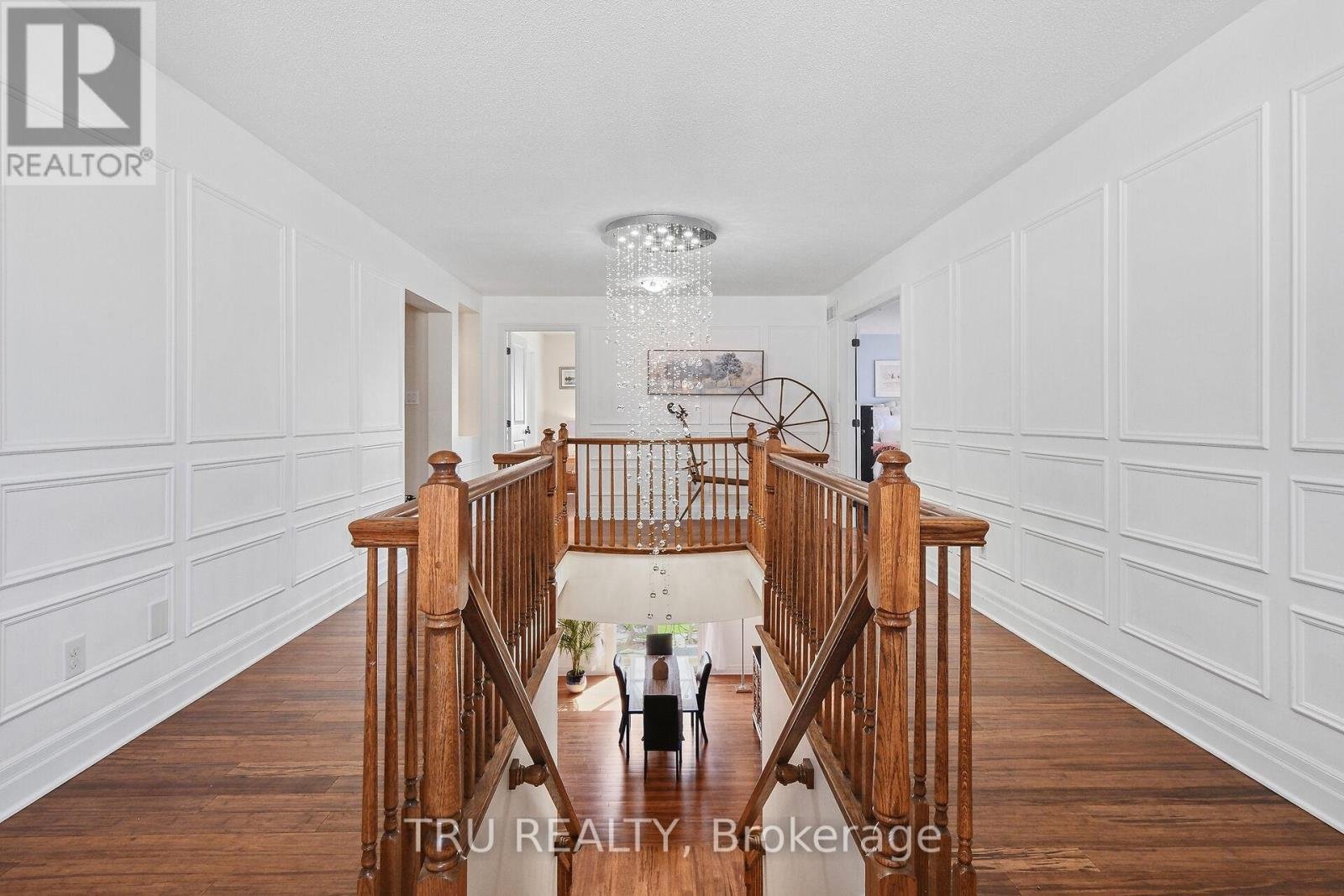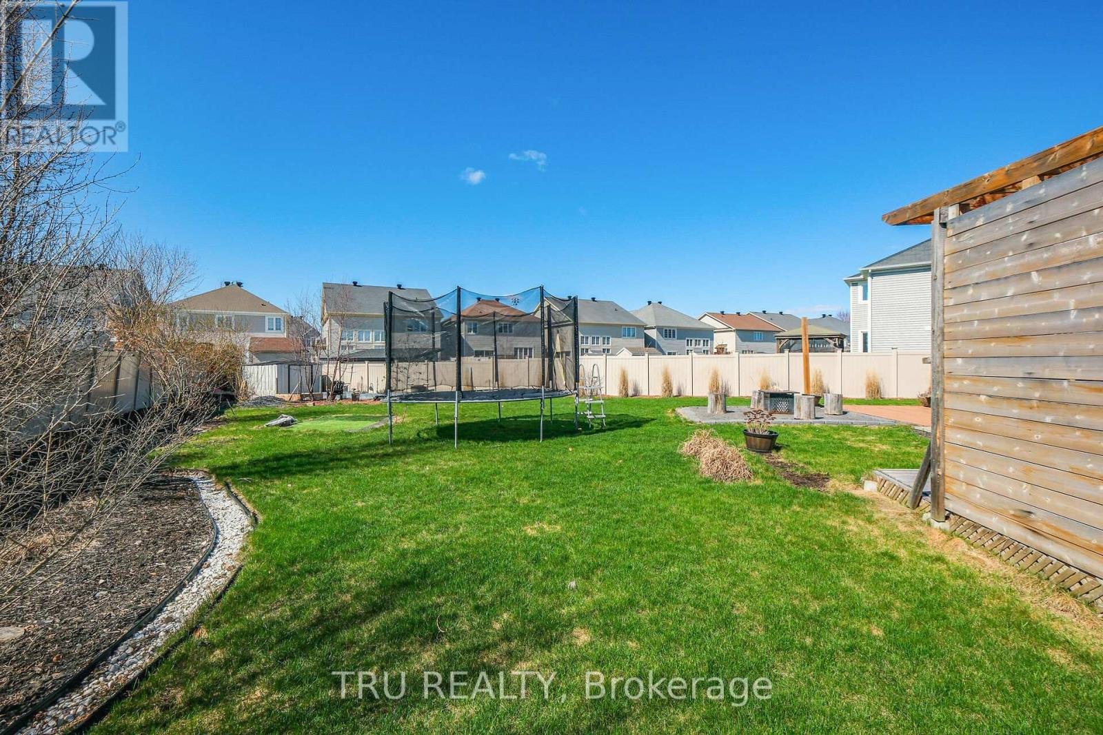 Exceptional home in the prestigious Stonebridge community of Ottawa, a vibrant golf-course neighbourhood centered around the beautiful Stonebridge Golf Club. Monarch-built Evergreen model offers approx. 3,600 sf. plus a fully finished lower level, blending elegant design with a warm, colourful and subtly Latin-inspired character throughout.Located on a rare premium 12,500 sq. ft. lot with 151 ft depth on one side and over 190 ft across the rear, this is one of the largest and most private backyard settings in the neighbourhood. Fully fenced & exceptional space for entertaining, relaxing, or future pool potential. Grey stone façade and covered front porch create strong curb appeal. Inside, a grand foyer with 9-ft ceilings opens to rich hardwood flooring and bright, airy living spaces filled with natural light. Main level features a formal dining room, a main-floor office, plus a second office on the upper level for added flexibility.Open-concept kitchen is the heart of the home, featuring quartz and granite surfaces, stainless steel appliances, large island with breakfast bar, and a dedicated butler's kitchen ideal for entertaining. Bright dining area opens through patio doors to a charming hidden side patio garden, a perfect & peaceful retreat for morning coffee. Upstairs offers four generous bedrooms around a central hallway. Primary suite includes walk-in closet and spa-inspired ensuite with double sinks, glass shower, and deep oval soaking tub. One bedroom has a private ensuite, while two others share a Jack-and-Jill bathroom. Fully finished lower level transforms the home into a true lifestyle experience: a sound-insulated home Cineplex style theatre wired for surround sound, a large games and lounge room with fireplace, a guest bedroom, a 3-piece bathroom, sauna rough-in, and abundant storage. Close to parks, walking trails, transit, and the Minto Recreation Complex. this home blends space, functionality and a warm, colourful Latin spirit- Bienvenido!