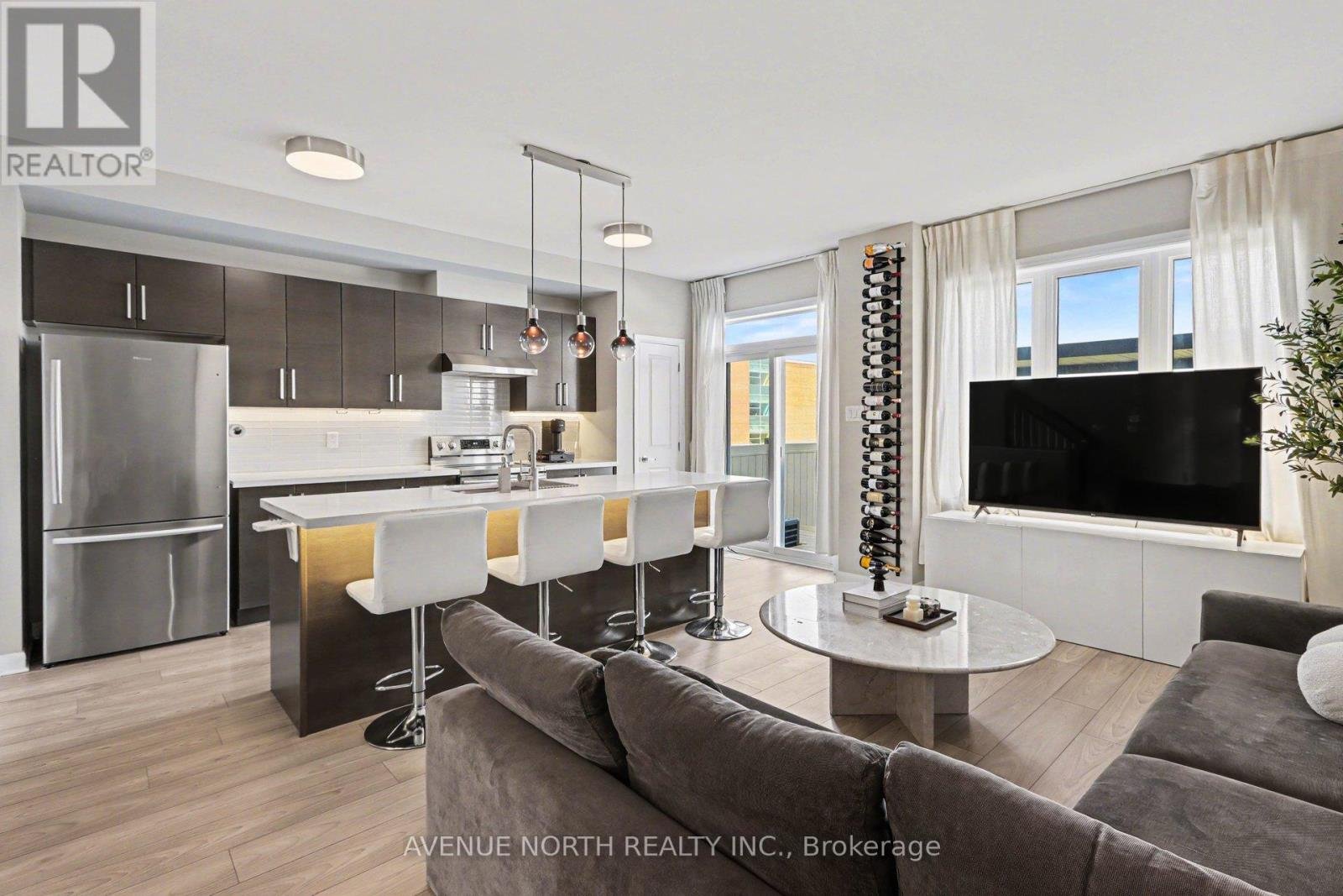 Welcome to 159 Bending Way, a Monterey model by Minto in Barrhaven's Riversbend community. Set on a premium lot backing onto green space with no rear neighbours, this home offers a rare sense of tranquility while still being within walking distance to St. Joseph High School, Barrhaven Marketplace, Loblaws, restaurants, banks, and major transit. Surrounded by parks and trails, it is a setting that feels both connected and quietly tucked away. Step inside to a bright, open-concept main floor with 9-foot ceilings and soft ambient mood lighting. The upgraded kitchen features expansive quartz countertops, ample cabinetry, a breakfast bar, and stainless steel appliances. Wide plank flooring flows through the living and dining areas, creating a clean, cohesive space for everyday living and entertaining. Upstairs, the primary bedroom offers a walk-in closet and an ensuite with a glass shower. Two additional bedrooms, another full bathroom, and a conveniently located second-floor laundry room complete the level. The finished lower level adds flexible living space ideal for a family room, playroom, media space, or guest area. Out back, the home truly opens up. A new custom two-tier oversized deck with pergola and fenced yard creates the perfect setting for summer barbecues, entertaining, or quiet evenings outdoors. With no rear neighbours, you are met with open green space and wide, uninterrupted skies that glow at the end of the day. The front interlock adds an additional parking space and enhances the home's low-maintenance curb appeal. The garage is equipped with a 240V outlet for EV charging and a high lift garage door for additional overhead storage. This is the definition of turn-key. Everything has been done. Simply move in and enjoy your sanctuary in the city, where life slows down and every evening ends with a sunset.