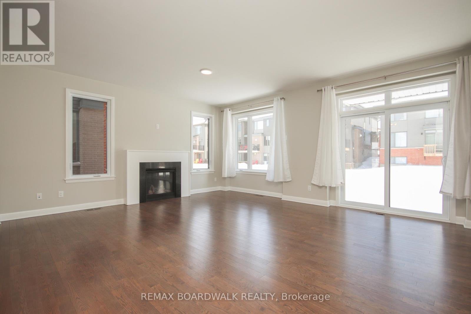 Welcome to this exquisite end-unit townhome in the highly sought-after community of Wateridge Village. Step inside to a spacious foyer leading into a bright, open-concept main level featuring elegant hardwood flooring throughout. The expansive living space and dining area are flooded with natural light anchored by large windows, creating an inviting space for everyday living and entertaining. The chef-inspired kitchen boasts a large centre island, stainless steel appliances, custom cabinetry, and an upgraded hood fan-perfect for those who love to cook and gather. Upstairs, you'll find three generously sized bedrooms, including a luxurious primary retreat complete with a walk-in closet and a spa-like ensuite. Convenient second-floor laundry ensures practicality. The fully finished basement offers a spacious rec room with endless possibilities, ideal for a home gym, media room, or additional living space. Situated in a sought after location, this home is surrounded by parks, scenic trails, and is just moments from the Aviation Parkway. Enjoy walking distance to the Montfort Hospital, and CMHC, with easy access to downtown, shopping, and top-tier schools. Modern living at its finest in one of Ottawa's fastest-growing communities.