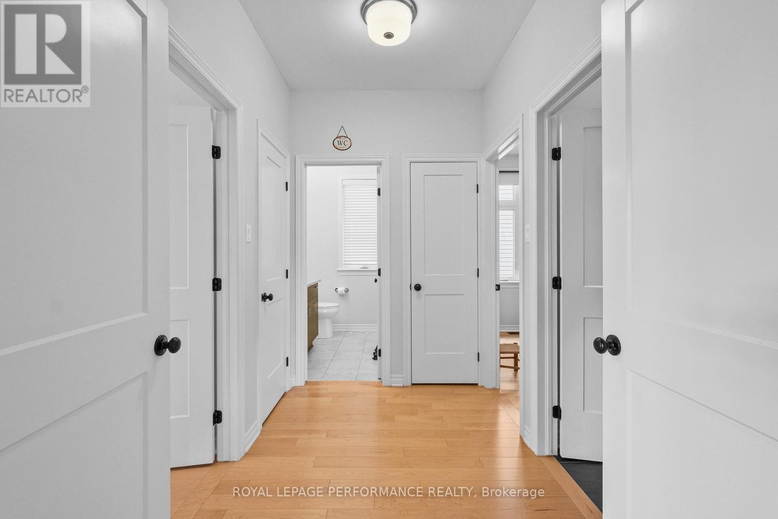 Welcome to effortless living in the heart of Findlay Creek-where nature meets convenience in this beautifully appointed bungalow that feels anything but suburban.Nestled beside a conservation buffer along Findlay's Creek, this home offers a rare sense of privacy and tranquility. With no direct front-facing neighbours, you'll enjoy a serene, landscaped setting from your charming front porch-the perfect place to sip your morning coffee while overlooking your own beautifully maintained front garden and lawn.Step inside to discover the ease of true one-floor living. The open-concept main level impresses with gleaming hardwood floors and soaring 9-foot ceilings that enhance the home's bright and airy feel. The cheery kitchen features quartz countertops, custom cabinetry, and picturesque windows framing the natural surroundings.Designed for convenience, the home also offers main floor laundry-making everyday chores more efficient.The combined living and dining area is ideal for entertaining. Cozy evenings can be spent by the gas fireplace. While in warmer months, open the patio door in the versatile den and let the summer breeze flow through. Perfect as an office, playroom, or studio, this space adapts to your lifestyle.The primary bedroom is a peaceful retreat with his and her closets and a luxurious 5-piece ensuite with double vanity. Step outside to your backyard deck, complete with a gazebo where you can watch and listen to beautiful birds. An inground sprinkler system keeps the lawn lush with ease. The oversized garage with inside access makes parking and unloading groceries a breeze. The finished lower level offers increased living space with a recreation room, great for movie night, a bedroom, a 4-piece bath, and includes an elliptical machine, treadmill and a Hoist V3 home gym. Workout on your on your terms. This home has pride of ownership. Over $100,000 in upgrades. Book a showing today.