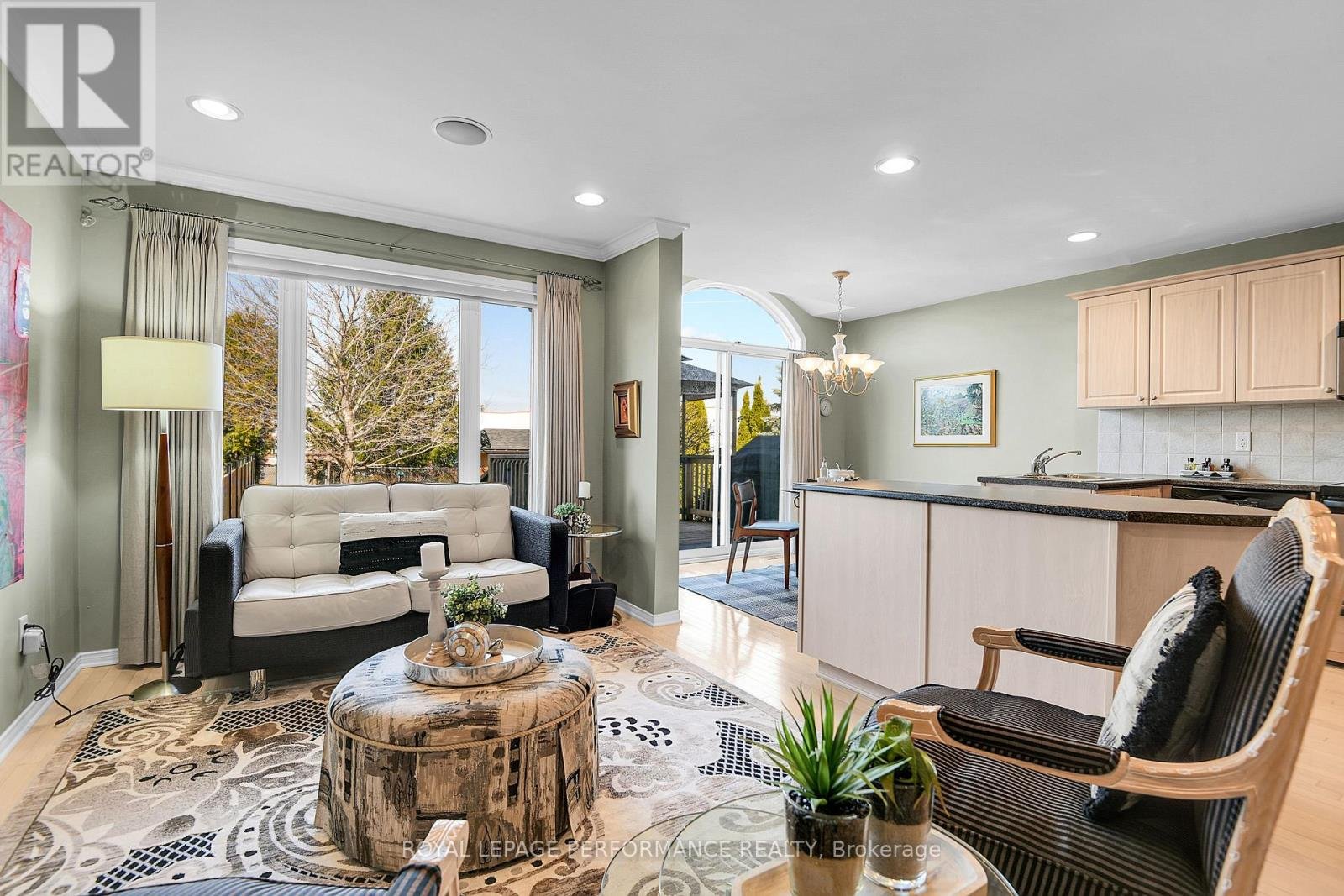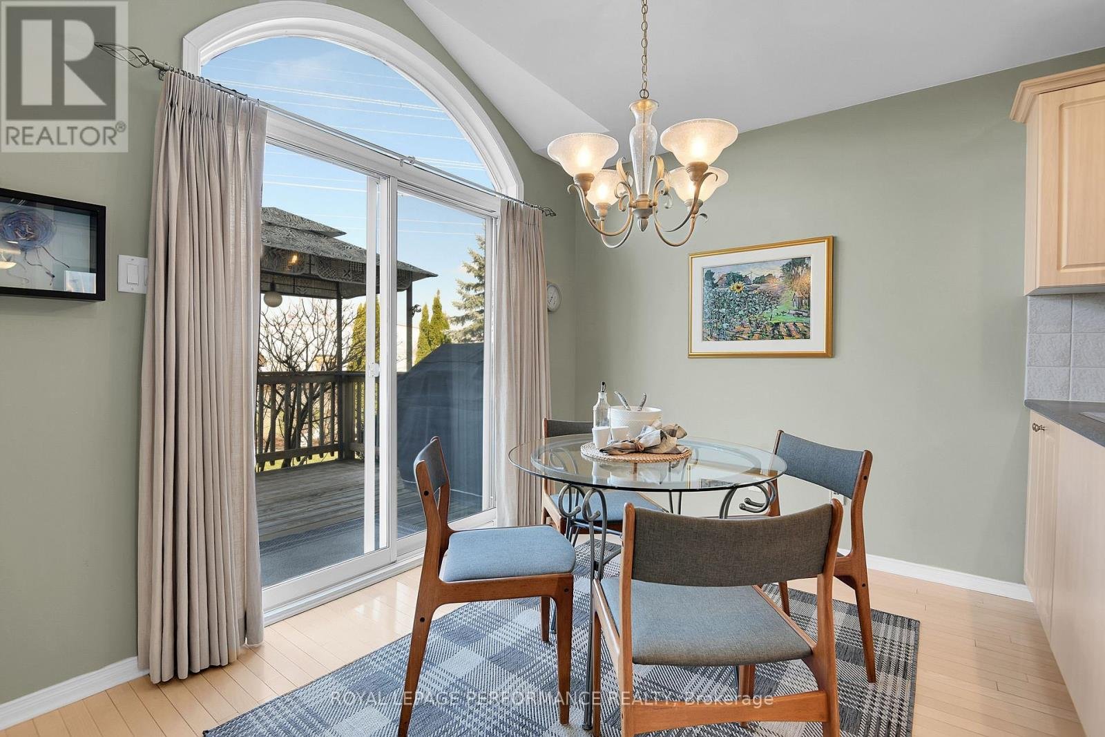 Open House Sunday, April 26, 2-4 p.m. Meticulously maintained semi-detached in the desirable Avalon East neighbourhood. See the pride of ownership from the moment you walk through the door. The open concept main floor is perfect for entertaining or family dinners, featuring a formal living/dining area and a very functional eat-in kitchen. The large windows, beautifully maintained blonde colored hardwood floors and kitchen cabinets create a feeling of tranquility. A striking curved staircase with quality Berber carpet leads you to the second floor. A very generously sized primary bedroom with hardwood floors, a walk-in closet, and an ensuite. The luxury, modern, spa like ensuite was renovated in 2023. The walk-in glass enclosed shower with beautiful 12x24 surround tiles, contrasting black faucets and rain shower head, re-enforced grab bars and pull down bench makes it safe and comfortable for all ages. Beautiful double sink white vanity with a quartz countertop. Two bedrooms and a family bath complete the second floor. The large finished basement allows for not only a family room but also has space for a home office. With quality berber, a gas fireplace and recessed lighting, it is a perfect place to escape or a kids' play area. The pie-shaped, landscaped lot is much larger than it appears from the front of the house. Included is the gazebo on the deck and the shed, including its contents like the lawn mower. Other features: temperature-controlled Nest with 2 monitors, wired for alarm, speakers and central vac. Fence installed in 2018/2022; furnace/AC in 2019; roof (front, side & shed in 2019, back/garage in 2013), washer/dryer in 2014, deck and footings in 2018, front interlock in 2017, storage room, etc. Average utility costs monthly-Hydro $67, gas $73, water/sewer $90 every 2 months. Ideally located close to stores, restaurants, transit and multi-use paths. No back neighbours. 24 hour irrevocable on all offers.