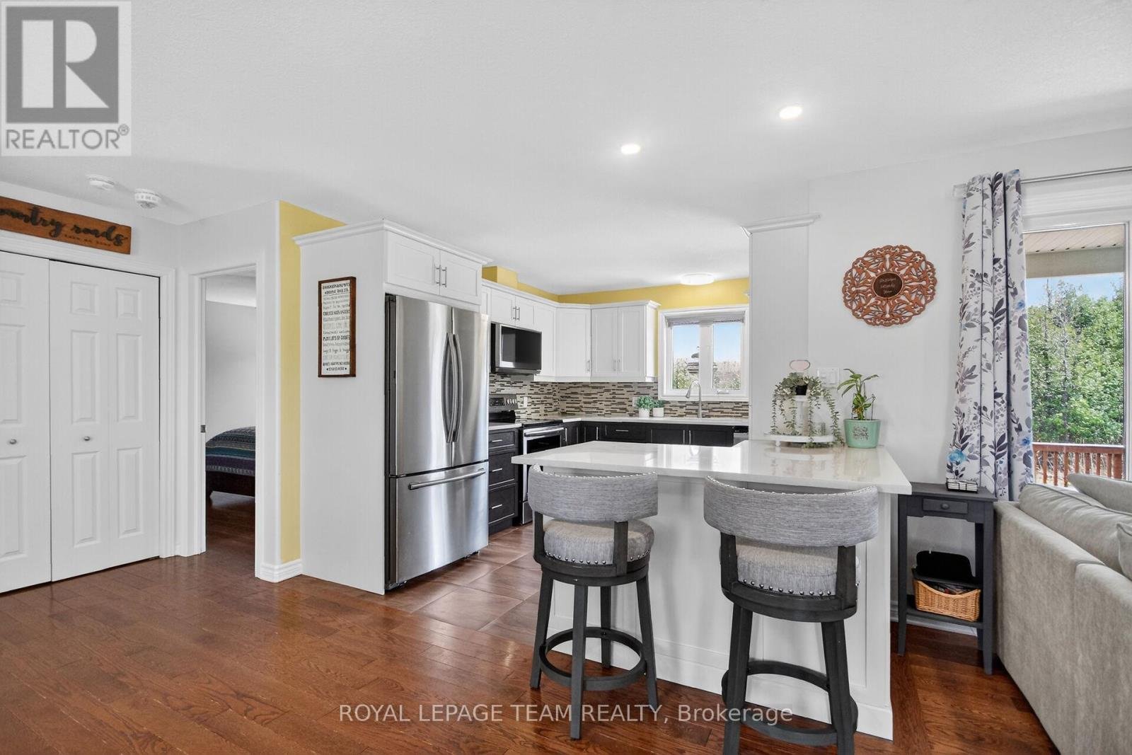Welcome to 109 Stonewalk Drive in Stonehaven Estates, a well maintained 2016 Parkview Homes Bexley model set on a 1.02-acre corner lot. Located just minutes from Kemptville and the 416, this 1,438 sq. ft. move-in-ready home with a great layout for entertaining. The bright, open-concept main floor features hardwood and tile flooring, quartz countertops, and a kitchen with extended cabinetry and newer appliances leading to a multi-level deck. The primary suite includes a walk-in closet with custom cabinetry and an ensuite and a glass shower. Two additional bedrooms, a full bathroom, and a laundry mudroom complete the level. The fully finished basement offers a large recreation area, custom bar, den, fourth bedroom, and full bathroom. The professionally landscaped exterior serves as a private oasis with a heated above-ground chlorine pool, irrigation system, and paved driveway. Perimeter willows provide summer privacy. Notable upgrades include Bluetooth Glo Soffit lighting (2021), Keyless Entry (2021), and a newer Washer and Dryer (2022), Pool Heater 2025.