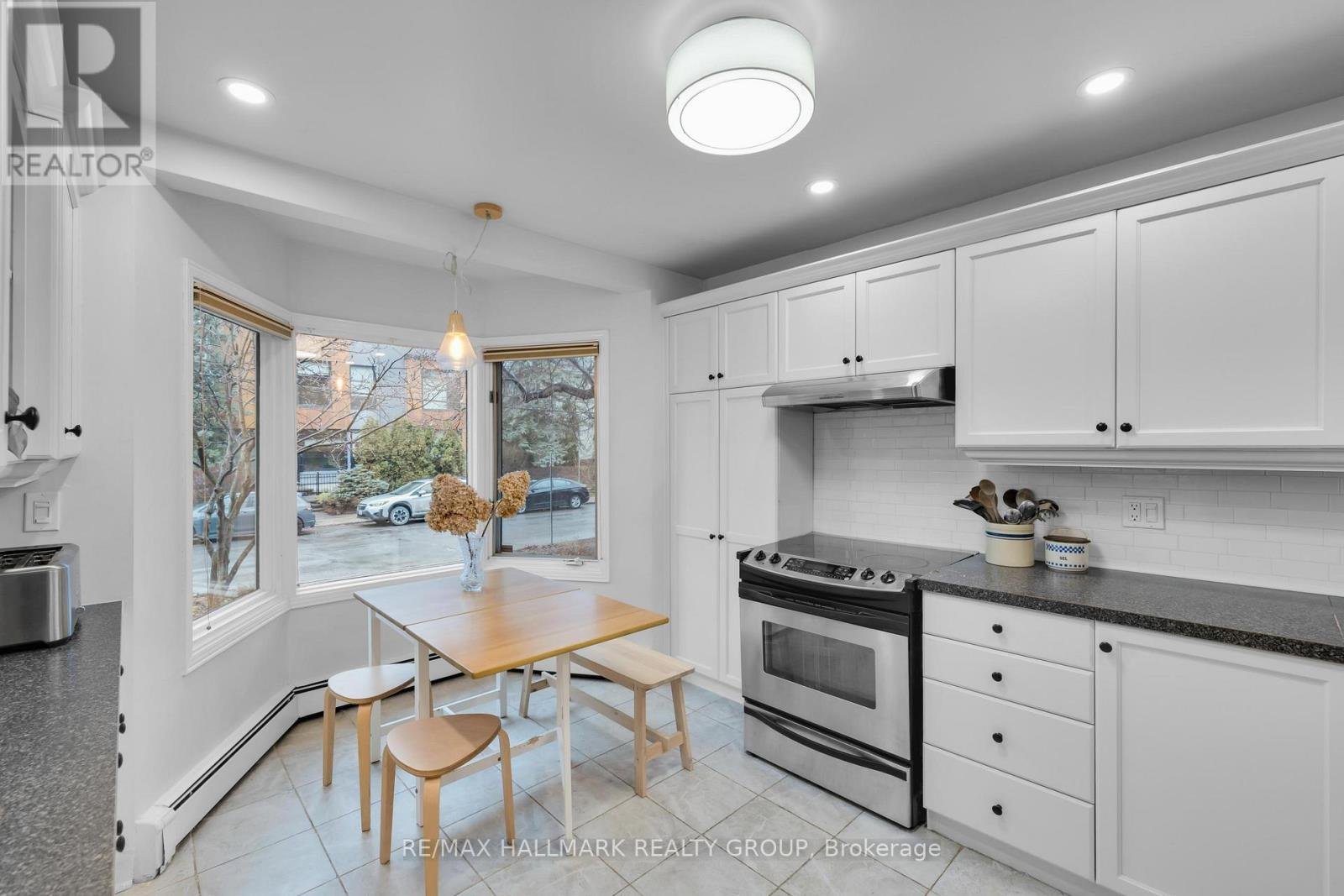 Welcome to this exceptional mid-century modern home siding directly onto Princess Margriet Park, complete with playground, tennis courts, and a skating rink! This sun-filled home offers a bright and spacious main level, highlighted by expansive windows that bathe the interior in natural light. The open-concept living and dining areas are anchored by a charming wood-burning fireplace and enhanced with crown moulding and elegant pot lighting. The refreshed eat-in kitchen features white cabinetry, stainless steel appliances, and a picturesque bay window. A convenient main floor powder room adds everyday functionality. Upstairs, the primary bedroom impresses with vaulted ceilings, dual double closets, and a 3-piece ensuite. The second level is completed by two additional good-sized bedrooms, a 5-piece bathroom and private terrace offering an inviting outdoor retreat perfect for morning coffee or unwinding in the evening. The fully renovated lower level expands your living space with large windows, a spacious family room, versatile den, full bathroom, and dedicated laundry area. Step outside to the landscaped, fully fenced backyard oasis featuring a patio, tiered deck, hot tub, and direct gated access to the park - seamlessly blending indoor and outdoor living. Unbeatable location just steps to local favourites like The Merry Dairy and Sherwood Market, and moments from the vibrant shops, cafés, and restaurants of Wellington Village, Little Italy, and Hintonburg. 24 hour irrevocable.