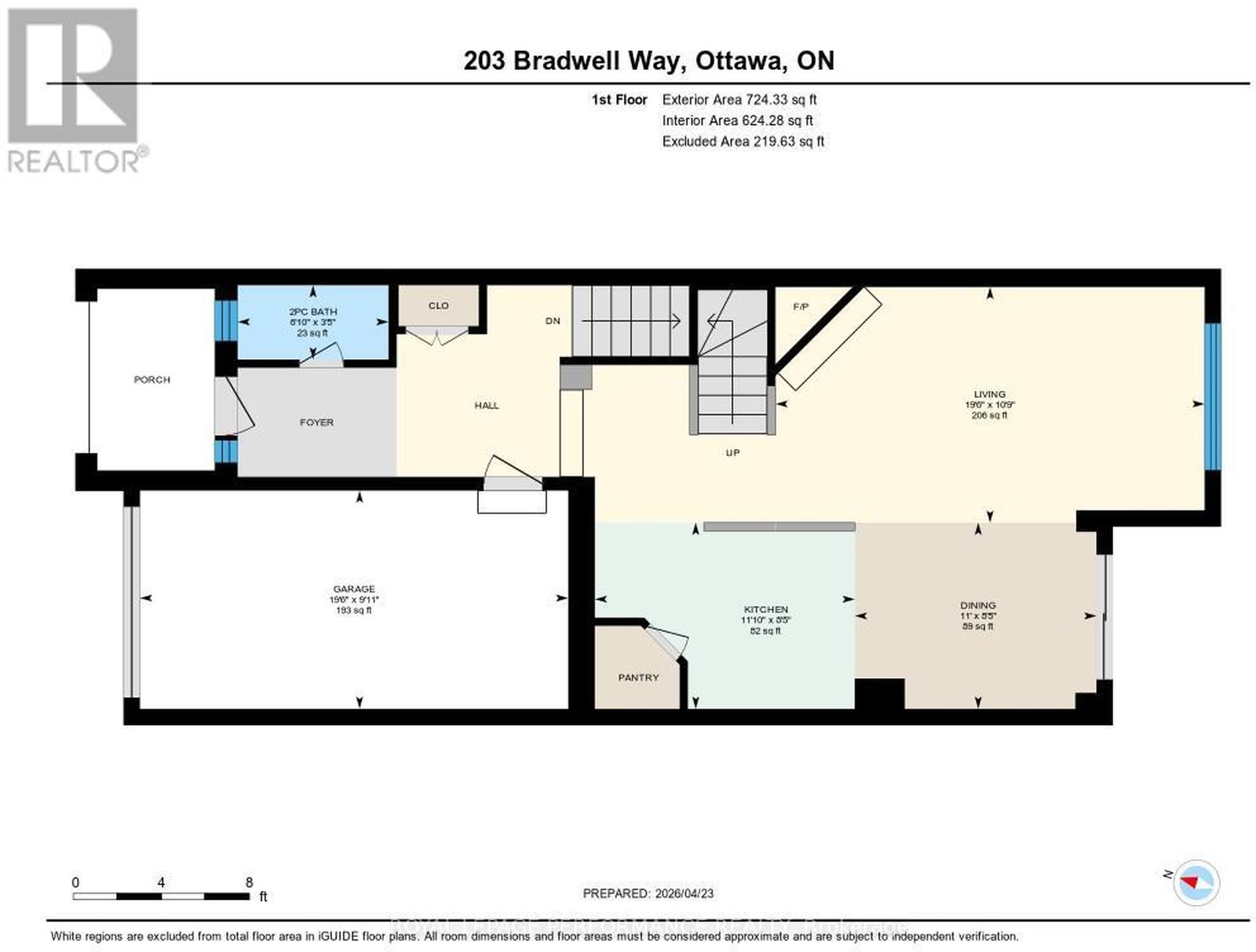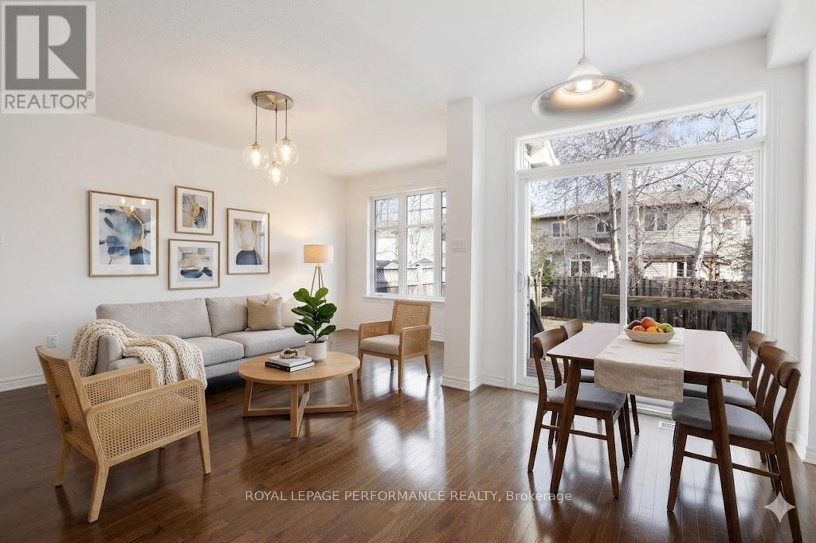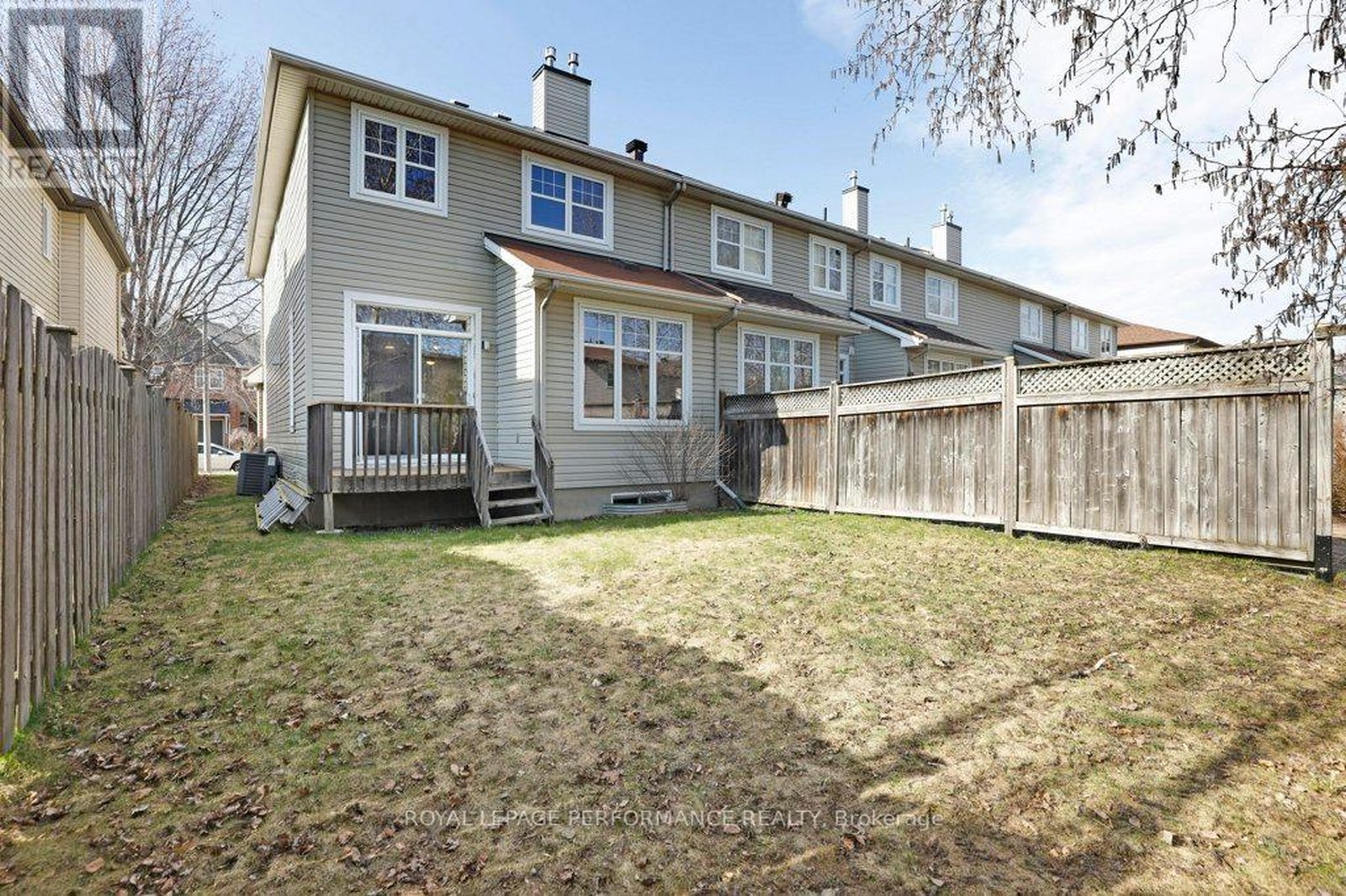 Welcome to this stunning, sun-drenched end-unit townhome perfectly situated in the highly sought-after community of Findlay Creek. Centre island in kitchen, stainless fridge, stove. Handy large corner pantry . The main level offers a sophisticated open-concept layout where natural light highlights the gorgeous, beaming hardwood flooring throughout the principal living spaces. The interior flows naturally to the outdoors through the dining room's patio doors, which lead directly to a private, fully fenced backyard. This home features three generous bedrooms, three well-appointed bathrooms, and the added benefit of a fully finished basement that significantly increases the total living area. Complete with an attached one-car garage and additional driveway parking, this property combines modern style with functional design in a prime location just minutes from local parks and amenities. Furnace 2019, Driveway 2022, Eaves troughing 2017.