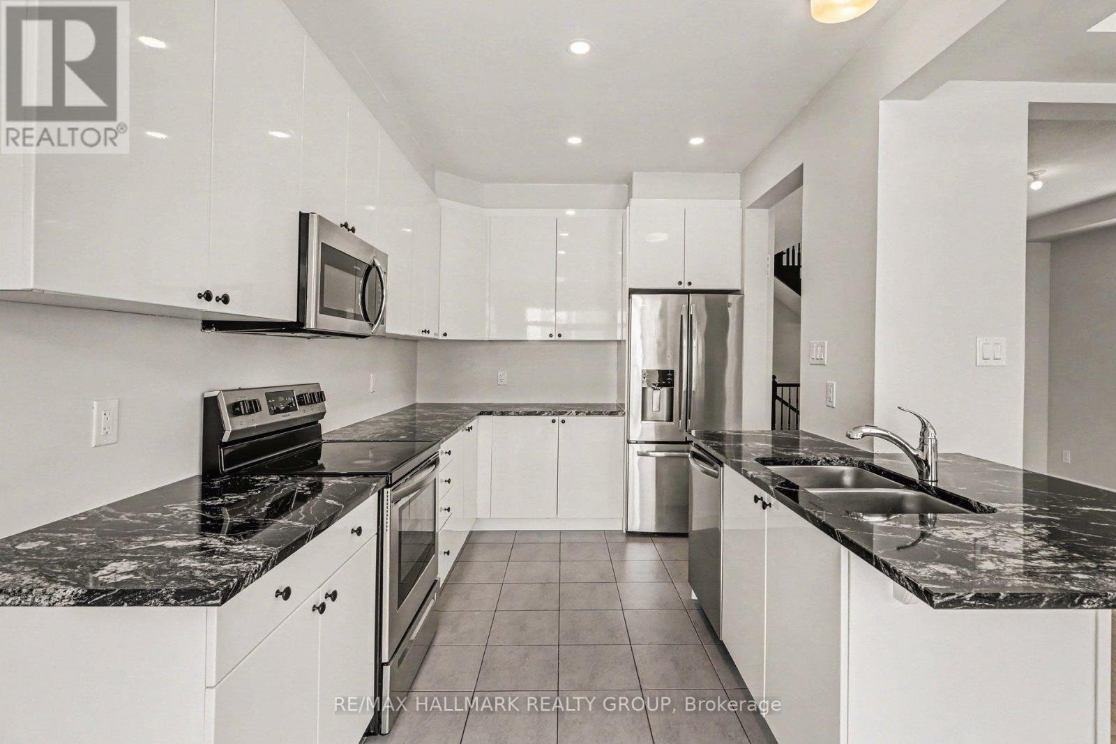 Welcome to 513 Catleaf Row! This bright and spacious **4-bedroom end-unit townhouse** offers the perfect blend of comfort, style, and location. Freshly painted throughout, the home features modern countertops and cabinetry, stainless steel appliances, and an open-concept main floor that's ideal for both everyday living and entertaining. Hardwood staircase, LVP on the main floor and central vac are among the upgrades. A convenient powder room completes the main level. Upstairs, you'll find four generously sized bedrooms, including a primary suite with its own ensuite, a full main bathroom, and the added bonus of second-floor laundry for everyday ease. The unfinished basement is full of potential, ready for you to design the space that fits your lifestyle. With a single-car garage and a location just minutes from schools, parks, and everyday amenities, this home is a fantastic opportunity for families or investors alike.