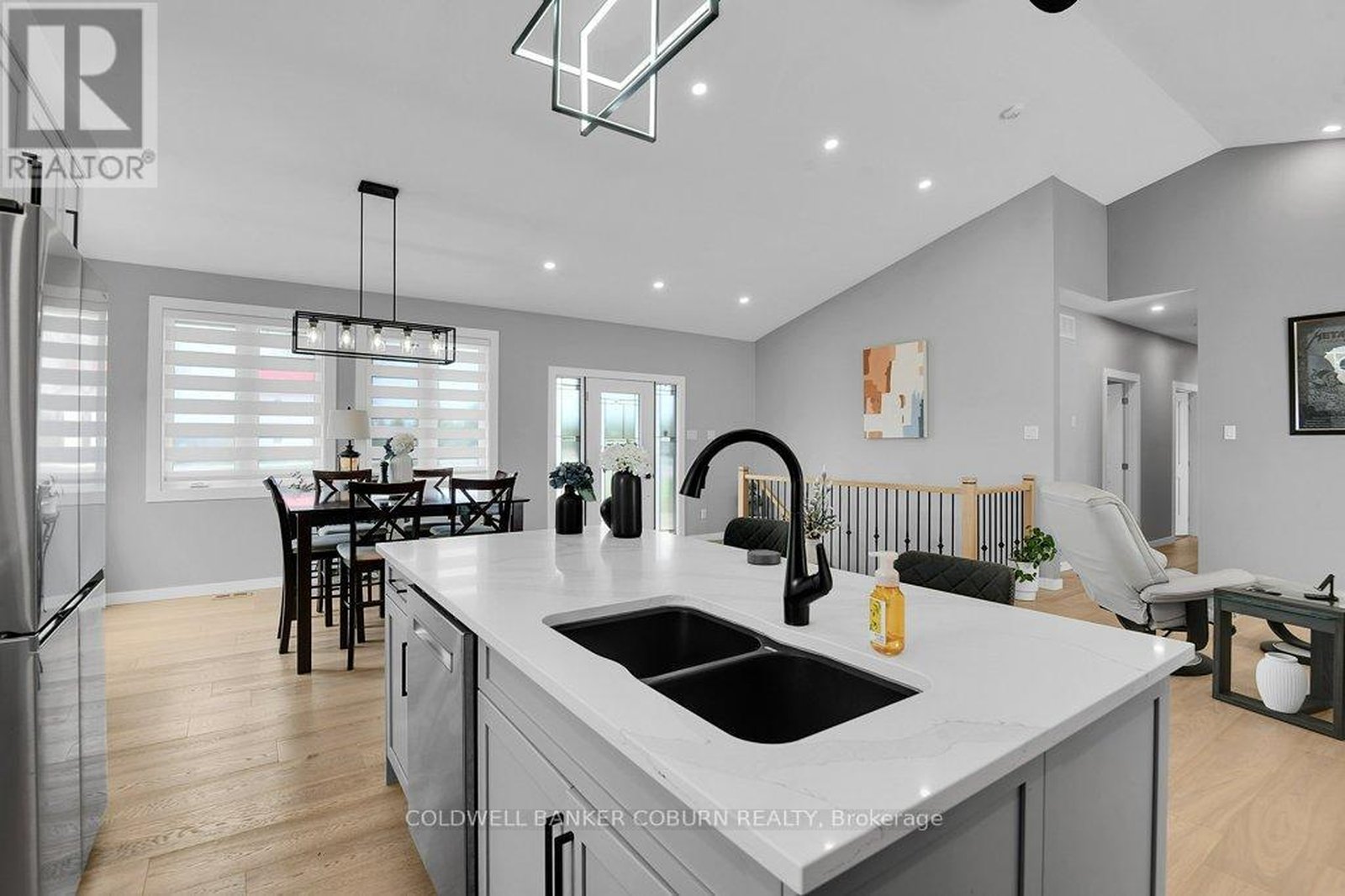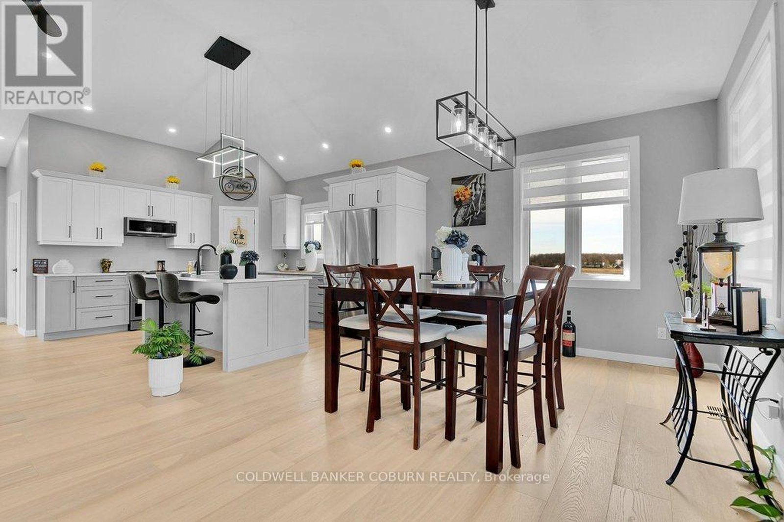 LARGE MODERN BUNGALOW at 12340 Forest Road situated on a 1.34 acre lot on a quiet Township Road just 600 feet from Bank Street/County Road 31, offering convenient commuting distance to Ottawa, Cornwall, Morrisburg & Brockville. The exterior features a maintenance free design with stone & modern board & batten on all sides, a covered front porch, & an inviting upgraded entry door. An oversized double garage provides large windows for natural light & automatic garage door openers. Inside, a vaulted ceiling & open concept layout create a bright, spacious environment ideal for both daily living & entertaining. Kitchen boasts hidden main level office space adjacent to the kitchen & a robust corner pantry as well as stunning quartz island and countertops with custom solid wood cabinetry. The main floor includes a well-planned mudroom with laundry conveniently located just off the garage entrance. The primary bedroom is generously sized & includes a walk-in closet with excellent storage & a well-appointed ensuite bathroom. The basement is partially finished to a high standard consistent with the main level & is accessed by a striking solid maple open wooden staircase with upgraded banisters and spindles. Quality features include: In-wall automatic hose retraction Central Vacuum unit on both levels of the home, quality appliances, a 2 ton cold climate heat pump with 7 kW backup heat, a Rheem high efficiency 3800 watt hot water heater & a Cummins 200 amp automatic transfer switch is installed in the garage ready for generator connection. Set in the peaceful countryside of Williamsburg in South Dundas, this property blends rural tranquility with modern convenience. Surrounded by farmland, trees, and open skies, it's near the St. Lawrence River for boating and recreation. With parks, trails, schools, amenities, and easy access to Highway 401, it offers space, privacy, and an ideal family lifestyle. Check out the virtual tour & additional photos.