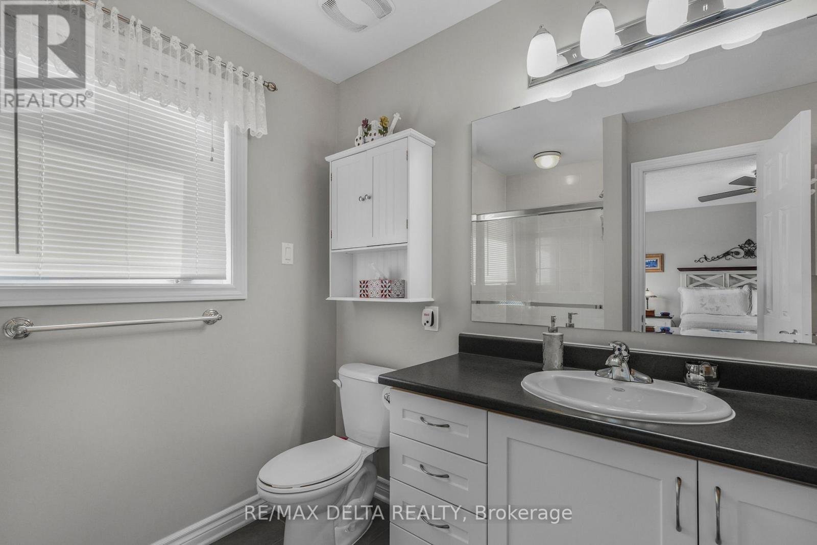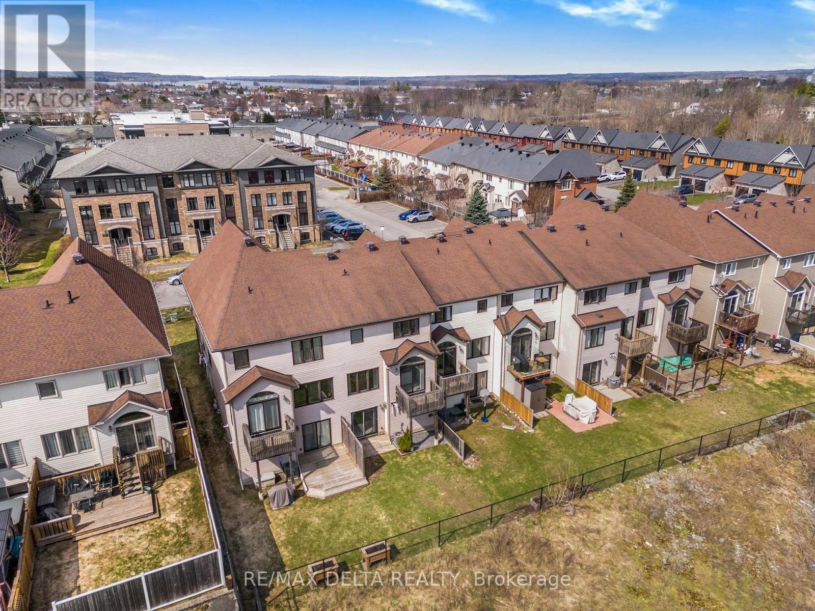 Impeccably maintained townhome on a premium lot with no rear neighbors, built by the reputable Minto and ideally located with quick access to all of Rockland's amenities. This bright and spacious home features elegant hardwood and tile flooring throughout the main level, complemented by a stylish white shaker style kitchen with quality backsplash, center island, and a sun-filled eating area with direct access to a private balcony. The open-concept living and dining area is enhanced by numerous pot lights, creating a warm and inviting atmosphere-perfect for entertaining. Upstairs, the oversized primary bedroom offers a walk-in closet and a luxurious 4-piece ensuite with a separate soaker tub and shower. The fully finished walkout lower level provides a generous family room with a cozy gas fireplace and direct access to the backyard. Additional highlights include a spacious storage area with rough-in for a potential fourth bathroom and a well-appointed laundry room. Bonus: a whole-home generator is included, offering added comfort and peace of mind. According to the builder, the Hampton Model offers approximately 1,845 sq ft of living space, including the walkout lower level. A true 10+ this home shows beautifully and is move-in ready!