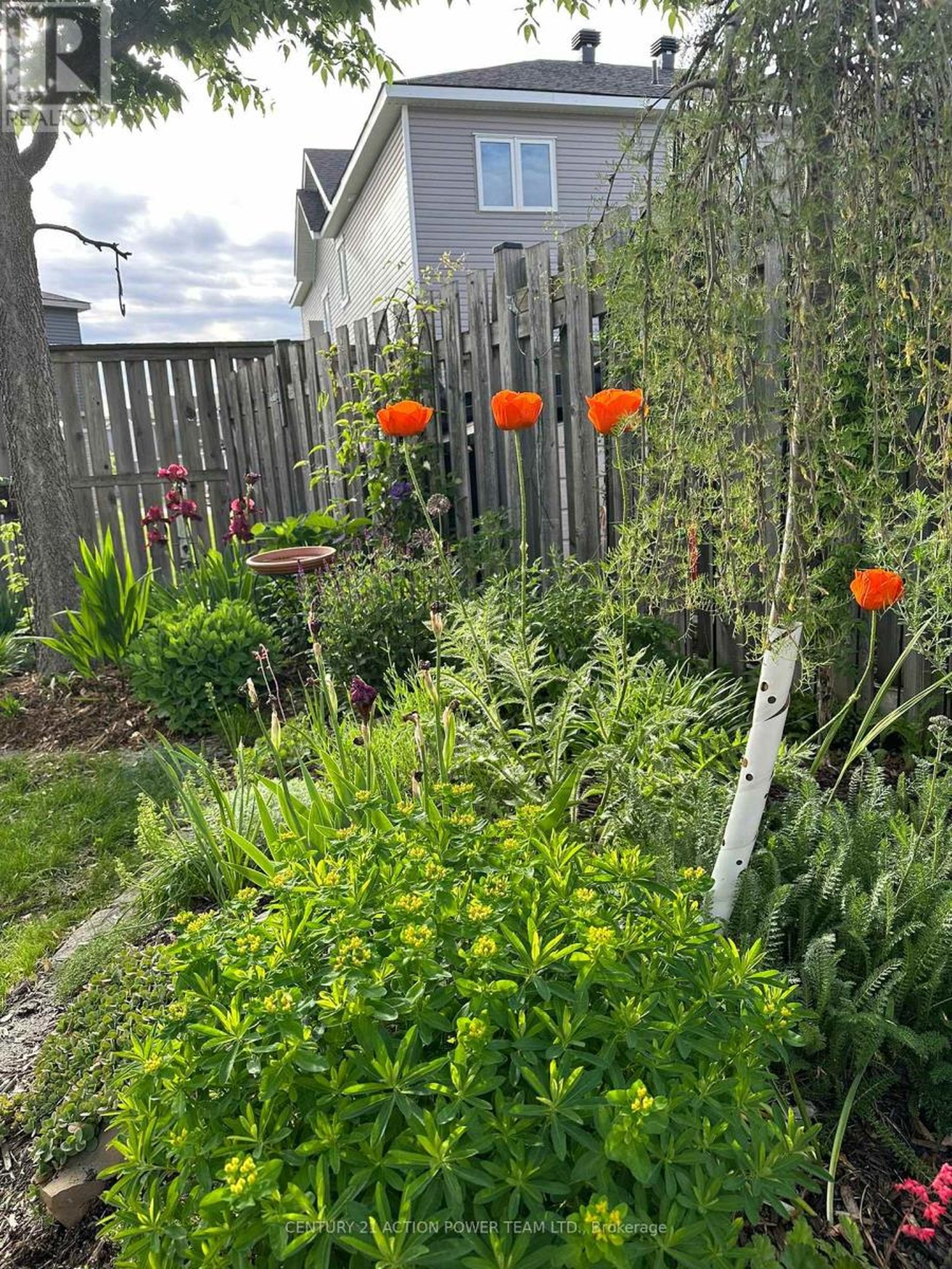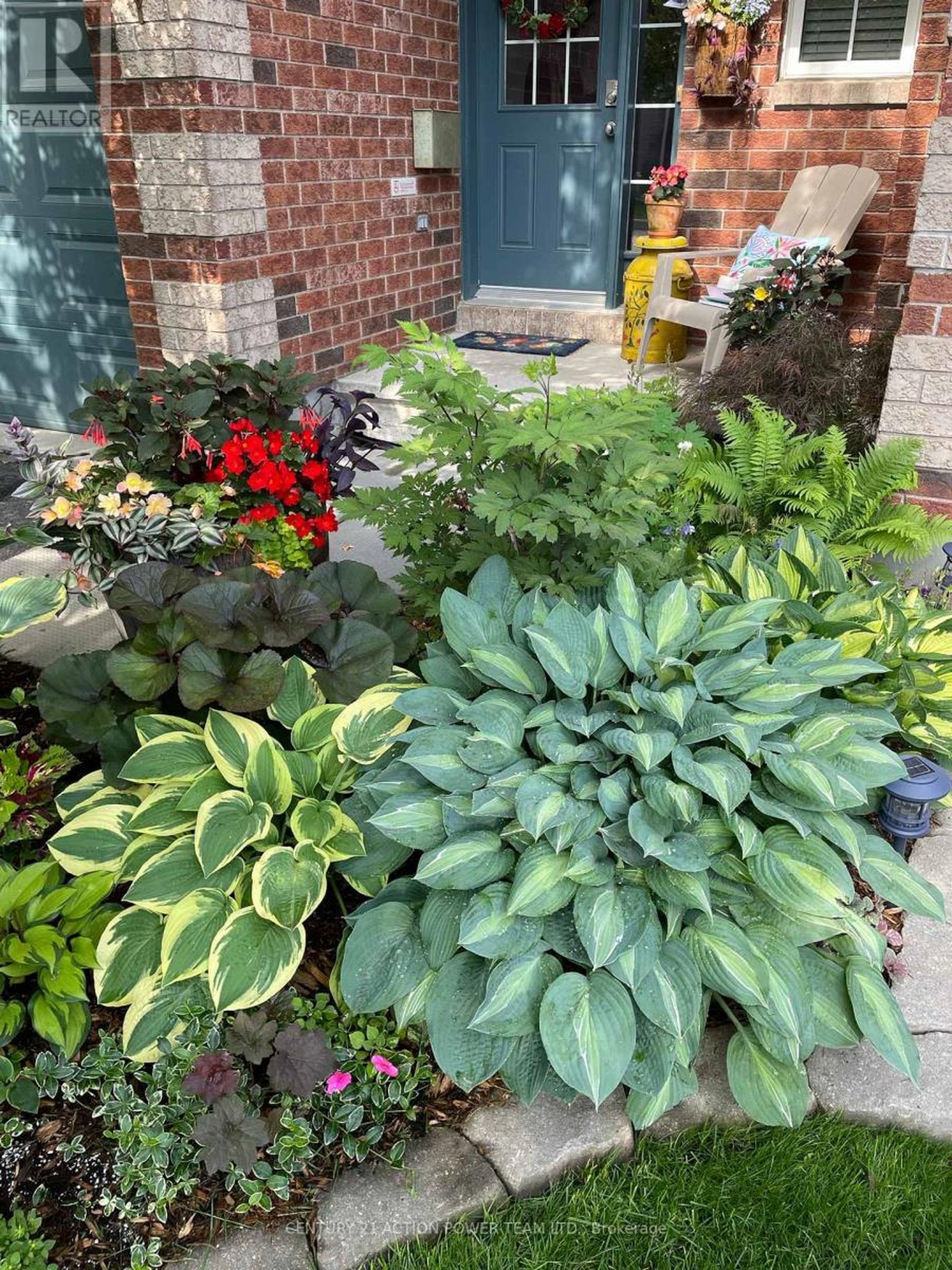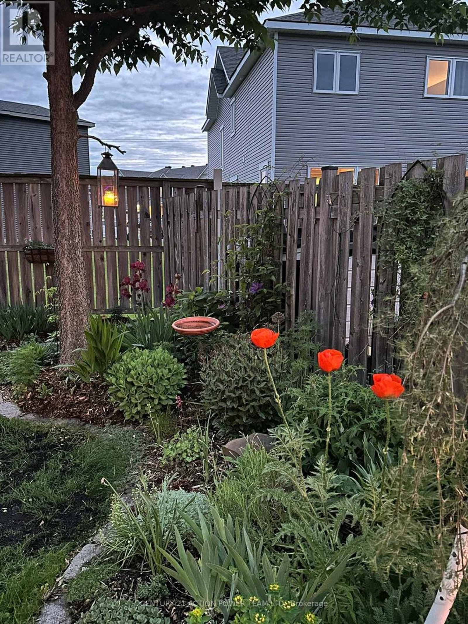 Welcome to 105 Destiny Private, this beautiful 3 bedroom 3 bathroom townhouse is located in Cardinal Trail on a quiet private road in a friendly neighbourhood. Features include: open concept main level with large tile foyer, 2 piece powder room, gourmet kitchen with island/breakfast bar and stainless steel appliances, living room with gas fireplace, and lovely dining room which has access to the very deep fenced and landscaped/treed yard with huge stone patio. Perennial gardens, mature trees in FRONT and BACK yards. Second level features a spacious primary bedroom complete w/4pc ensuite & WIC, two other bright bedrooms,separate full bathroom and an upper level laundry room and linen closet. On the lower level we have a fully finished family room, two other storage areas. There is quality HWD laminate throughout the main and lower level. The furnace, a/c, water tank and windows are 2007, roof done in 2022. Turnkey! Pride of ownership apparent. There is quick access to Trim Rd and is conveniently located close to schools, parks, community center, biking/walking trails, public transportation and much more. Everything you need, JUST MOVE IN AND ENJOY!