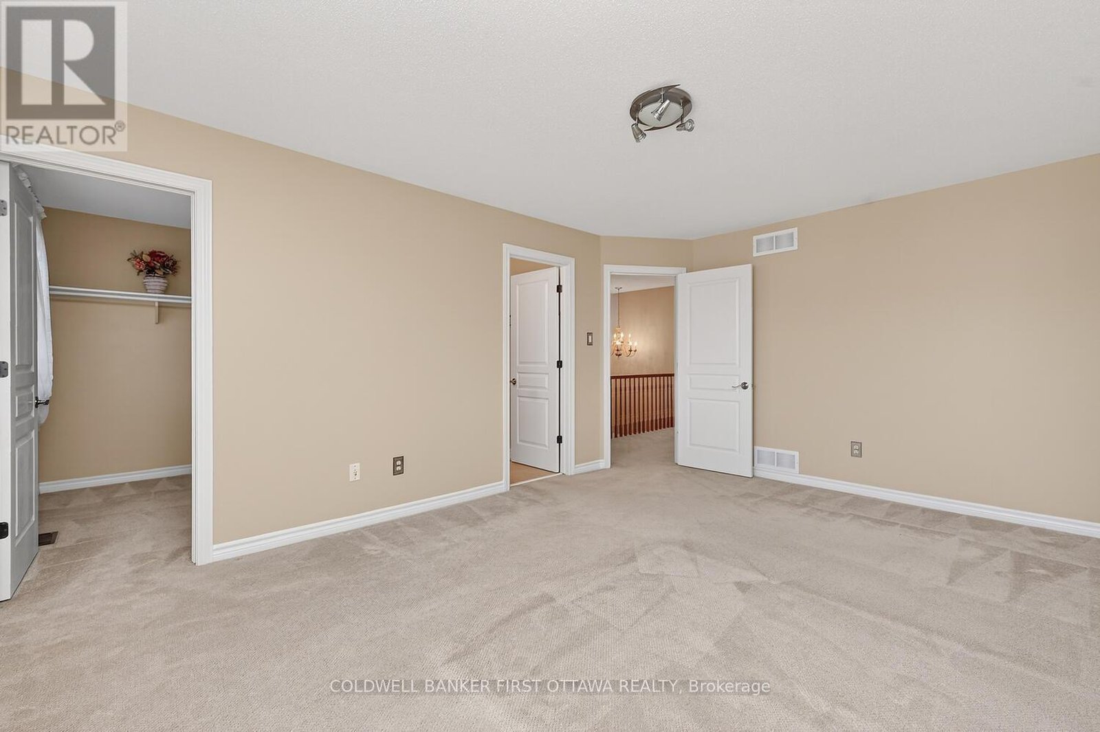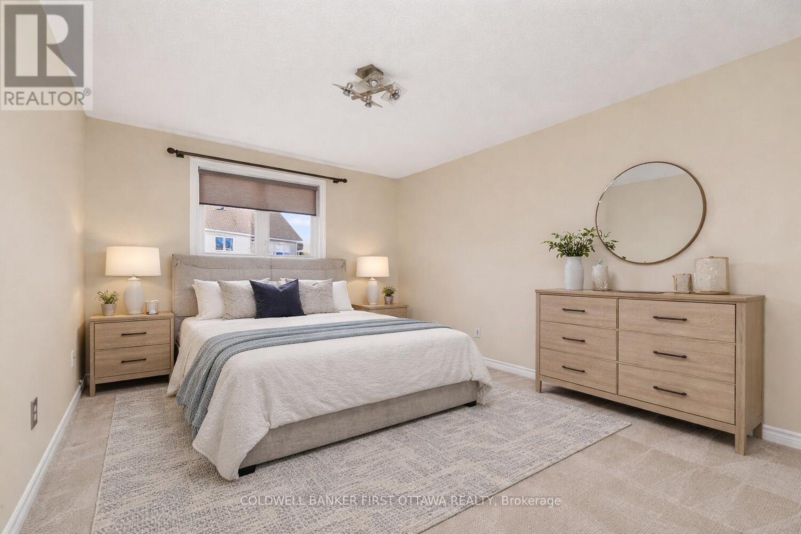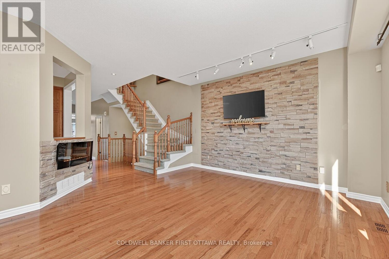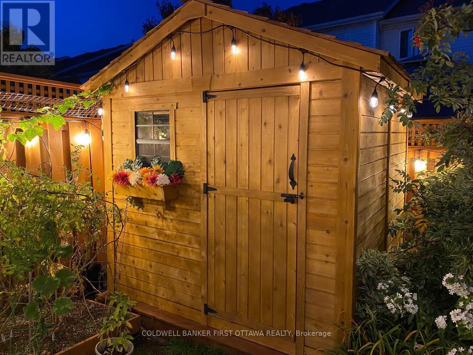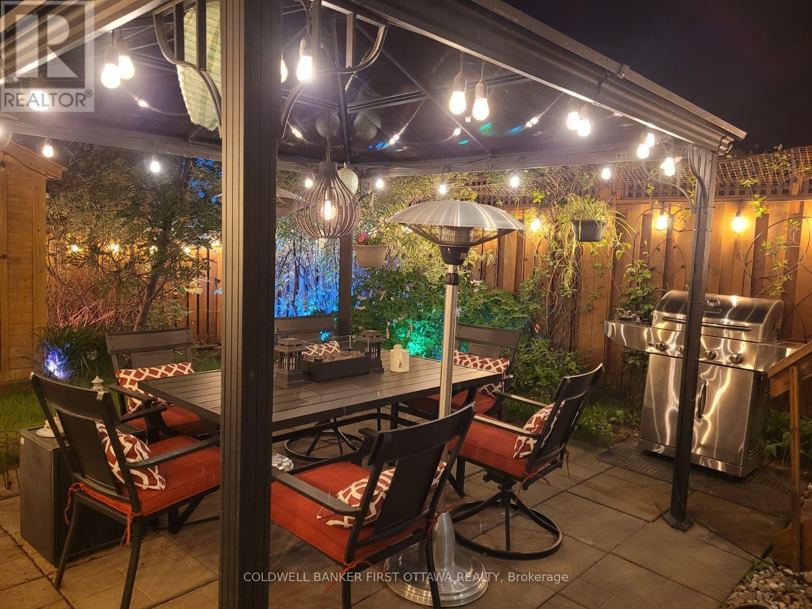Welcome to this beautifully upgraded 3-bed, 3-bath former model home in the heart of Kanata North. Steps to grocery, restaurants, pharmacy, transit, parks, and zoned for some of Ottawa's top rated schools. This is the one that checks every box.Featuring 9' ceilings, oak hardwood floors, and large windows that flood the main level with natural light, this townhome feels bright, open, and exceptionally well laid out. The stylish living area showcases a textured stone feature wall plus an electric fireplace adding warmth and character.The spacious kitchen is designed for those who love to cook and entertain, offering upgraded backsplash and tile, newer hood fan, pull-outs in most cabinets, and tons of counter and storage space.Upstairs, you'll find two oversized secondary bedrooms with double closets, a large 4-piece family bath with ceramic tile and glass shower doors, plus a generous primary suite complete with a huge walk-in closet and its own 4-piece ensuite. Fresh, neutral paint throughout makes the home move-in ready.The lower level expands your living space with a very large family room featuring a gas fireplace, a big laundry/storage area, and an additional finished storage room.Step outside to a gorgeous, private, landscaped backyard-complete with patio stones, mature trees, and a powered shed. This bright, thoughtfully upgraded home offers comfort, style, and unbeatable walkability in one of Kanata North's most desirable neighbourhoods. A rare find! *some photos virtually staged