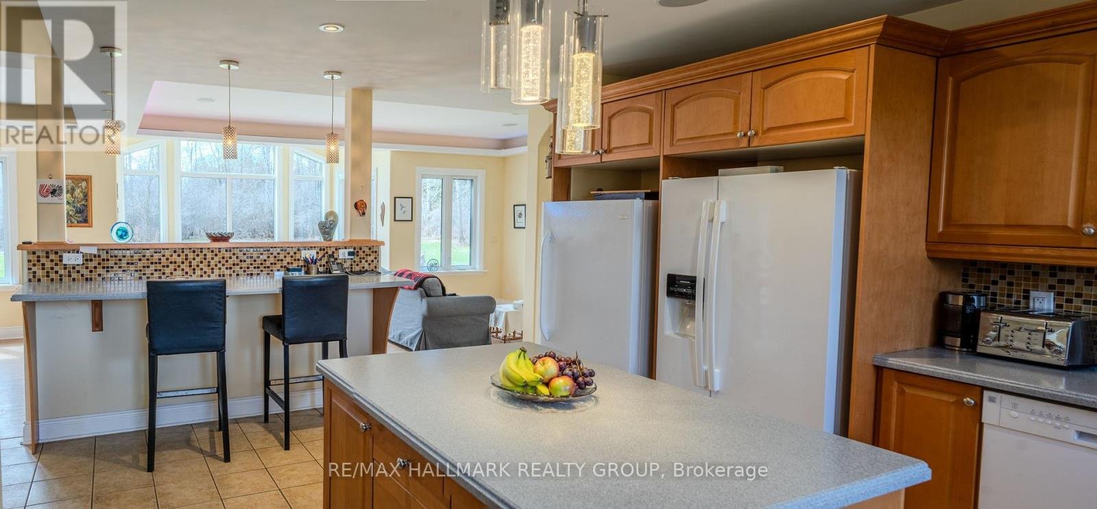 Set on a private, nearly 2-acre wooded lot at the end of a quiet cul-de-sac, this custom-built two-storey home offers exceptional space, privacy, and comfort-just a short drive from Ottawa and minutes from Riverbend Golf and Country Club. Built in 2008 and meticulously maintained, the home features a bright, open-concept main floor designed for both everyday living and entertaining. At its heart is a spacious custom kitchen with an oversized island, seamlessly connecting to a sun-filled family room and a southern-exposure solarium. A dedicated main-level office provides flexibility for remote work or additional living space, all with direct access to an expansive rear deck. Upstairs, you'll find four generously sized four bedrooms, a shared full bathroom and an ensuite bathroom, along with the convenience of second-floor laundry. Outdoor living is truly a standout. The property boasts a 2018 rectangular saltwater pool with surrounding deck and fencing, a beautifully crafted screened gazebo, and professionally landscaped grounds framed by mature trees for ultimate privacy. The triple attached L-shaped garage includes workshop space and an insulated storage loft, offering both functionality and versatility. Designed for year-round comfort and energy efficiency, floors are heated by two in-floor furnace units with seven separate heating zones. Heated floors in upstairs bathrooms and a Bosch multi-zone heat pump system (2025) with five wall-mounted ductless air conditioning units. A built-in whole-home sound system with in-ceiling speakers extends through most rooms, enhancing both everyday living and entertaining. Additional electrical updates and interior refreshes further enhance this move-in-ready home. A rare opportunity to enjoy refined country living with modern mechanical systems, evident pride of ownership, and easy access to city amenities.