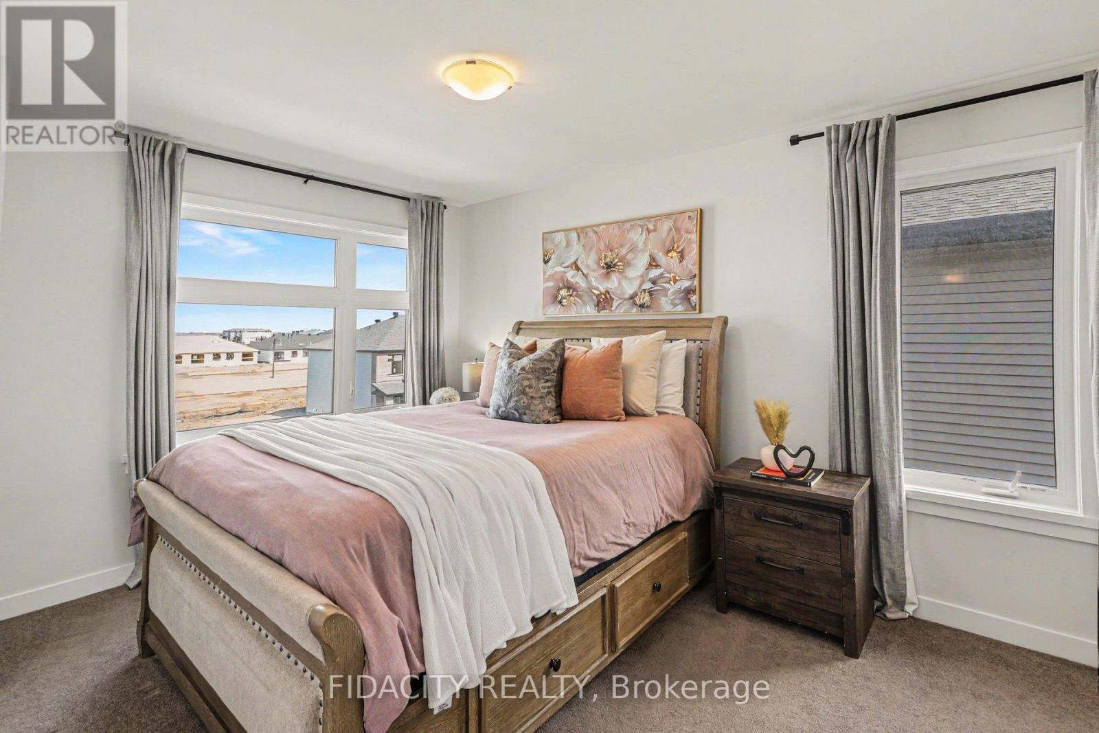 Built in 2024 by Richcraft Homes, this exceptional 3-storey end-unit townhome offers a refined, modern design with extensive upgrades throughout. The end-unit placement provides additional windows, filling the home with natural light.The main level features hardwood flooring, a well-appointed office nook, powder room, and inside access to the garage, along with access to the unfinished basement for additional storage.The second level continues with hardwood flooring and a bright, open-concept layout. A second powder room adds functionality, while double French doors lead to a private balcony. The kitchen is thoughtfully designed with a large island overlooking the eating area, complemented by quartz countertops, upgraded hardware, glass door inserts, pull-out garbage, pot drawers, and soft-close cabinetry and drawers.The third level offers two bright bedrooms and two full bathrooms, including a primary suite with its own private ensuite, along with conveniently located stacked laundry. Upgrades include professionally finished closets, upgraded railings and trim, enhanced hardwood in the main hallway and kitchen, updated light fixtures, HVAC humidifier, garage door opener, and all appliances (2024).Situated in a desirable location close to parks, schools, trails, transit, and all major amenities. Enjoy the benefits of a nearly new home without the wait times or added cost of upgrades and appliances.