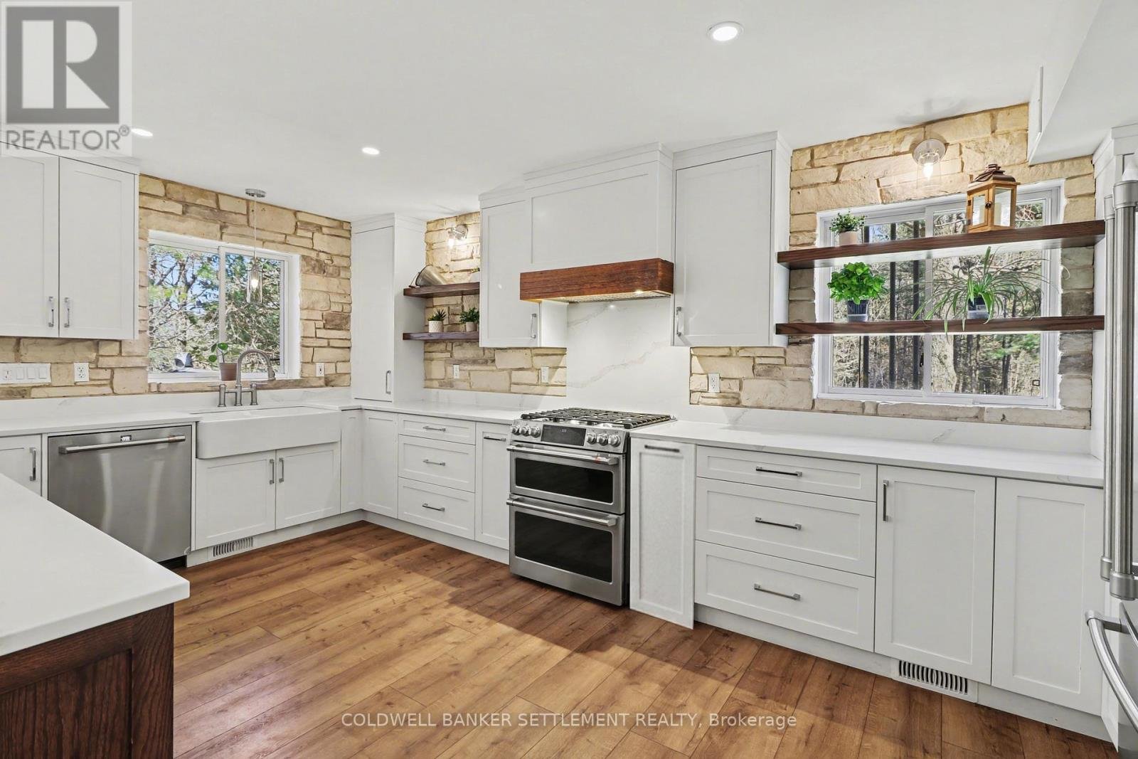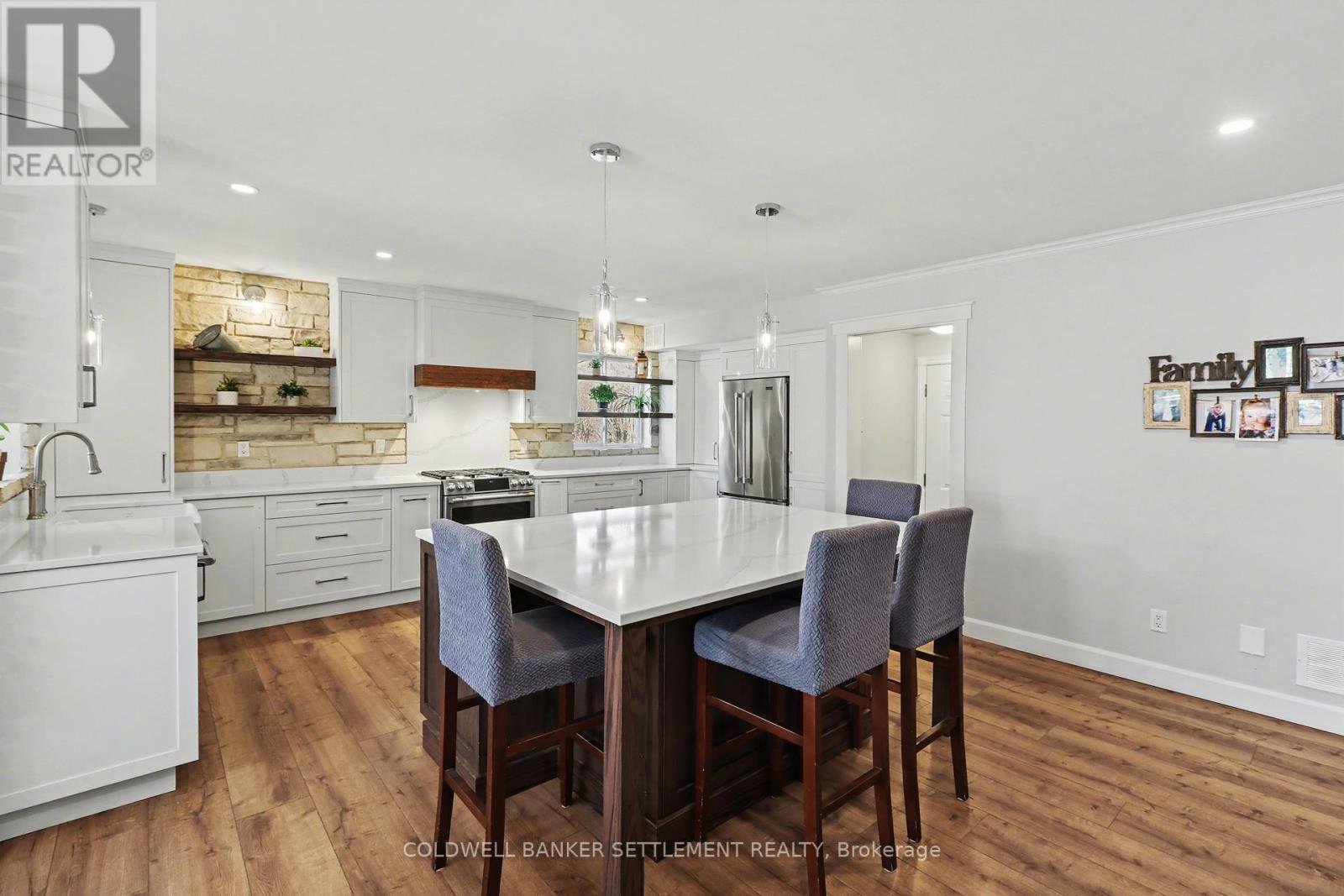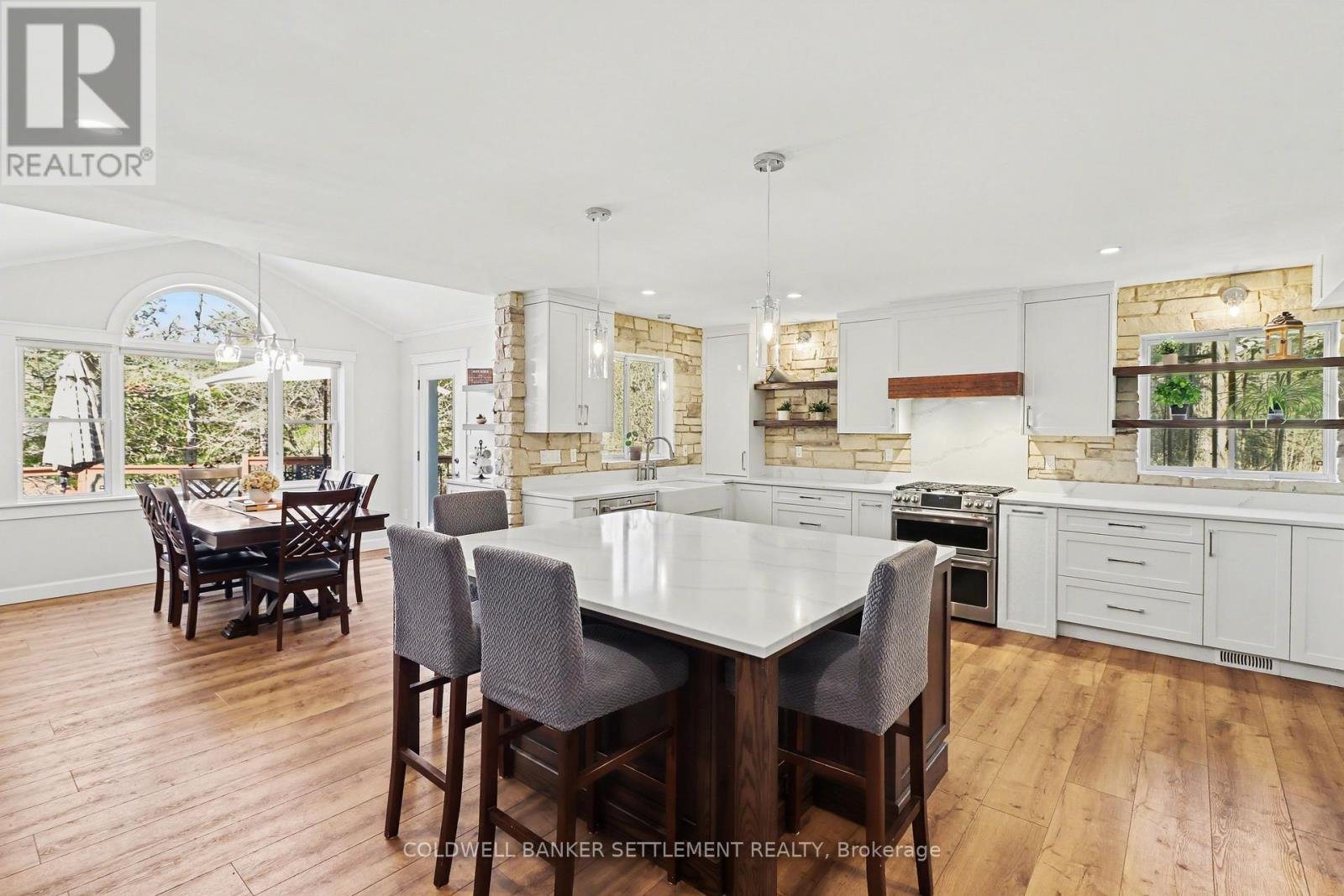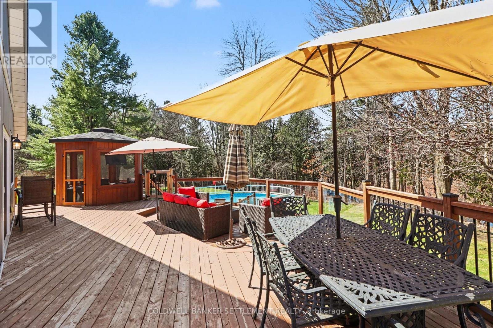 Discover the sought-after community of Elmsley Acres - one of the most desirable rural subdivisions in the Perth area - where this stunning 5-bedroom, 4-bathroom bungalow offers the perfect blend of privacy and convenience just 4.3 kms from town. Set on a picturesque 3+ acres at the end of a cul-de-sac, surrounded by mature trees and backing onto Jebbs Creek, this home is perfect for the nature lover who enjoys exploring by kayak or canoe. From the moment you open the front door, the gorgeous open-concept kitchen with quartz counters, island, & custom cabinetry, open to both the dining room and living room with stone surround gas fireplace, will inspire you. A view from every window brings the beauty of nature indoors filling the space with natural light from the bonus sun room that would make a great play room or home office, to the spacious primary bedroom with patio doors opening onto the back deck, and boasting an incredible custom walk-in closet that opens onto a beautiful spa like 5-piece ensuite with quartz double vanity, soaker tub, and glass & tile shower. The wonderful layout also features a spacious loft bedroom with its own 4-piece bathroom - ideal for guests, teens or a home studio. Well thought out, the main floor also includes a fantastic laundry/coat room, and an expansive finished basement complete with bedroom, bathroom, spacious family room with cozy wood stove, wet bar, workshop, exercise room with convenient walk-up outdoor access, cold room, and storage room. Last but not least is the on-ground heated pool overlooking the beautiful yard and creek behind. Truly an exceptional home in an exceptional location. Book your private showing today.