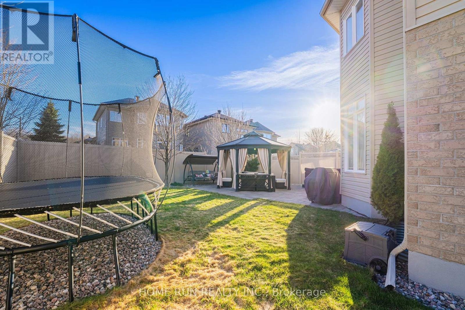 A immaculately maintained Urbandale 35' Mendocino model on a premium corner lot in family-friendly Bridlewood! From the front yard to the driveway, to the front entry, the pride of ownership is obvious - this is one of the best maintained homes that anyone could ask for: beautiful, artistic, and exceptionally functional, with every detail designed for everyday living. This home offers 4 bedrooms and 3.5 bathrooms across 3 floors including a fully finished basement. Built in 2011 to R-2000 standard, it's an energy-efficient home with superior air quality and a solar-ready rough-in already in place. The main floor is laid out well, with a living room at the front and a family room at the back, separated by a three-sided gas fireplace that anchors the space. There's also a formal dining room and a sunny breakfast area. The kitchen features shaker cabinets, soft-close cabinetry, quartz countertops, a mosaic backsplash, and a pantry with four large pull-out shelves. Upstairs, the primary suite spans the full rear of the home; it has a walk-in closet with a full custom built-in organizer system, and an updated ensuite. All three additional bedrooms are well-proportioned and have their own closet systems. A convenient second-floor laundry complete the level. The finished basement adds a thoughtfully designed rec room, a home office space, a mini gym area and a full bath. The interior walls in the basement have extra soundproofing from the mechanical room. Whole-perimeter security system installed. Doorbell camera included. A fully finished, insulated, and freshly painted garage, complete with a smart Wi-Fi garage door opener and integrated video security. Outside, the corner lot backyard is a true retreat with interlock, an octagon gazebo, a 90-jet hot tub, a Springfree trampoline, and a storage shed - with mature trees providing privacy and sunshine all day long. Steps to NCC trails, top-rated schools, and all the amenities Kanata South has to offer. ** This is a linked property.**