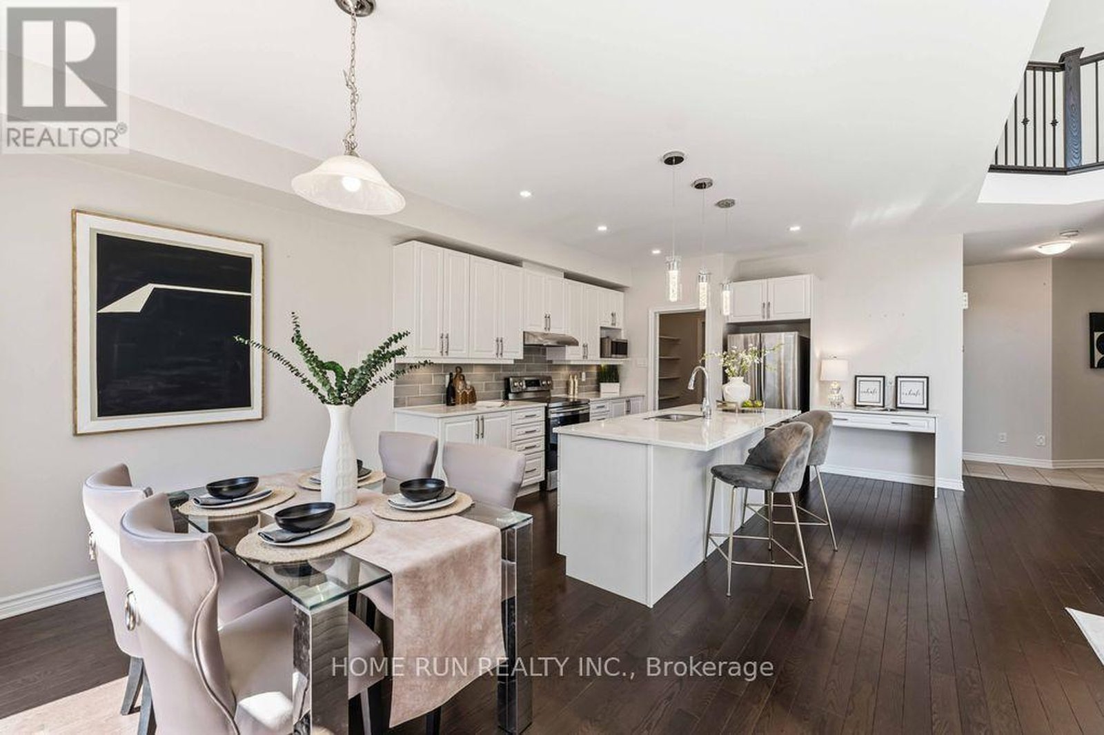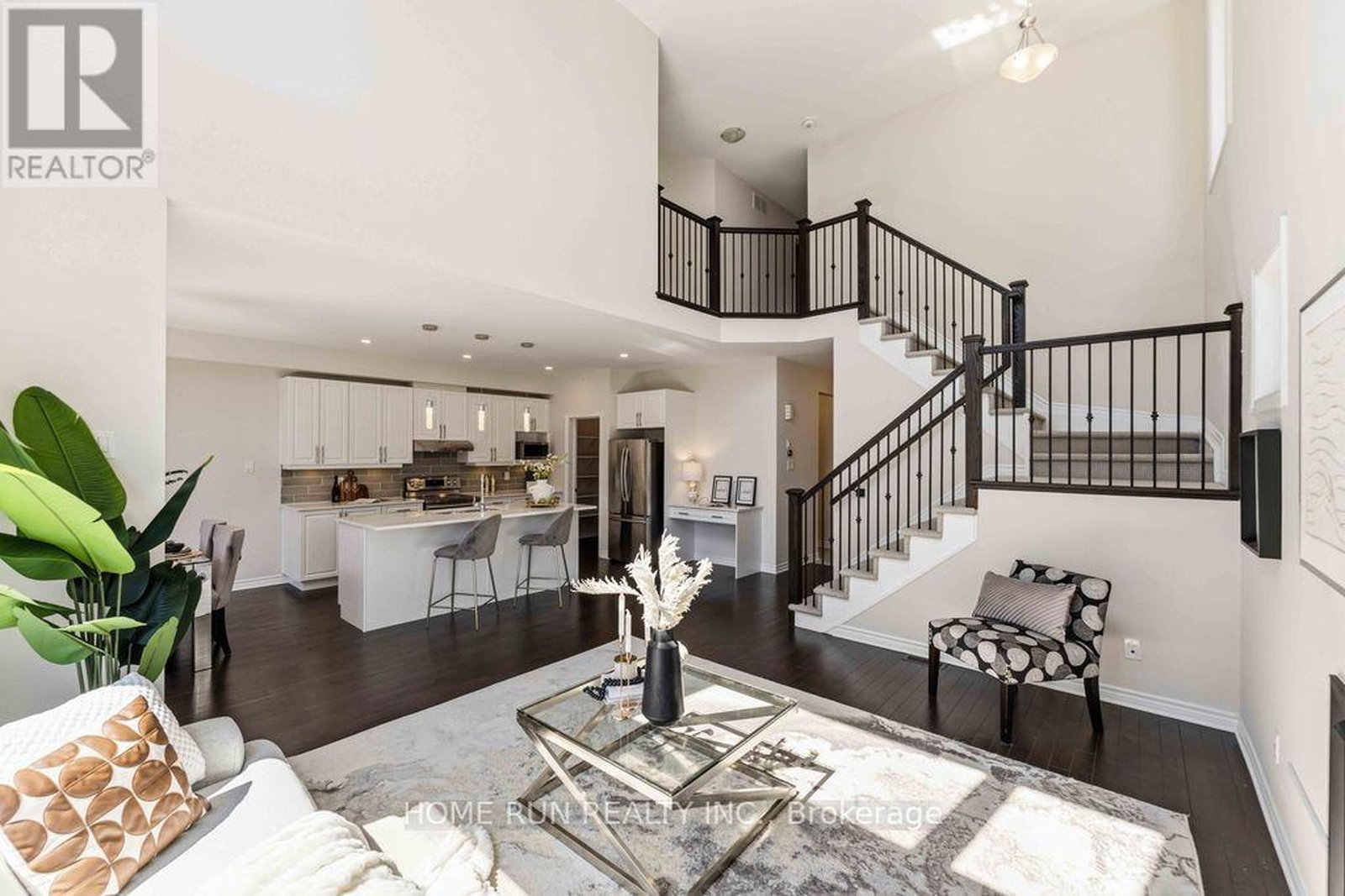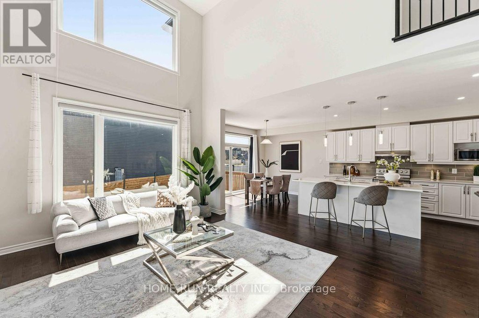 Welcome to this STUNNING 4 bdrm + 3 baths detached home with south facing + oversized two double garage in the sought after Fernbank Crossings of south Kanata by EQ Homes. Step inside to a bright foyer, with hardwood and tile flooring throughout the main level. The thoughtfully designed layout includes a convenient walk-through mudroom/pantry leading into the upgraded kitchen, complete with granite countertops, stainless steel appliances, and a large central island-perfect for everyday living and entertaining.The eat-in area overlooks the fully fenced backyard, where you can relax with your morning coffee and enjoy sunshine all day long. The impressive great room boasts soaring 18 feet ceilings, enhanced by expansive windows that fill the space with natural light. Upstairs, the spacious primary bedroom features a luxurious ensuite with double sinks and an oversized walk-in closet. Three additional bedrooms are generously sized and well proportioned. The laundry room with window adds everyday convenience.The bright unfinished basement offers potential, complete with rough-in for a 3-piece bathroom. The oversized double-car garage provides extra space for larger vehicles or additional storage. Steps to new schools, including Maplewood Secondary School, Shingwàkons Public School, and St. Bernadette Catholic School, offering both public and French immersion programs.Enjoy the convenience of nearby shopping, dining, and amenities, including Walmarts, Superstore and Tanger Outlets Ottawa, all within easy reach delivering the perfect balance of suburban comfort and urban accessibility.A must see! Offers to be presented on May 4th at 6:00 PM. Seller reserves the right to review and may accept pre-emptive offers.Open house May 2nd 2-4pm.