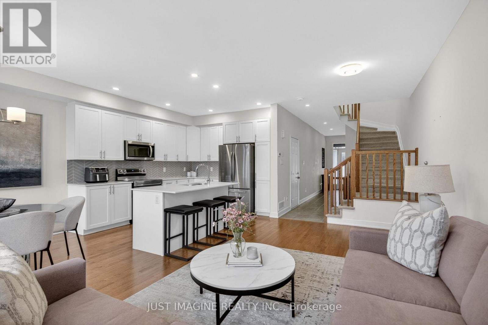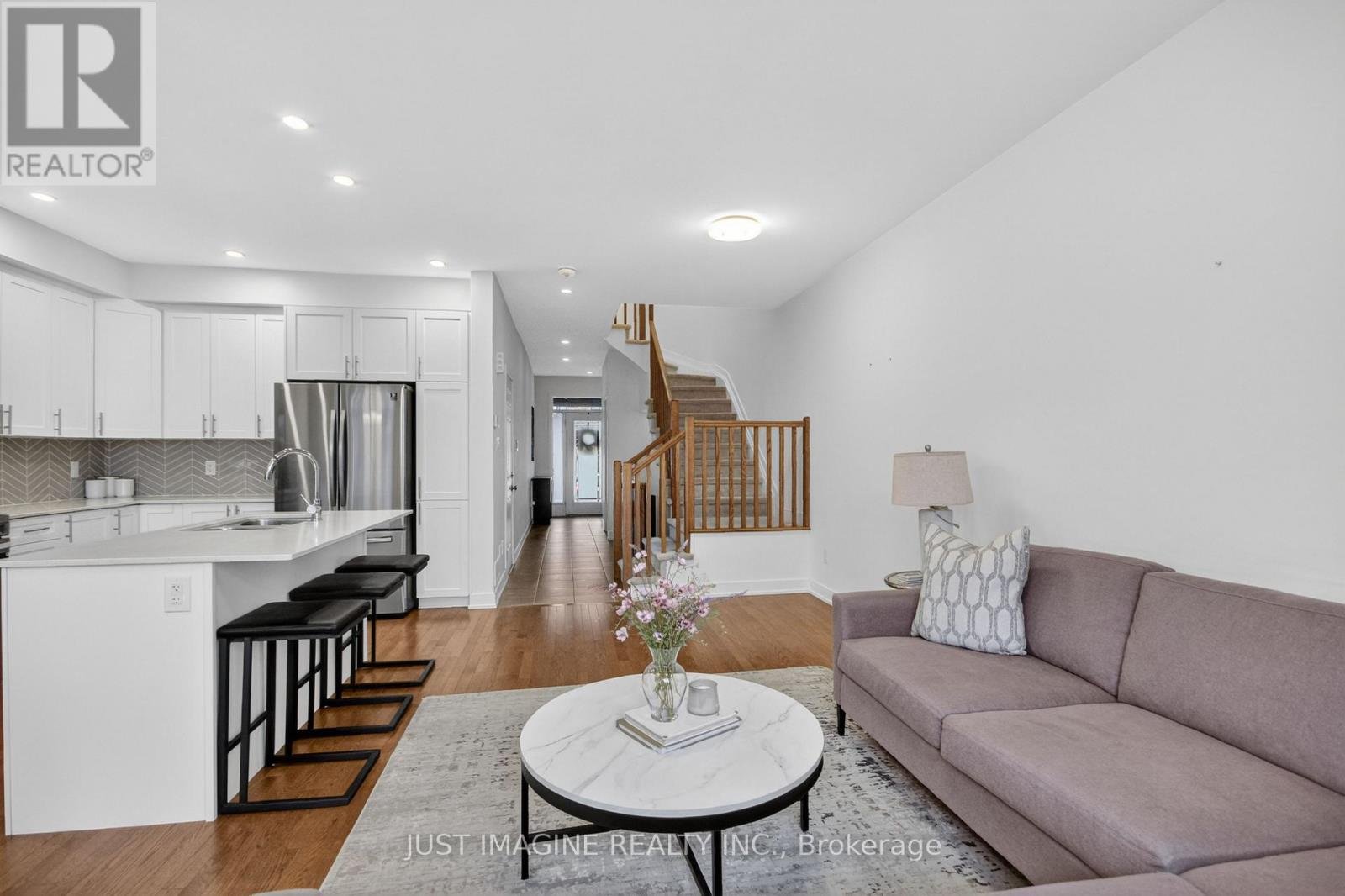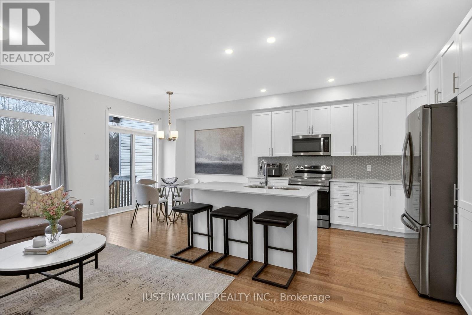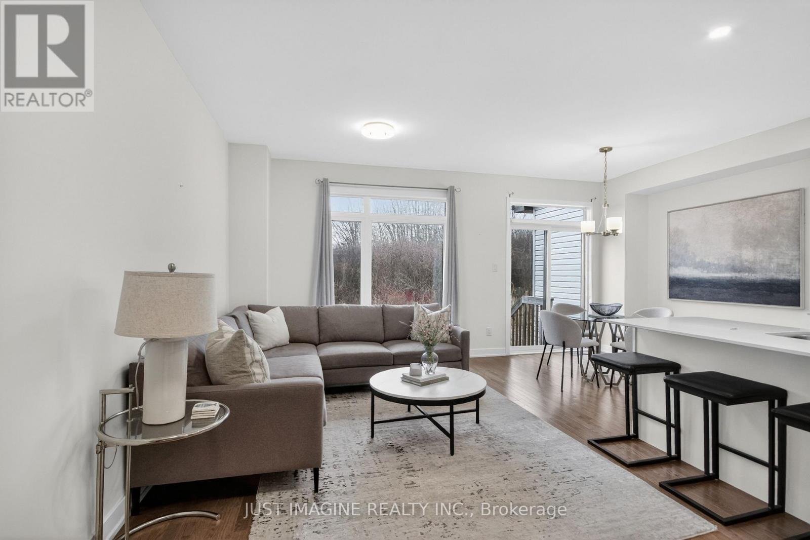 PREMIUM LOT - NO REAR NEIGHBOURS! A stunning townhome in the highly sought-after Lilythorne Community, perfectly situated on a quiet street backing onto a serene forested setting. Enjoy the privacy and natural beauty while just a short walk to the shops, restaurants, and everyday conveniences at the Findlay Creek Centre. Built by Claridge in 2021, this meticulously maintained home shows like new. Step inside to a spacious foyer featuring a glass front door, transom windows, double closets, and convenient inside access to the garage. Rich oak hardwood flooring extends throughout the main living areas and continues with matching stair railings and balusters. The bright, open-concept layout is enhanced by 9-foot ceilings, modern lighting, pot lights, and fresh white paint on all three levels. The living room has a floor-to-ceiling window overlooking the wooded backdrop, while patio doors off the dining area provide seamless access to the West-facing backyard, perfect for summer entertaining. The stylish kitchen is thoughtfully designed with extended cabinets, quartz countertops, a large island, and quality stainless steel appliances. Upstairs, the spacious primary bedroom features a walk-in closet and a private ensuite. Two additional bedrooms and a full bathroom with double sinks complete this level. The fully finished basement offers a large family room, laundry room, and plenty of storage space; ideal for growing families. Located within walking distance to parks, trails, and schools, this home is perfect for families with an active lifestyle. Set in a vibrant, family-friendly community known for its excellent amenities, and scenic surroundings. Public transit and a Park & Ride are nearby for an easy commute.