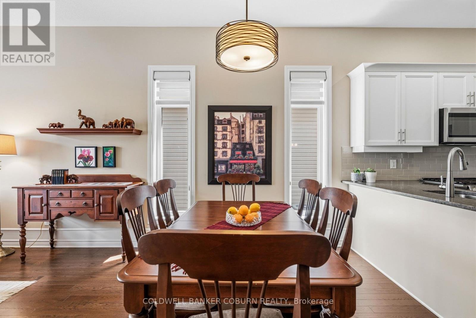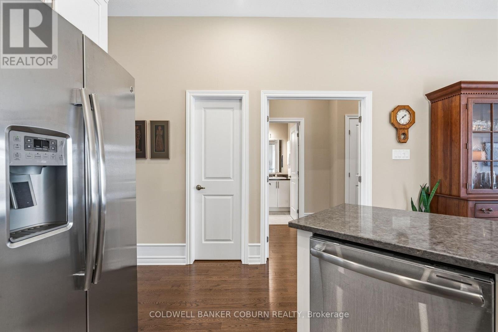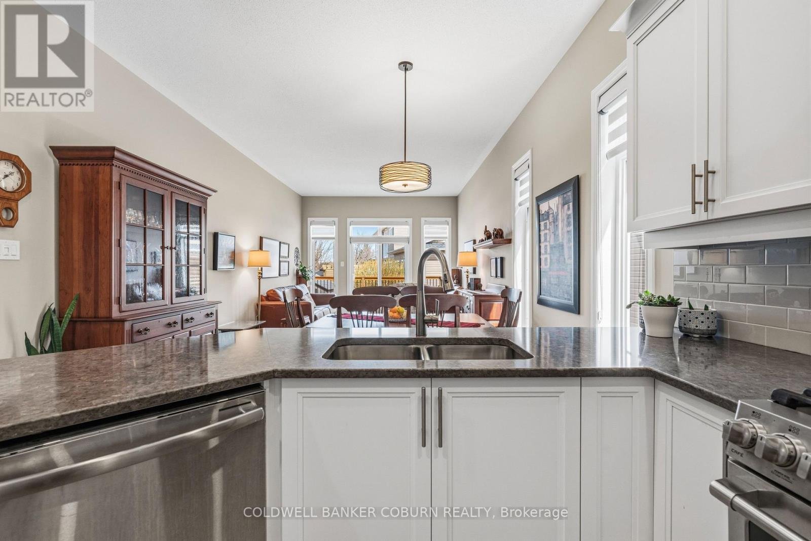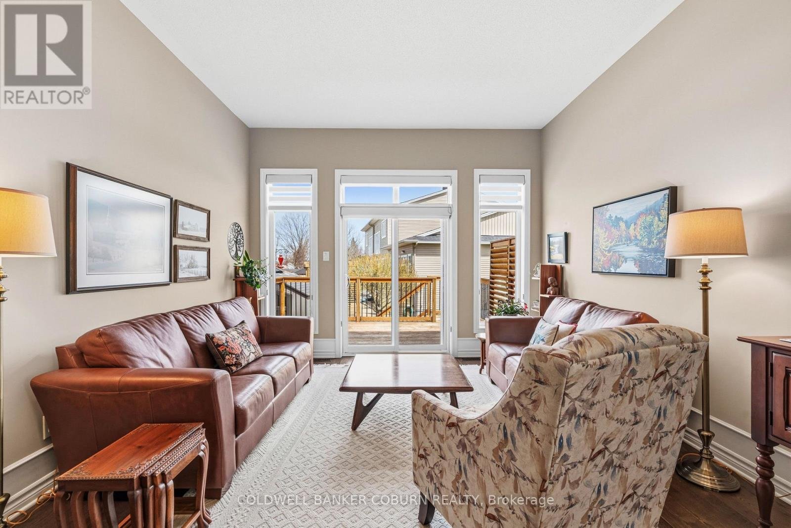 Welcome to one of Kemptville's premier retirement communities. Country Walk is a 55 + established neighbourhood of upscale bungalow townhomes. This end unit home has a large welcoming foyer leading to an open concept main floor living area. Ceilings on this level are 10 ft. Living/dining has hardwood floors and a patio door to the raised rear deck. The kitchen has modern white cabinetry, granite countering and a custom backsplash. Appliances are stainless and include a gas range, microwave/hoodfan, dishwasher and side by side fridge and freezer. This primary suite is sure to please. The bedroom will fit a king size suite and the walk in closet is truly generous. The 4 pc ensuite bath features a double sink vanity and walk in shower with corner seat. Also on the main level is a den with a wall of cabinets. The laundry and 2 pc powder room are located off the mudroom. Downstairs is a comfortable family room with a gas fireplace. Perfect for guests is the 2nd bedroom with a walk in closet. In close proximity is the full bath with tub. Flooring in the basement is easy care laminate and the only carpeting is on the stairs. At the bottom of the stairs is a dedicated workshop, sewing room or craft area. This room is finished with counter height plugs on the side walls and has a workbench and wall peg boards. Other inclusions are central vac, an upright freezer and water softener. The utility room has good storage space. In the backyard, is a large garden shed. Enjoy the afternoons on the shaded back deck with louvred sides for privacy. The driveway is private and the front walk is interlock. Annual utilities-Hydro $793; gas $1530; water $850. HWT rental $46.18 per month. Cogeco or Bell available for internet/TV. Country Walk has an annual association fee of $300 and a clubhouse for resident's use. North Grenville is a vibrant community with restaurants, shopping, hospital and walking trails.