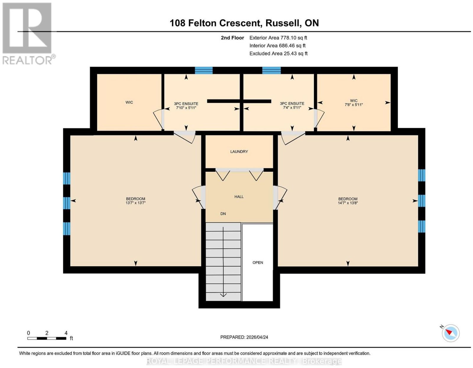 Country living at its best. Beautiful 3 bedroom, 3 bathroom home nestled on a private and secluded 2+ acres with a spring fed pond minutes from the village of Russell. Bright and spacious kitchen with white cupboards and LED sunshine ceiling. Kitchen island has a double stainless steel sink as well as a dishwasher. Eating area is adjacent to patio door access to south facing deck. Living room and dining room have beautiful maple floors. Main level primary bedroom with patio door access to private back deck facing pond and wooded area. Walk in closet and main bathroom next to primary bedroom. Second level boasts 2 large bedrooms with walk in closets and each have their own 3 piece en-suite bathroom. Laundry room is located at top of stairs. Fully finished basement with recreation room equipped with a pellet stove for quiet comfort. Spacious utility room for the handyman. Owner never needed a sump pump for the property as it is built high and dry. Deck from eating area is 10 X 14. Deck from primary bedroom is 8 X 29 with garage access. There is a walking trail around the properties perimeter. Water pond becomes a skating rink in the winter. Upgrades include: 2025 dishwasher, LED kitchen lighting and Gener link generator connection. 2021 Water heater and expansion tank. 2018 New septic tank and maple floors on main level. 2016 metal roof and water softener. 2014 Mitsubishi heat pump and system. 2015 replace submersible pump in the well and replace the iron filter. Other upgrades in early 2000 windows except moon shapes upstairs. Measurements provided by I Guide to be verified.