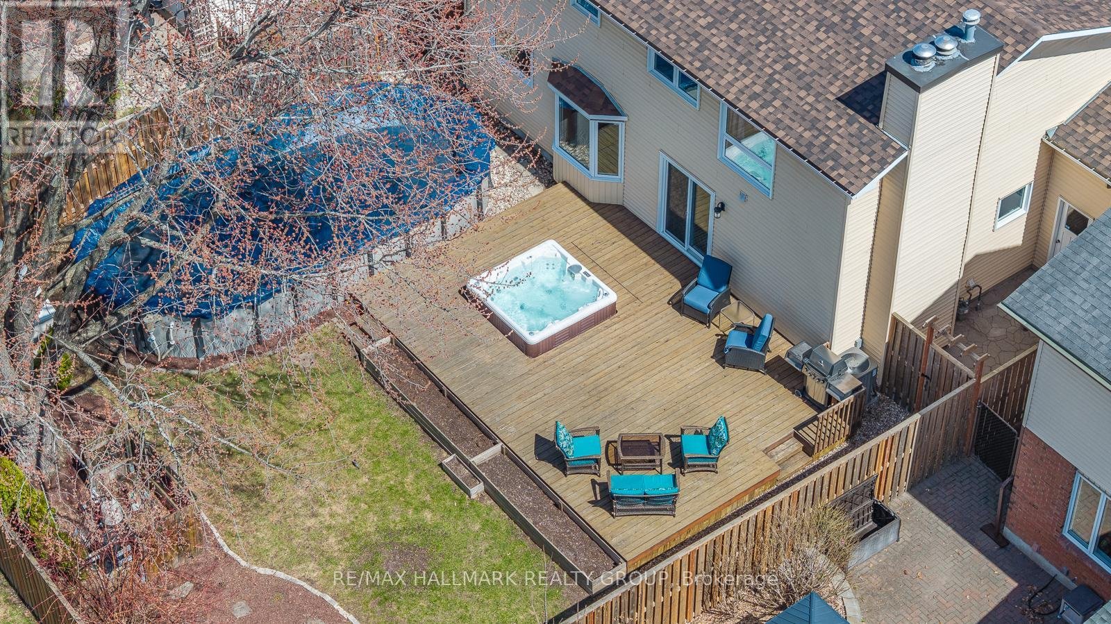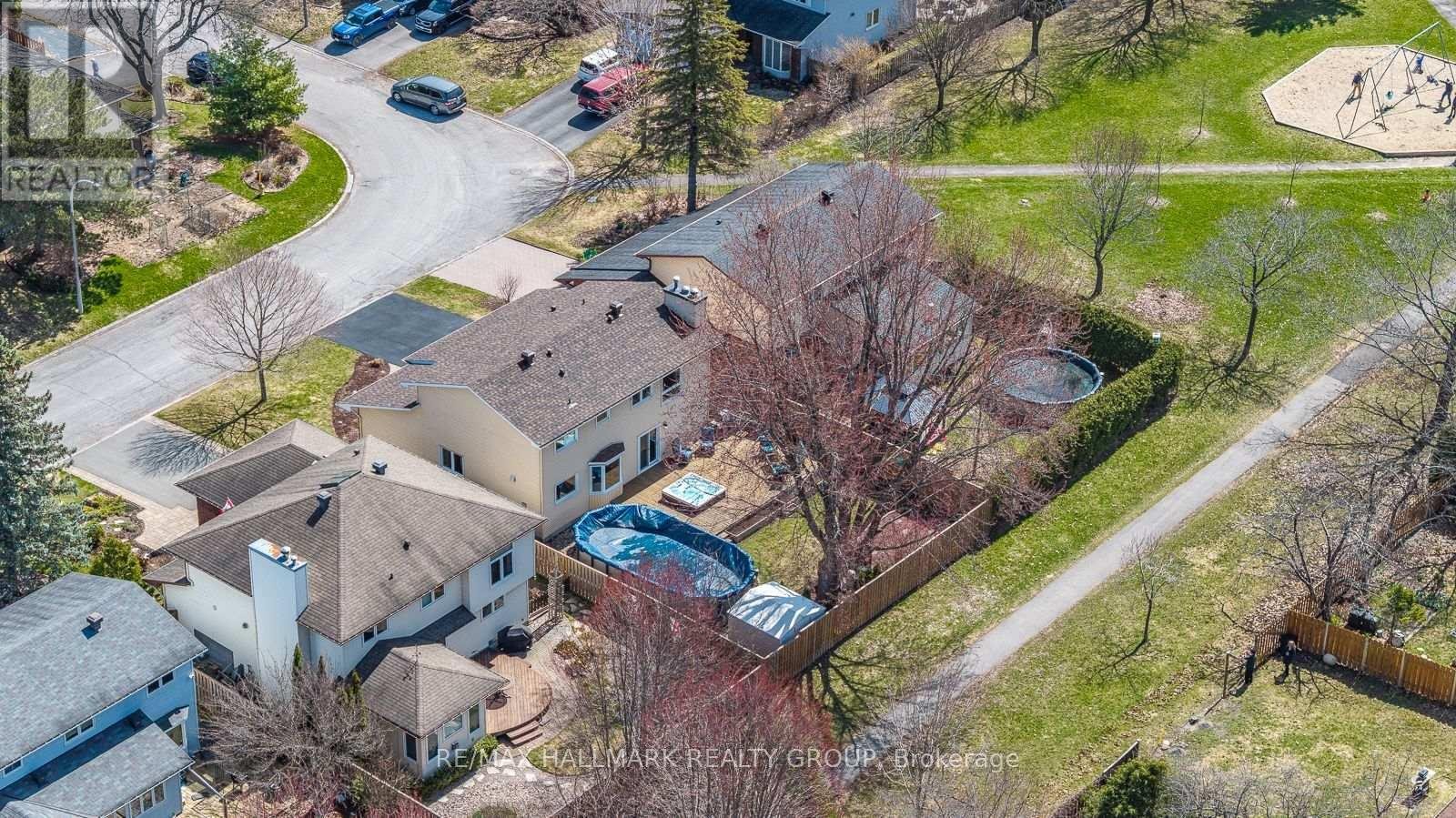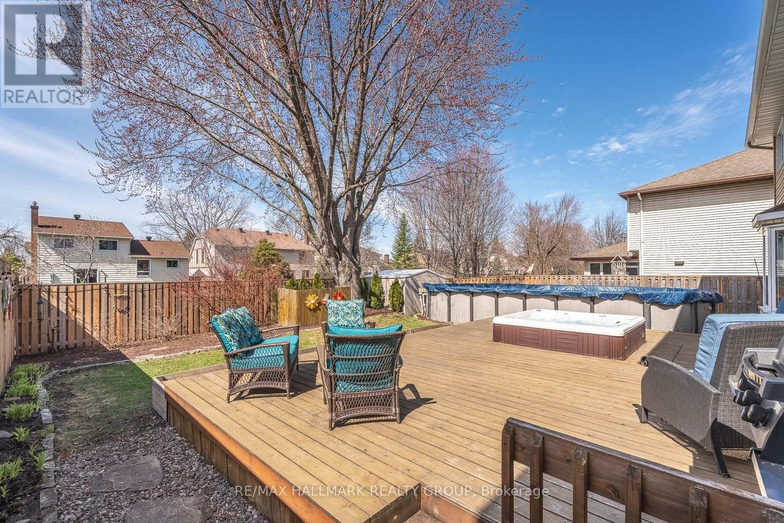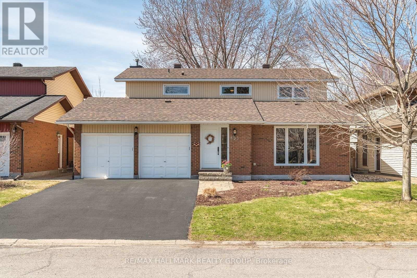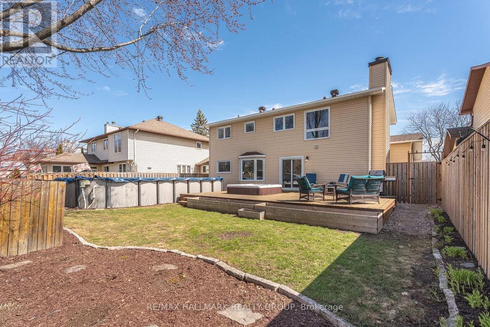 853 ACADIAN GARDENS is a beautifully maintained and updated 2 storey, 4 bedroom single detached home, nestled on a quiet, local traffic only, mature tree lined crescent, BACKING ONTO PARKLAND just steps away from the Ottawa River Pathway, perfect for cycling, walking, and cross-country skiing. Enjoy this practical floor plan perfect for both entertaining and everyday family living, featuring an enclosed front foyer, a custom hickory staircase and railings, formal living and dining rooms with natural finished oak floors, and a bright open concept kitchen/eating area/family room with patio doors leading to a spacious western red cedar deck. The renovated kitchen is designed for functionality, offering a breakfast bar, granite countertops, ceramic backsplash, and enhanced by pot and task lighting. The family room boasts a cozy wood burning fireplace, and the main level also includes a powder room and a laundry room/mudroom with inside access to the double attached garage. Upstairs, you'll find four generously sized bedrooms, with the primary suite featuring a wood burning fireplace, walk-in closet, and a renovated 3-piece ensuite. Three sun-filled bedrooms with hickory wood flooring throughout and a 4 piece bathroom round out the upper level. The finished lower level offers a massive recreation room with high ceilings, gym space, and a relaxing entertainment zone, as well as a large unfinished utility room with ample shelving. Step outside to your southwest facing backyard summer oasis, complete with expansive decking, hot tub, heated above ground pool and shed, fully enclosed by a stunning wood privacy fence with a rich, natural cedar tone. The home features additional updates including crown mouldings, pot lighting, modernized closet doors, and has been freshly painted in tasteful earth tones. With easy access to Highway 174, amenities, reputable schools, parks, and the future LRT, this premium location offers both convenience and lifestyle - Welcome Home!