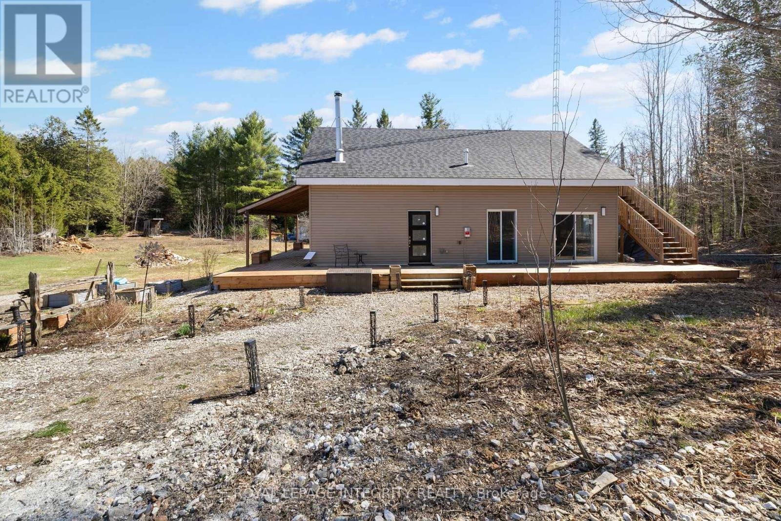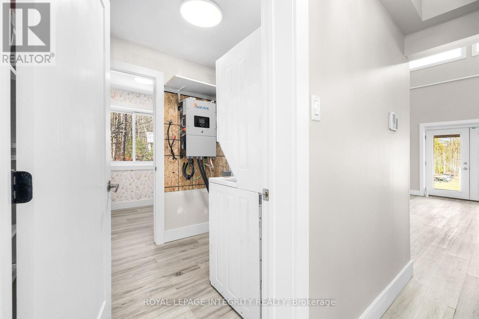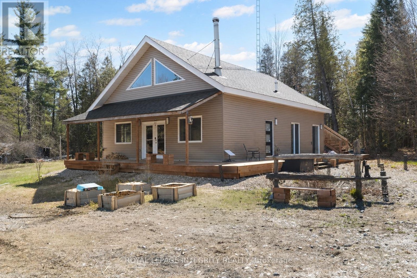Set across 25 acres of mature, treed landscape with over 1,000 feet of frontage along the Clyde River, this exceptional 2021-built home offers a rare opportunity to embrace off-grid living without giving up the comforts of modern life. Waterfront Living just in time for Summer! Designed with true independence in mind, the property is fully powered by a high-performance solar system with Sol-Ark panels, new premium batteries, propane, a wood stove, and a gas generator backup-ensuring dependable, year-round functionality. What makes this property so special is the balance it strikes. You're completely immersed in nature, yet still connected-high-speed internet, doorstep deliveries, and just a short 20-minute drive to Perth or Carleton Place for daily amenities. The lifestyle here is something you feel right away. Mornings start with coffee on the deck as the sun rises over the trees. Days are spent exploring private trails, gardening, or out on the water kayaking and fishing. Wildlife is part of the rhythm - deer, foxes, and rabbits regularly pass through - while evenings bring bonfires, star-filled skies, and even northern lights. In winter, it naturally transforms into a setting for skating, snowshoeing, and snowmobiling. Inside, the layout is both practical and flexible. The main level features two bedrooms, a full bath, and a den or storage space. Upstairs, an open-concept loft functions beautifully as a third bedroom (an amazing Primary Bedroom) or a spacious retreat, easily accommodating a king bed and lounge area. A half bath is already in place. Step out to the second-storey deck, perfectly oriented west for incredible sunset views, with stairs leading down to the grounds.The drive in along Proulx Road sets the tone-quiet, scenic, and completely removed. This is a place where privacy, sustainability, and convenience come together in a way that's hard to find. Built in 2021, this home is ready for its next chapter.