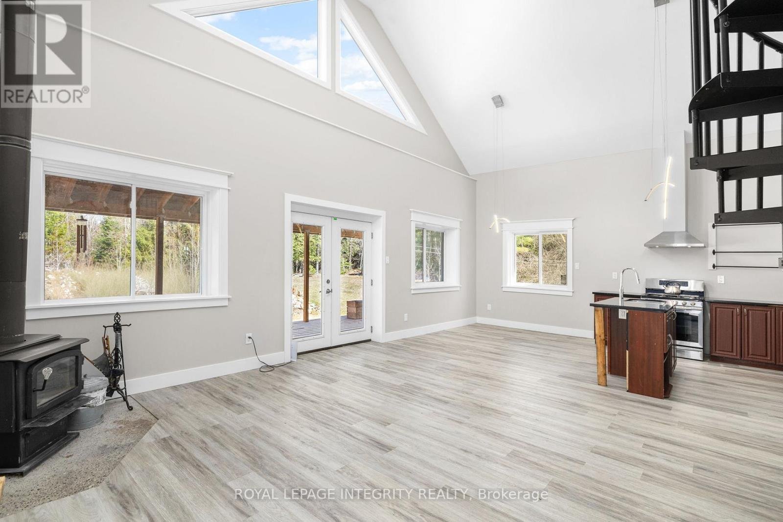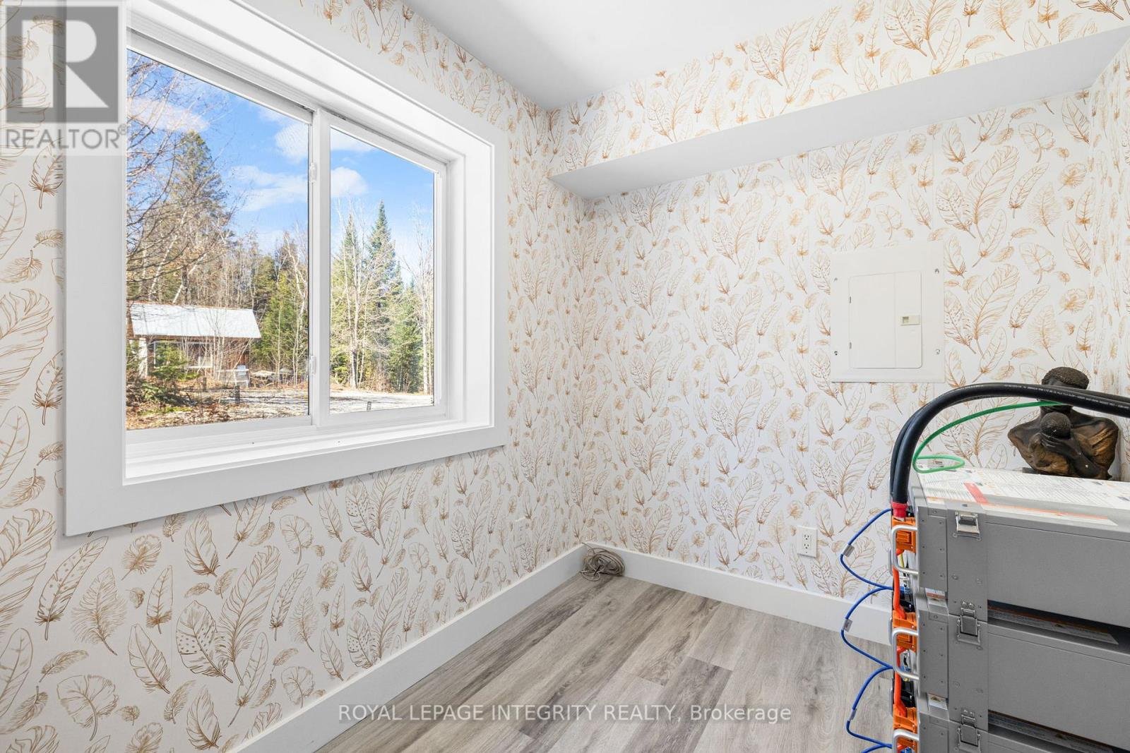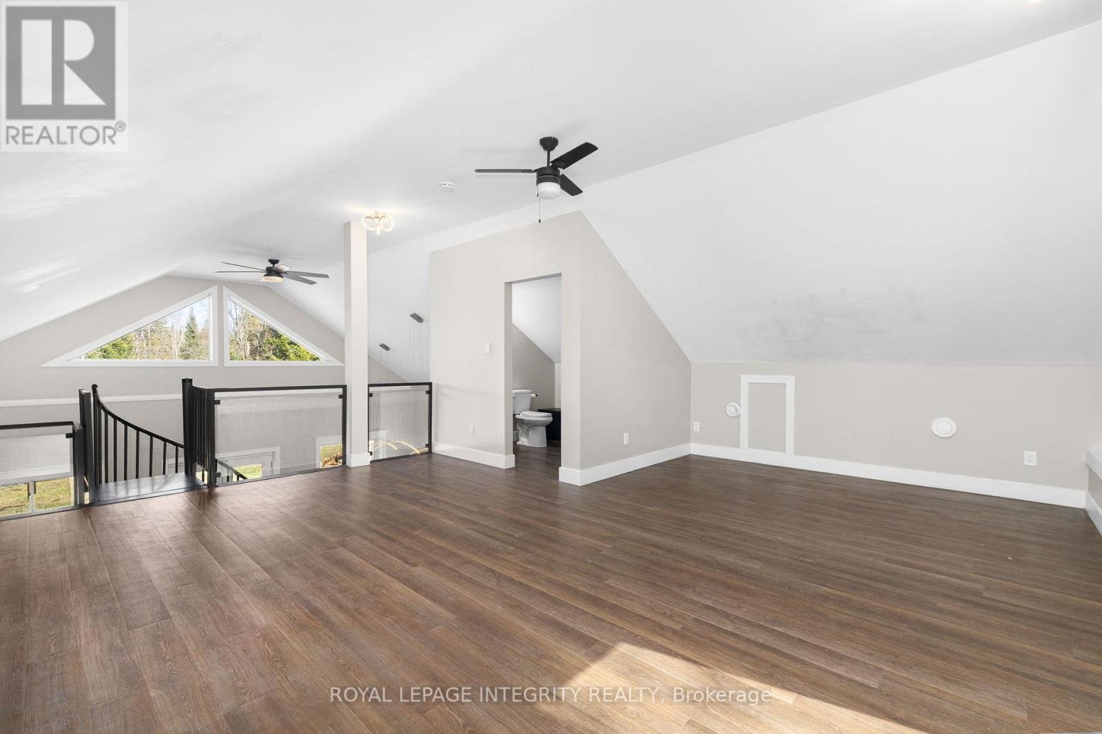 Set across 25 acres of mature, treed landscape with over 1,000 feet of frontage along the Clyde River, this exceptional 2021-built home offers a rare opportunity to embrace off-grid living without giving up the comforts of modern life. Waterfront Living just in time for Summer! Designed with true independence in mind, the property is fully powered by a high-performance solar system with Sol-Ark panels, new premium batteries, propane, a wood stove, and a gas generator backup-ensuring dependable, year-round functionality. What makes this property so special is the balance it strikes. You're completely immersed in nature, yet still connected-high-speed internet, doorstep deliveries, and just a short 20-minute drive to Perth or Carleton Place for daily amenities. The lifestyle here is something you feel right away. Mornings start with coffee on the deck as the sun rises over the trees. Days are spent exploring private trails, gardening, or out on the water kayaking and fishing. Wildlife is part of the rhythm - deer, foxes, and rabbits regularly pass through - while evenings bring bonfires, star-filled skies, and even northern lights. In winter, it naturally transforms into a setting for skating, snowshoeing, and snowmobiling. Inside, the layout is both practical and flexible. The main level features two bedrooms, a full bath, and a den or storage space. Upstairs, an open-concept loft functions beautifully as a third bedroom (an amazing Primary Bedroom) or a spacious retreat, easily accommodating a king bed and lounge area. A half bath is already in place. Step out to the second-storey deck, perfectly oriented west for incredible sunset views, with stairs leading down to the grounds.The drive in along Proulx Road sets the tone-quiet, scenic, and completely removed. This is a place where privacy, sustainability, and convenience come together in a way that's hard to find. Built in 2021, this home is ready for its next chapter.