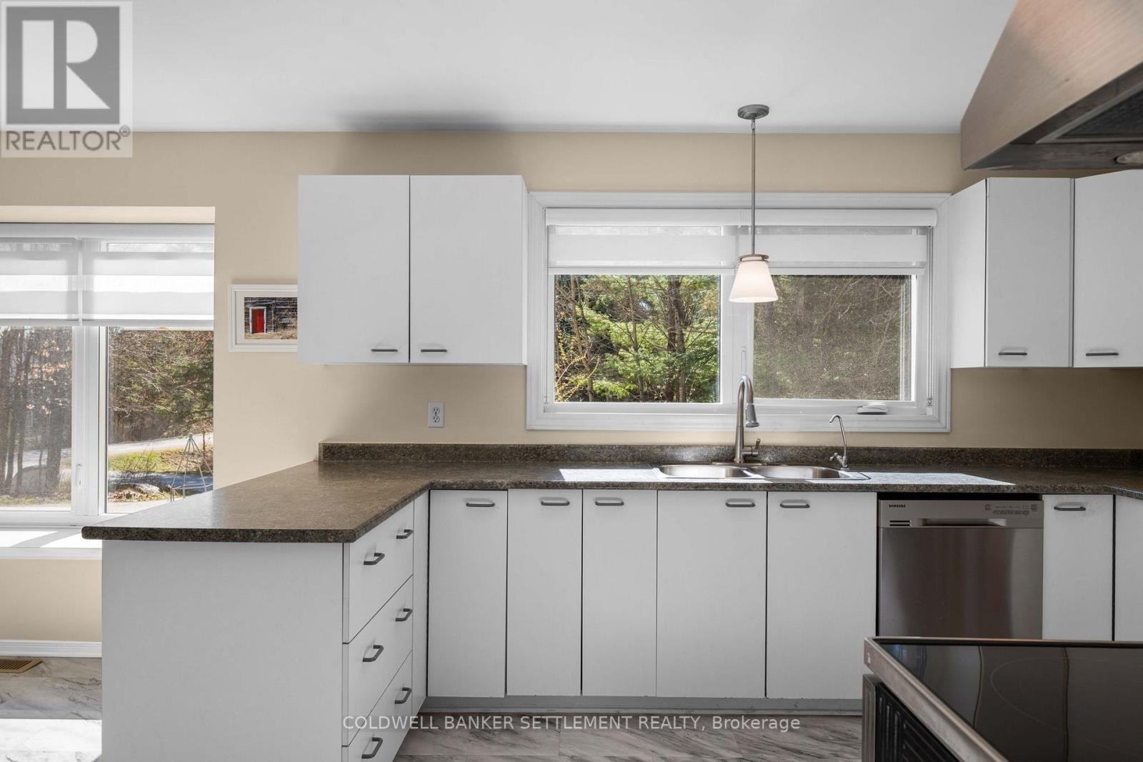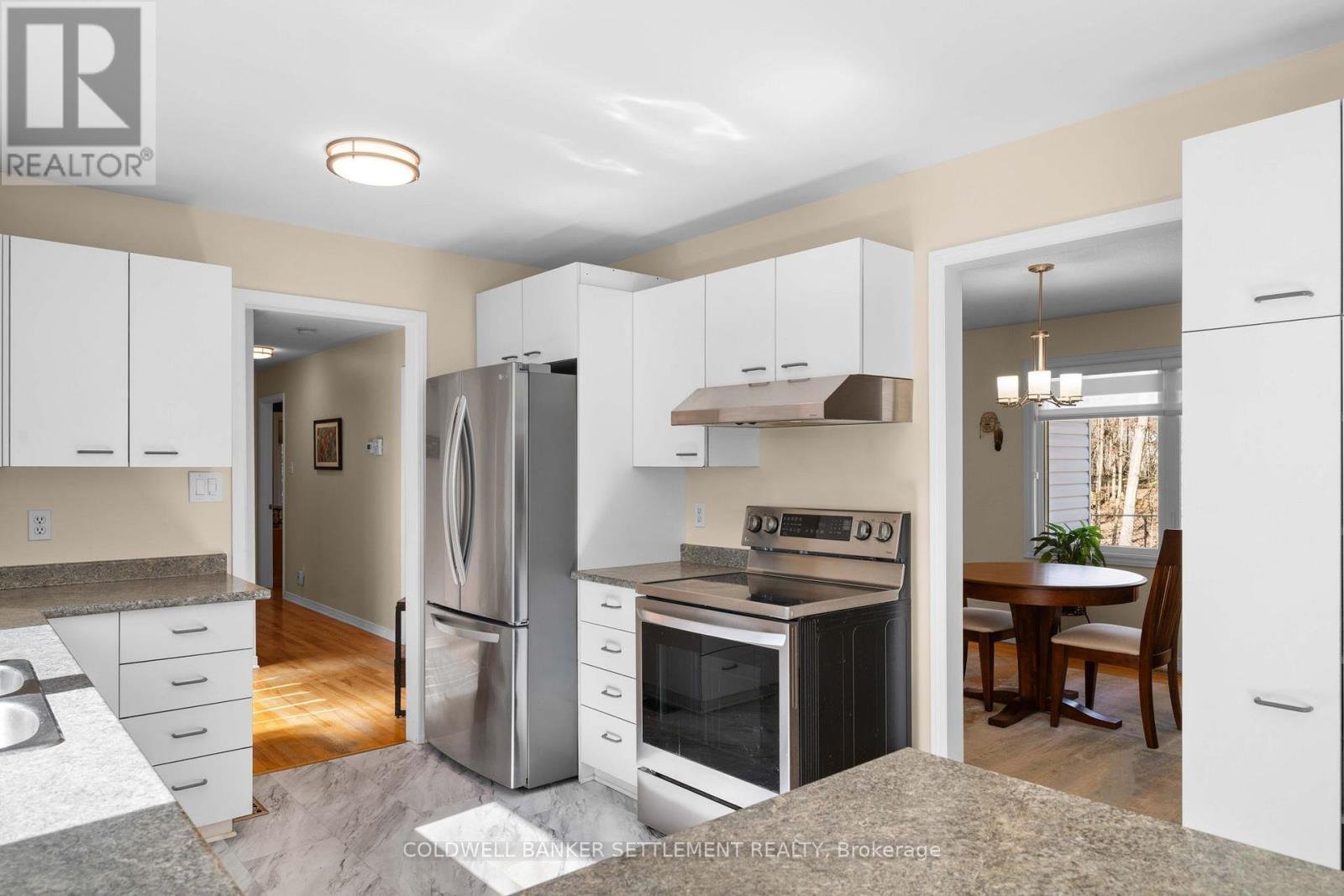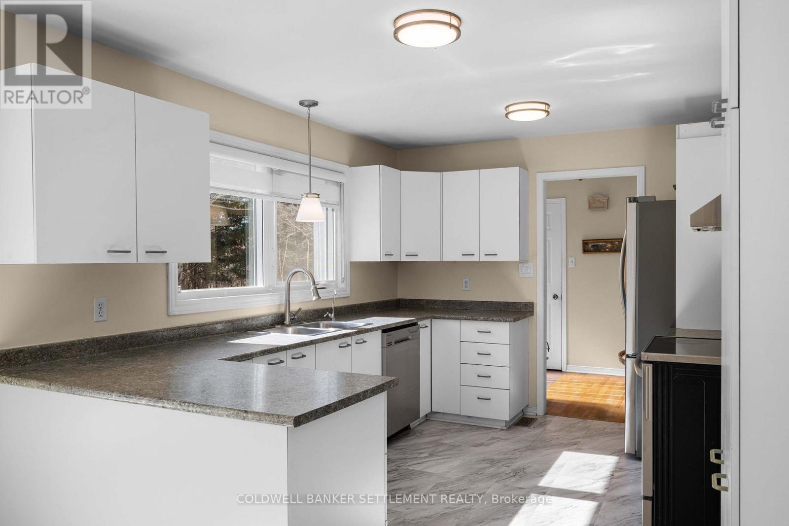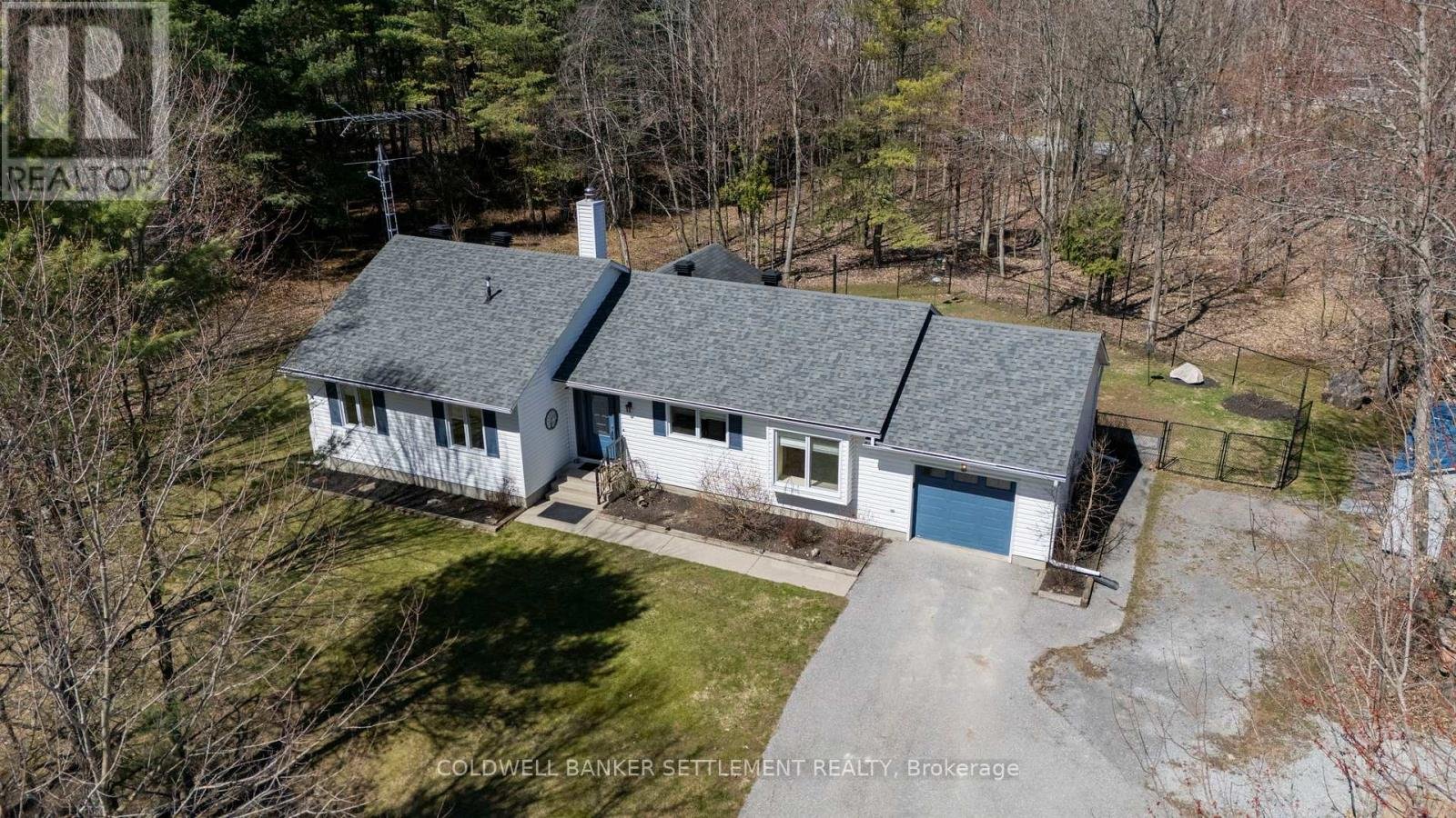 Set in a peaceful wooded setting just minutes from Historic Perth, this spacious two-bedroom bungalow in Maple Glen Estates offers a rare blend of privacy and convenience. Surrounded by a manicured hardwood bush, the property feels like a private retreat, especially once the trees are in full leaf, while still being within 5 minutes of Perth's shops, restaurants, and amenities, and approximately 45 minutes to Ottawa's west end. Set on a desirable corner lot, the home offers natural seclusion with abundant wildlife throughout the property. A paved driveway provides ample parking, while a fenced area is ideal for pets or children. Two storage sheds provide excellent storage, & a recently installed stone patio at the rear creates a quiet outdoor space framed by mature trees. The property includes deeded access to Otty Lake with a private boat launch, dock space, & a shared waterfront area for lakeside enjoyment & gatherings. With high-speed internet, paved township road access, school bus route service, & garbage & recycling pickup at the end of the driveway, it supports comfortable year-round living. Inside, a spacious foyer opens to bright open-concept living & dining areas with hardwood flooring & a cozy wood-burning fireplace. The sun-filled kitchen features a dining nook with bay window overlooking the greenery, & the home offers a practical carpet-free layout throughout. Significant updates within the past five years include a fully renovated modern 5-piece bathroom, new windows, exterior doors & garage door, updated appliances, air exchanger, interior lighting, & window blinds, & the rear portion of the roof will be newly installed, adding further value & peace of mind. The primary bedroom includes a walk-in closet, with a second bedroom offering flexible space for guests, family, or a home office. Additional features include main-level laundry, an attached single-car garage with interior access, & a full unfinished basement for storage or future development.