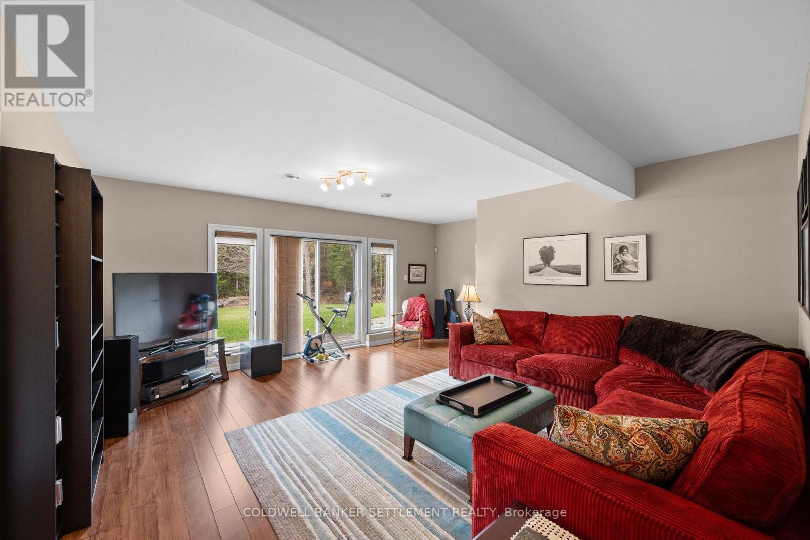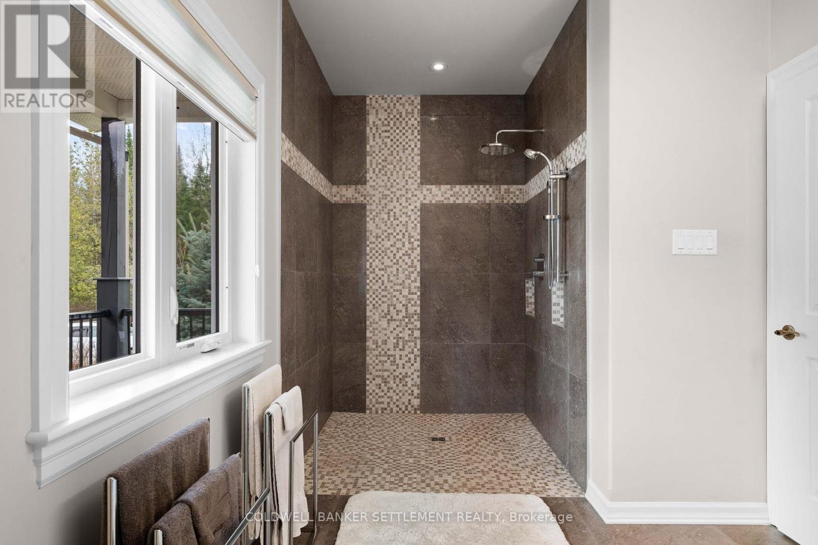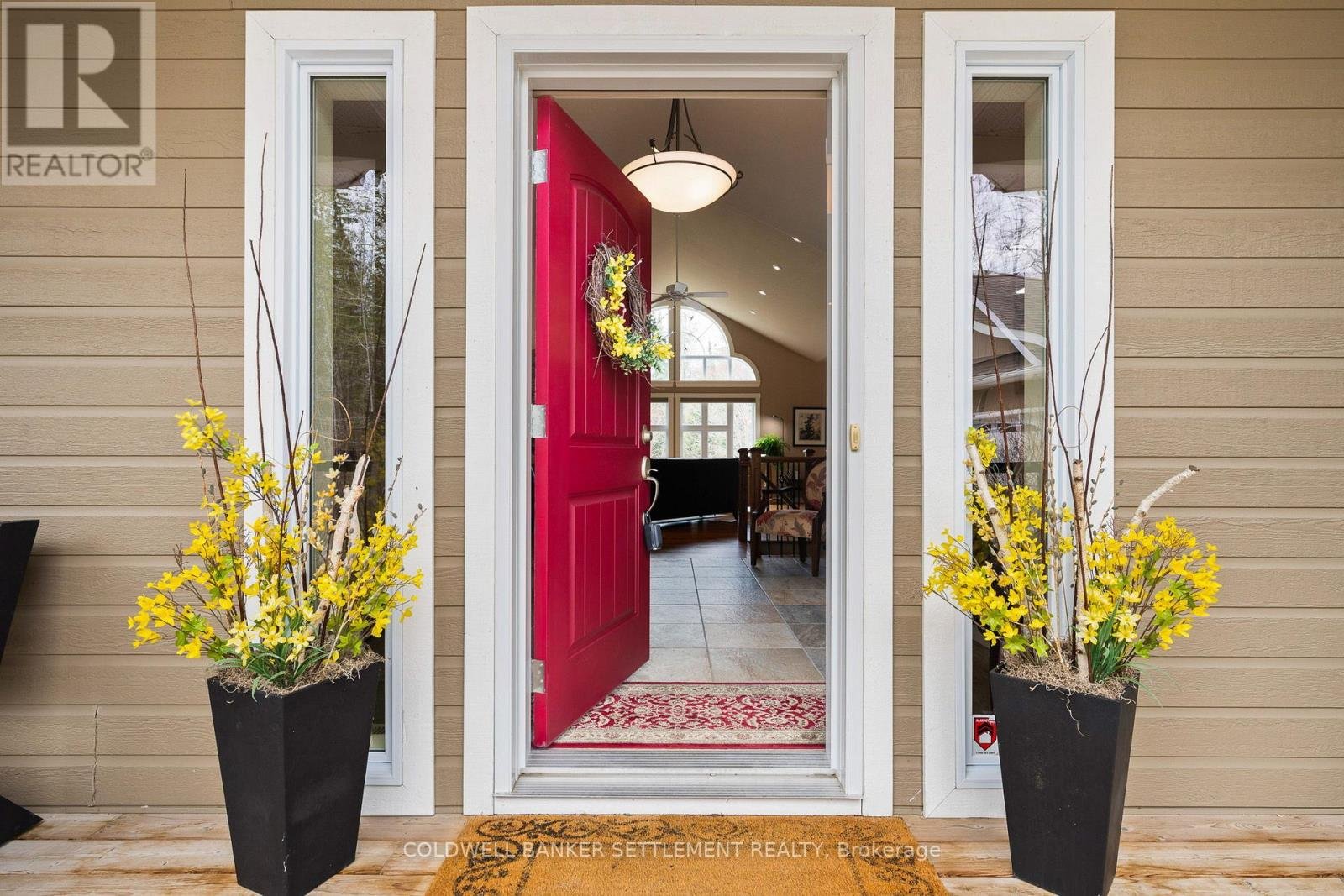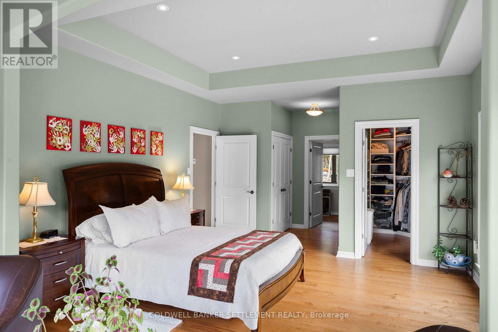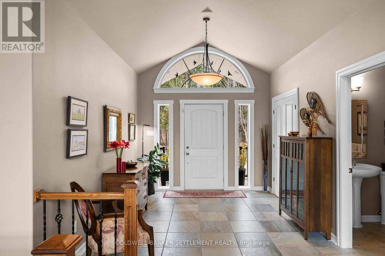 Perfect privacy! Imagine owning your own personal 100-acre forest. Only minutes to Lanark Village and 15 minutes to historic Perth. The owners created with Evergreen Construction a beautiful, efficient, easy care, comfy home where they love to relax and entertain. So many special details and features make this home quietly elegant but country casual at the same time. It was designed for energy efficiency and to make life simple, quiet, easy, and fun. Custom kitchen by Ottawa Valley Kitchens with cherry cabinets, quartz counters, top quality stainless appliances, pot filler, drink fridge, plus there is a large pantry for storing smaller appliances. Open concept with cathedral ceilings, standout lighting from Hubbardton Forge, gorgeous hickory flooring. Oversize windows galore for views of the great outdoors and you will love the coziness of the wood burning corner stone fireplace in the living room. Main floor laundry, mudroom, covered porch, wrap around decks. Primary bedroom suite with sitting/reading nook and door to personal deck, 9 foot coffered ceiling, large walk-in shower plus soaker tub in the ensuite, walk- in closet plus additional closet. 2 bedrooms on the walkout lower level plus family room, office, craft room, utility area., and loads of storage! We are not done yet - 2 double garages! One is insulated and drywalled with 10.5' ceilings (24x24) with adjoining heated workshop (20x24) and the other designed for storage of equipment, etc. (24x24) Trails through the trees - a map will be made available. An exceptional home and property - come see!