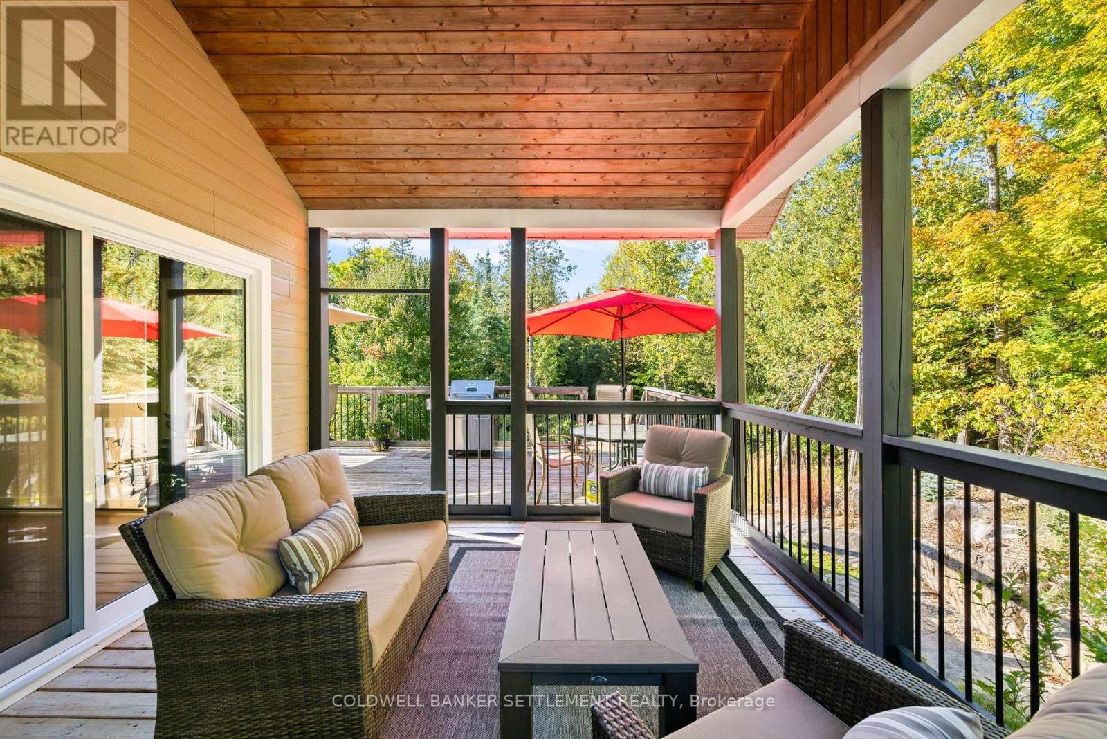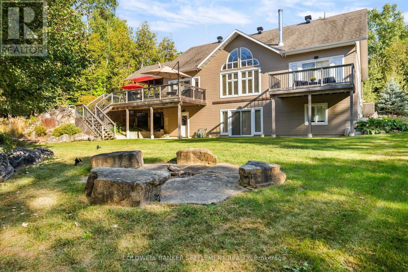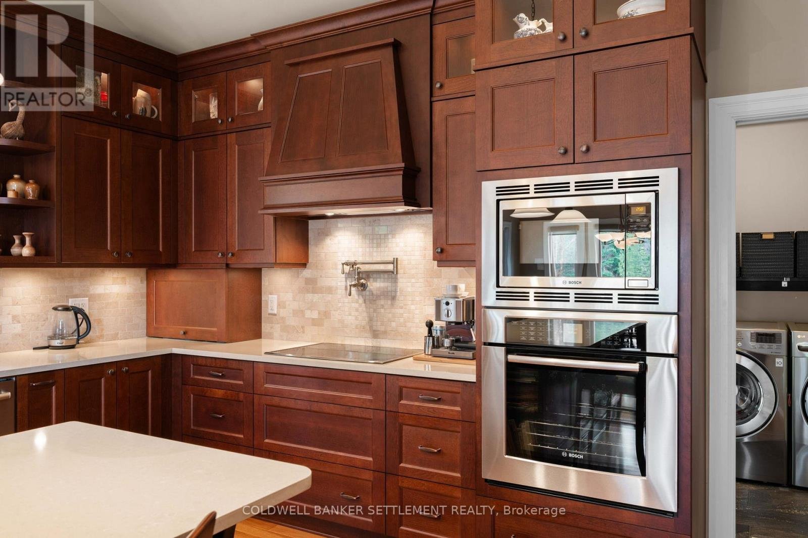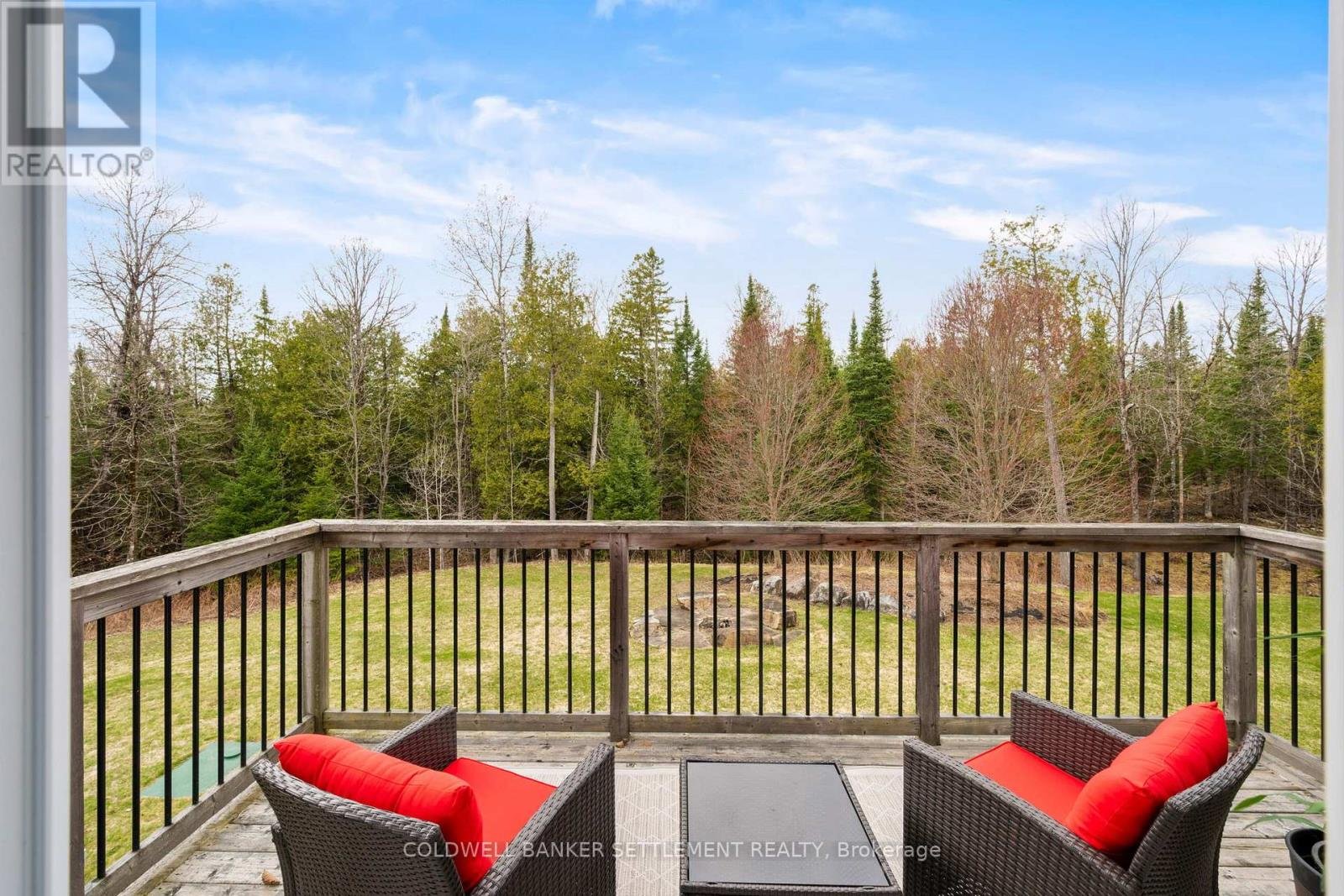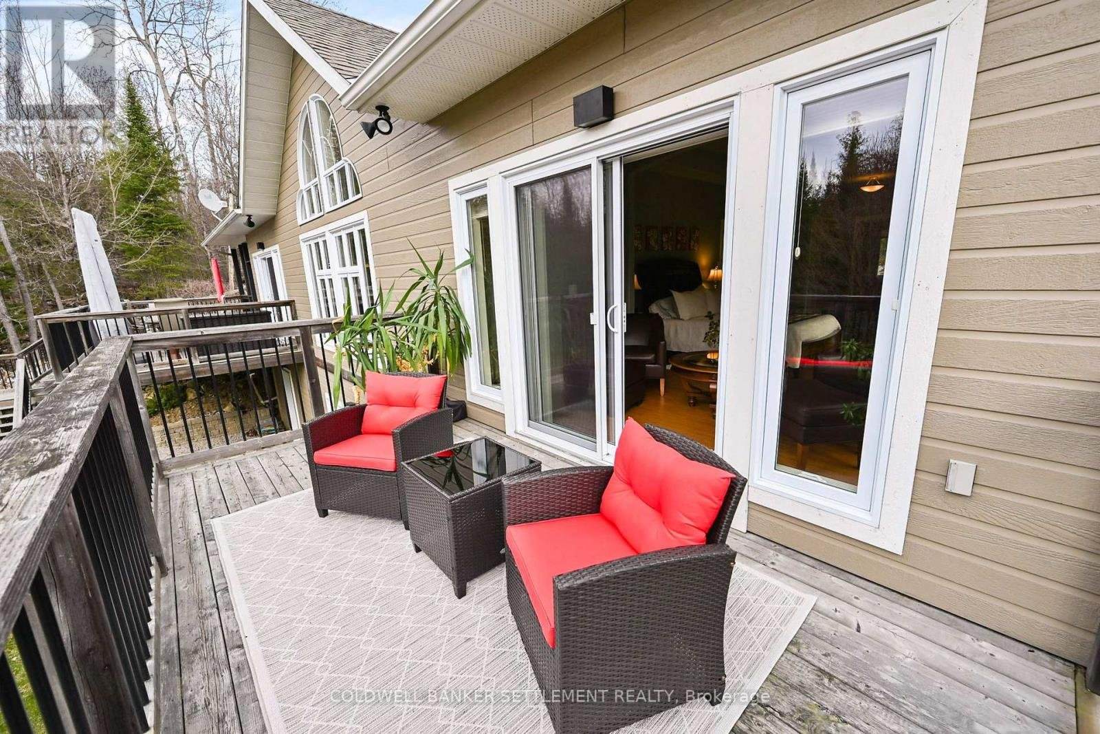 Perfect privacy! Imagine owning your own personal 100-acre forest. Only minutes to Lanark Village and 15 minutes to historic Perth. The owners created with Evergreen Construction a beautiful, efficient, easy care, comfy home where they love to relax and entertain. So many special details and features make this home quietly elegant but country casual at the same time. It was designed for energy efficiency and to make life simple, quiet, easy, and fun. Custom kitchen by Ottawa Valley Kitchens with cherry cabinets, quartz counters, top quality stainless appliances, pot filler, drink fridge, plus there is a large pantry for storing smaller appliances. Open concept with cathedral ceilings, standout lighting from Hubbardton Forge, gorgeous hickory flooring. Oversize windows galore for views of the great outdoors and you will love the coziness of the wood burning corner stone fireplace in the living room. Main floor laundry, mudroom, covered porch, wrap around decks. Primary bedroom suite with sitting/reading nook and door to personal deck, 9 foot coffered ceiling, large walk-in shower plus soaker tub in the ensuite, walk- in closet plus additional closet. 2 bedrooms on the walkout lower level plus family room, office, craft room, utility area., and loads of storage! We are not done yet - 2 double garages! One is insulated and drywalled with 10.5' ceilings (24x24) with adjoining heated workshop (20x24) and the other designed for storage of equipment, etc. (24x24) Trails through the trees - a map will be made available. An exceptional home and property - come see!