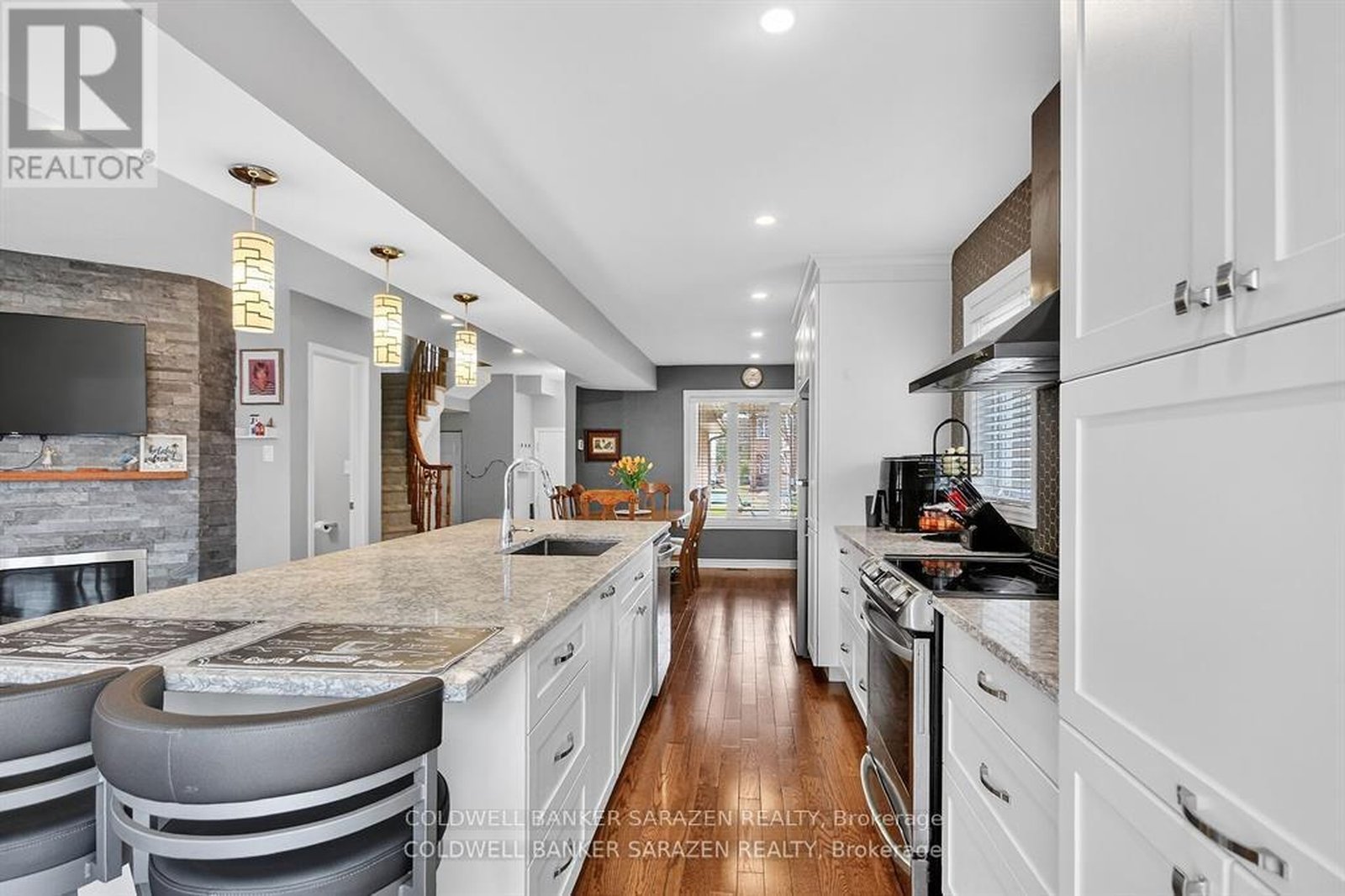 GORGEOUS END UNIT in a Fantastic Location! Welcome to 43 Daventry - a beautifully updated 3+ bedroom, 3.5 bathroom home offering space, style, and a private rear yard. The exterior is just as impressive as the interior, featuring a 4-car driveway, interlock in the backyard, river rock landscaping in the front, a metal-roof gazebo, and a fully fenced private yard-ideal for relaxing or entertaining. Inside, the completely renovated kitchen is absolutely stunning, showcasing beautiful island and coffee bar. This kitchen is both beautiful and highly functional. The main floor offers all new wood flooring and tile, along with a bright living room enhanced by a cozy fireplace. A mid-level family room with a second fireplace provides additional flexible living space-perfect for families or entertaining. Upstairs, you'll find a very large primary bedroom plus two other generous-sized bedrooms. The finished basement adds even more living space, complete with newer Berber carpet and a bathroom featuring heated flooring for extra comfort. Extensive renovations and inclusions are listed in the attachments. All of this-and so much more-makes this home a must-see. Have a look. You'll be glad you did!