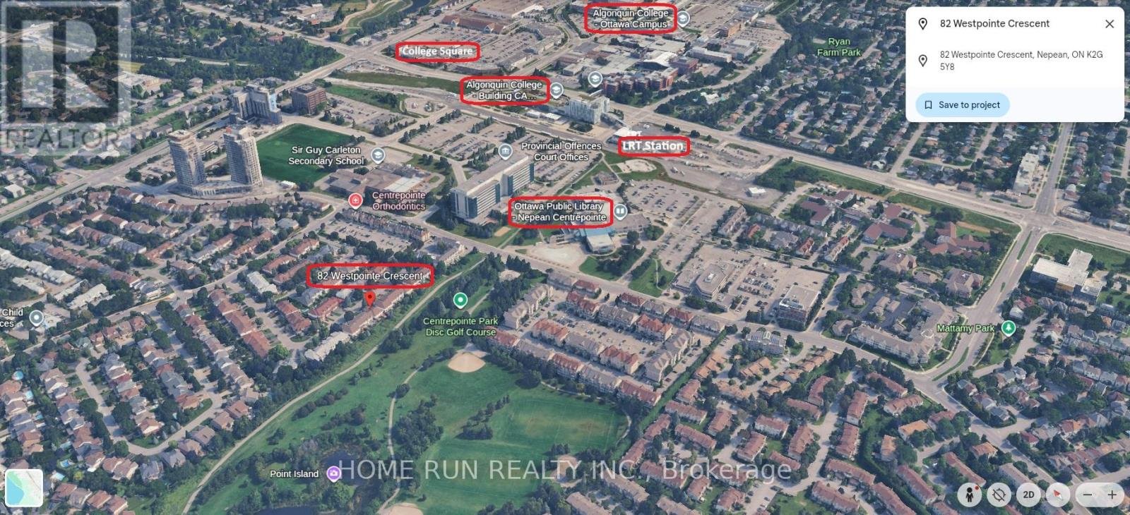 Open House 2-4pm May3! 5 star Location!!! Immaculate Richcraft Glenview Executive freehold, largest townhome model in desirable Centrepointe, offering 1950 square feet with premium southern exposure backing onto 30 acre Centrepointe Park. Carpet free. Gleaming flooring and ceramic tile, updated powder room and kitchen with granite counters and stainless steel appliances. Family room with gas fireplace and sliding doors to 16X16 deck with superb park view. Spacious master bedroom with double entry doors, luxury 5 piece ensuite with separate shower, large soaker tub and huge walk-in closet. Two additional generous bedrooms, one with second walk-in closet, a full second bathroom and convenient second floor laundry facilities. Front walkway with interlock. Additional upgrades include new heat pump 2023, Fridge 2024, Stove 2021, Furnace 2019, Dishwasher 2022, Garage Door 2023, Insulation 2019, Duct cleaning 2025, Painting 2025. Within 10 minutes walk to Ben Franklin Place, Centrepointe Library /theatre, College Square, Baseline Station, LRT Station and Algonquin College. Fabulous Location and move-in ready!!