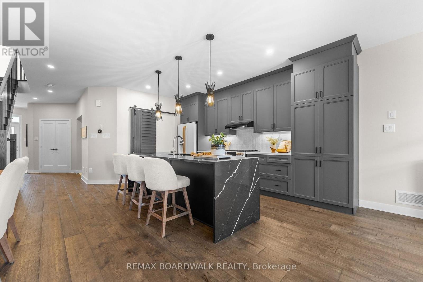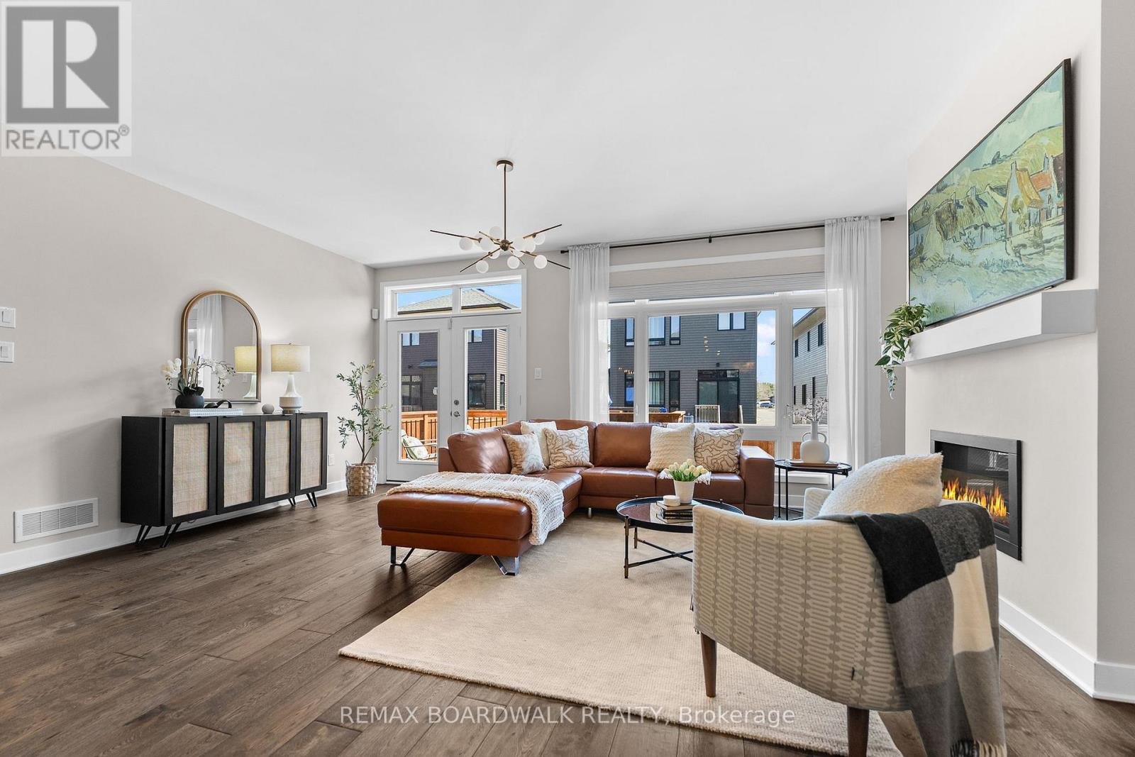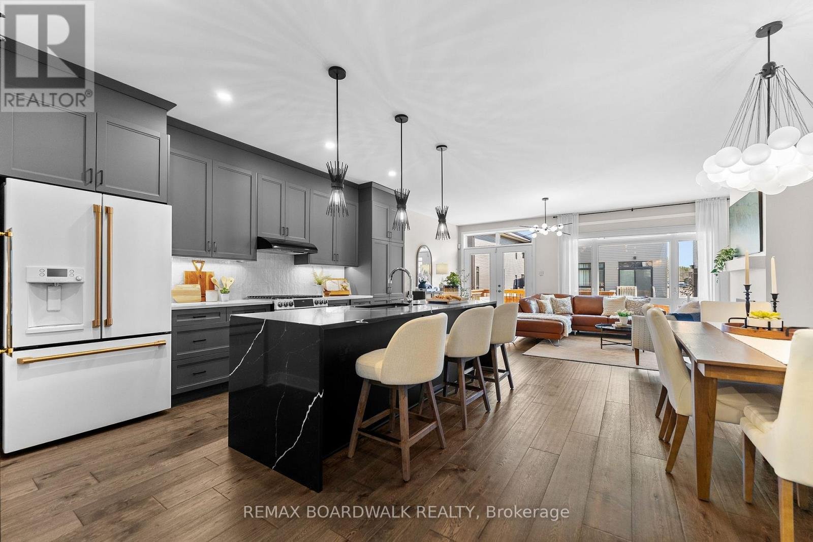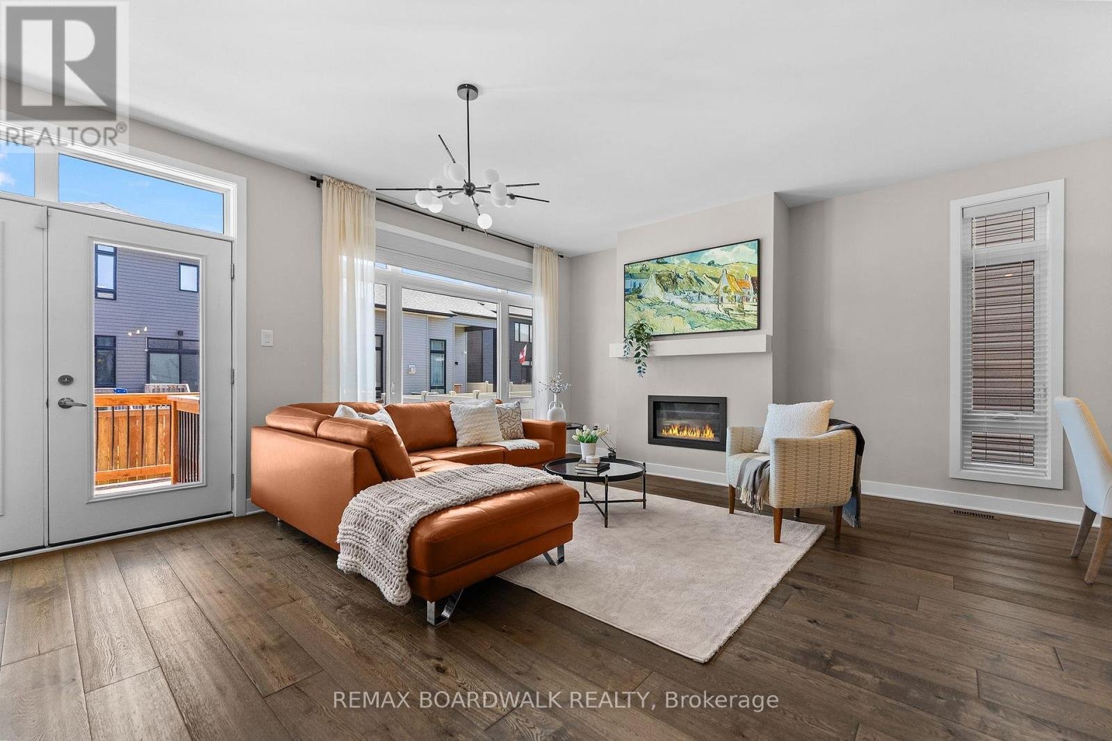 Thoughtfully designed, meticulously finished, & effortlessly styled for the way modern families actually want to live! Upon entry the 9' ceilings are set off by the clean lines, natural light, and open concept design creating an atmosphere of effortless sophistication feeling both luxurious & genuinely welcoming. Sleek custom cabinetry anchored with accenting quartz countertops & a dramatic waterfall island including a separate pantry & high end appliances; a culinary dream & centre of the living space! Chic fireplace & wall of windows finish the living space. Hard-surface flooring thru-out the home is seamless providing low maintenance living. Upstairs layout with secondary bedrooms generously proportioned, walk in closets; they share a 4pc. bath that carry the sleek finishes from the main level & separate them from the primary suite. Spacious & serene suite with a walk-in closet generously scaled, w/dressing space. The 5 pc. spa like ensuite is perfect for your end of day retreat, with ample space for a king size bed this primary bedroom is perfect after a long day! The laundry room tucked on this 2nd floor is the perfect size and includes a window! The lower level designed for the growing family & entertaining is wired for a home theatre and features a stylish wet bar area. A den/office with double doors makes a great work space or for overnight guests. With a rough-in & framed bathroom - there is room to expand on.The outdoor space was not overlooked - fully fenced & landscaping completed to carry the clean lines and chic finishes outdoors for summer entertaining including an upper deck for coffee & cocktails on the busier workdays! This model was modified from a 4 bedroom plan and thoughtfully finished giving the primary suite the attention & space it deserves. This home has been meticulously maintained & thoughtfully designed to be one of a kind that will not disappoint, beautifully located within a community of its own. Not just a house....this is home!