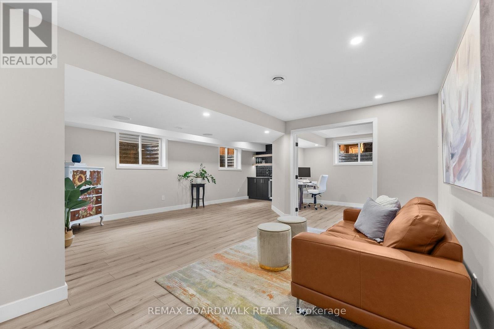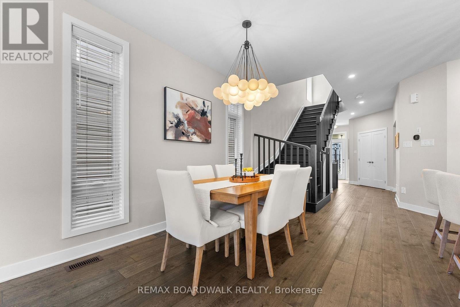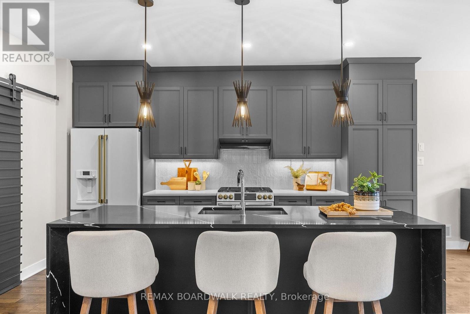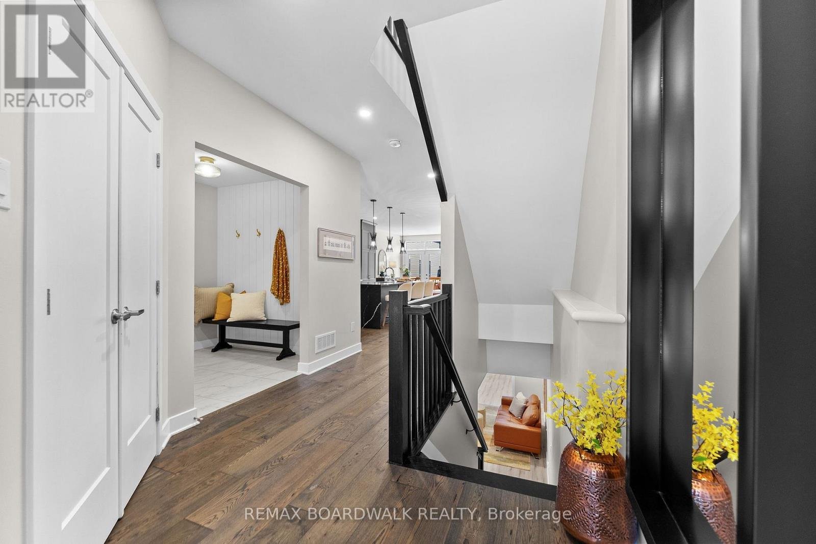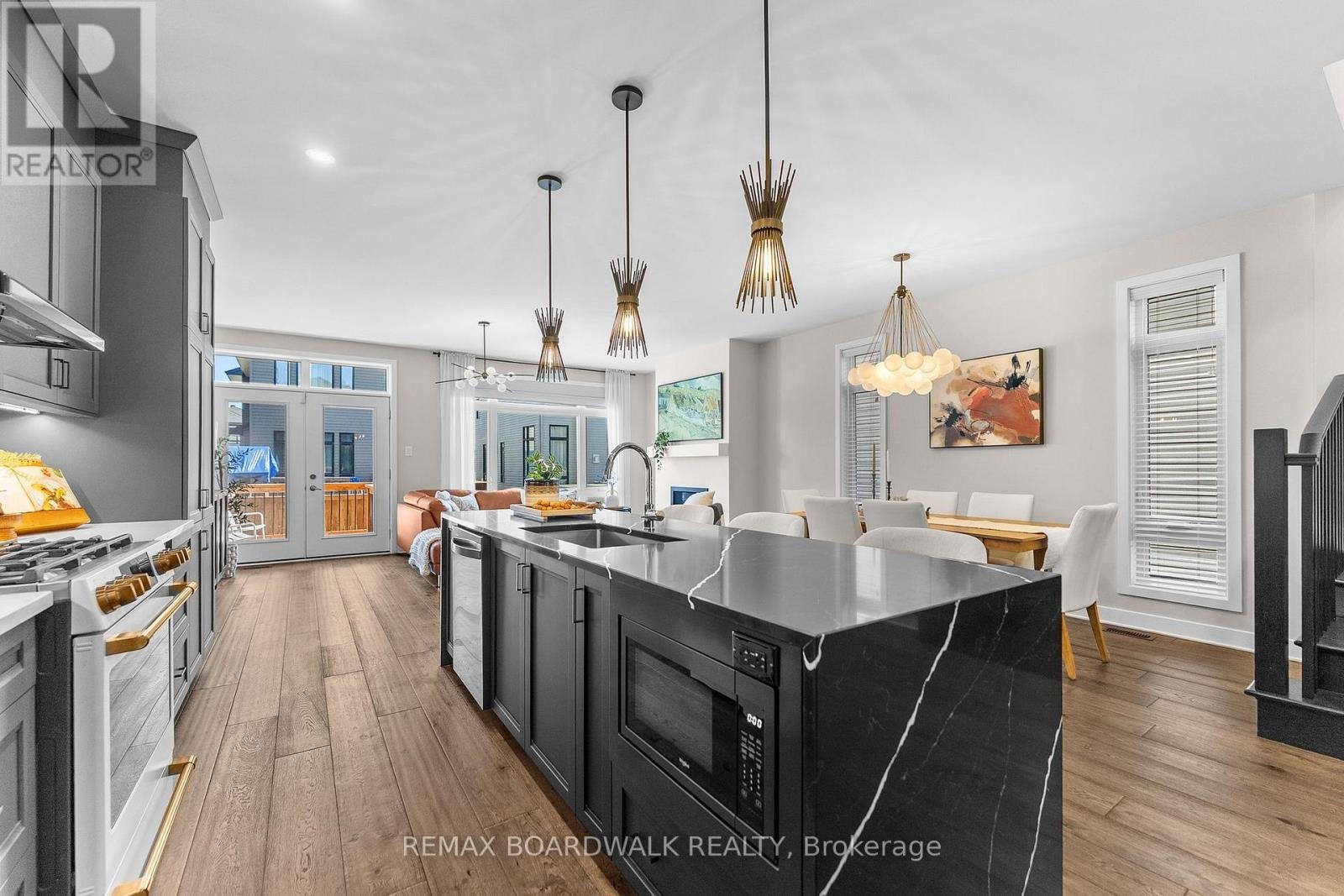 Thoughtfully designed, meticulously finished, & effortlessly styled for the way modern families actually want to live! Upon entry the 9' ceilings are set off by the clean lines, natural light, and open concept design creating an atmosphere of effortless sophistication feeling both luxurious & genuinely welcoming. Sleek custom cabinetry anchored with accenting quartz countertops & a dramatic waterfall island including a separate pantry & high end appliances; a culinary dream & centre of the living space! Chic fireplace & wall of windows finish the living space. Hard-surface flooring thru-out the home is seamless providing low maintenance living. Upstairs layout with secondary bedrooms generously proportioned, walk in closets; they share a 4pc. bath that carry the sleek finishes from the main level & separate them from the primary suite. Spacious & serene suite with a walk-in closet generously scaled, w/dressing space. The 5 pc. spa like ensuite is perfect for your end of day retreat, with ample space for a king size bed this primary bedroom is perfect after a long day! The laundry room tucked on this 2nd floor is the perfect size and includes a window! The lower level designed for the growing family & entertaining is wired for a home theatre and features a stylish wet bar area. A den/office with double doors makes a great work space or for overnight guests. With a rough-in & framed bathroom - there is room to expand on.The outdoor space was not overlooked - fully fenced & landscaping completed to carry the clean lines and chic finishes outdoors for summer entertaining including an upper deck for coffee & cocktails on the busier workdays! This model was modified from a 4 bedroom plan and thoughtfully finished giving the primary suite the attention & space it deserves. This home has been meticulously maintained & thoughtfully designed to be one of a kind that will not disappoint, beautifully located within a community of its own. Not just a house....this is home!