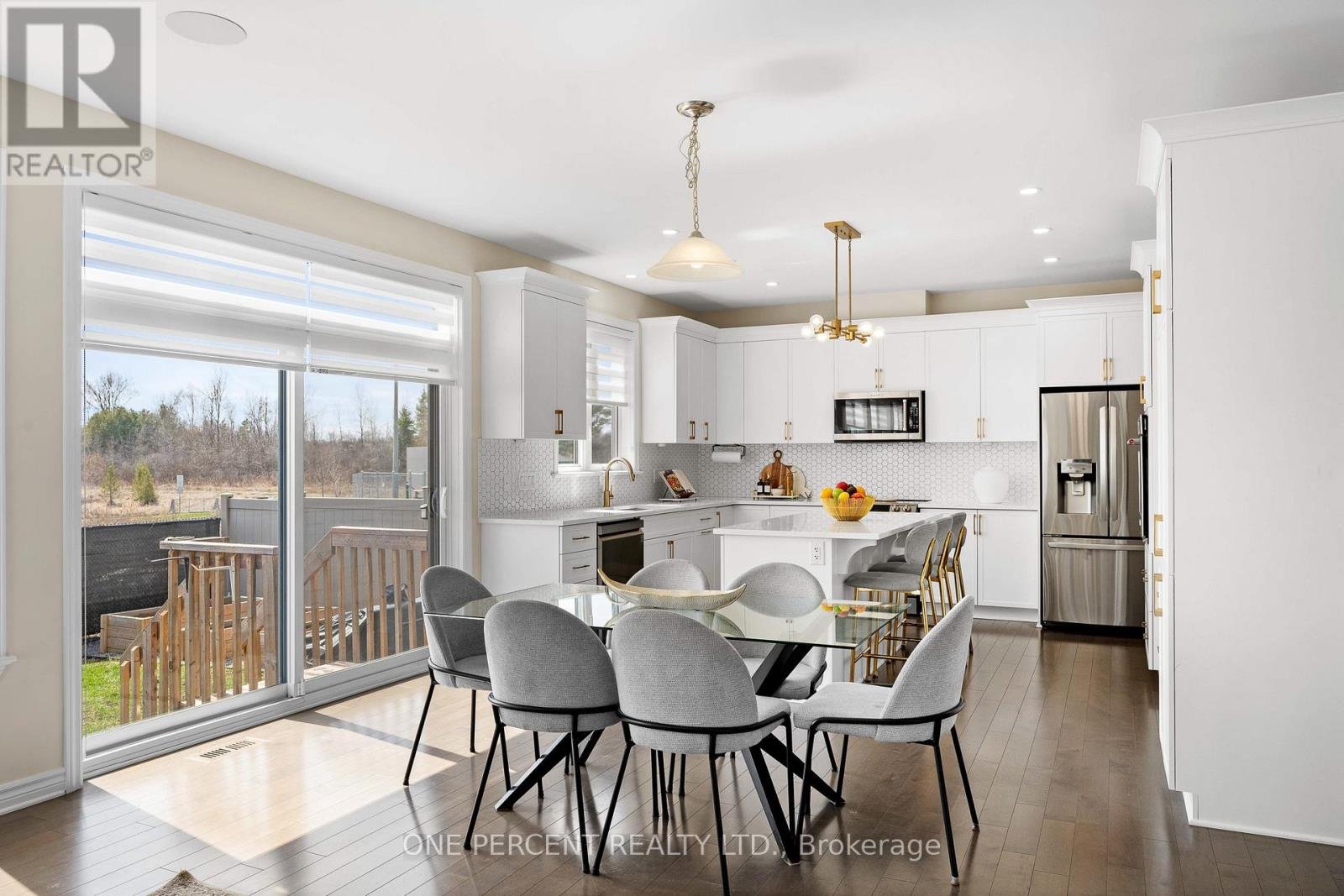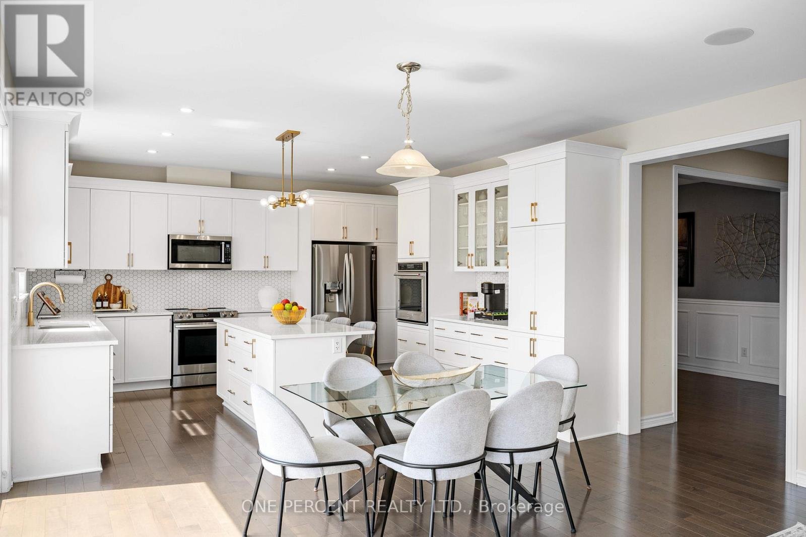Some homes simply have more of everything. Built by Tartan in 2021, this Cambridge model in Edenwylde delivers over 3,600 sq. ft. of above-grade living space, four bedrooms, two private ensuites, a versatile loft, and approximately $70,000 in builder upgrades throughout. A walk-in closet in the foyer handles everyday arrivals with ease, while a mudroom off the garage keeps the chaos where it belongs. From there, the main floor opens into a dedicated office, formal living and dining rooms, and a great room anchored by a gas fireplace. The kitchen is designed to perform and impress, with stainless steel appliances, double ovens, quartz countertops, a coffee station, and a stylish backsplash while hardwood flooring runs throughout the principal living areas. Upstairs, the primary suite is a true retreat: a generous walk-in closet and a spa-quality ensuite with a double quartz vanity, soaker tub, and glass-enclosed shower. A second bedroom has its own private ensuite, while two additional bedrooms share a full bath with quartz counters and double sinks. A dedicated laundry room on this level adds everyday convenience, and the central loft, currently used as a family room, offers flexible space that can evolve with your household. Set in Edenwylde, a family-oriented community in the heart of Stittsville, with parks, top schools, and everyday conveniences close at hand. Check out the virtual tour and book your private showing today.