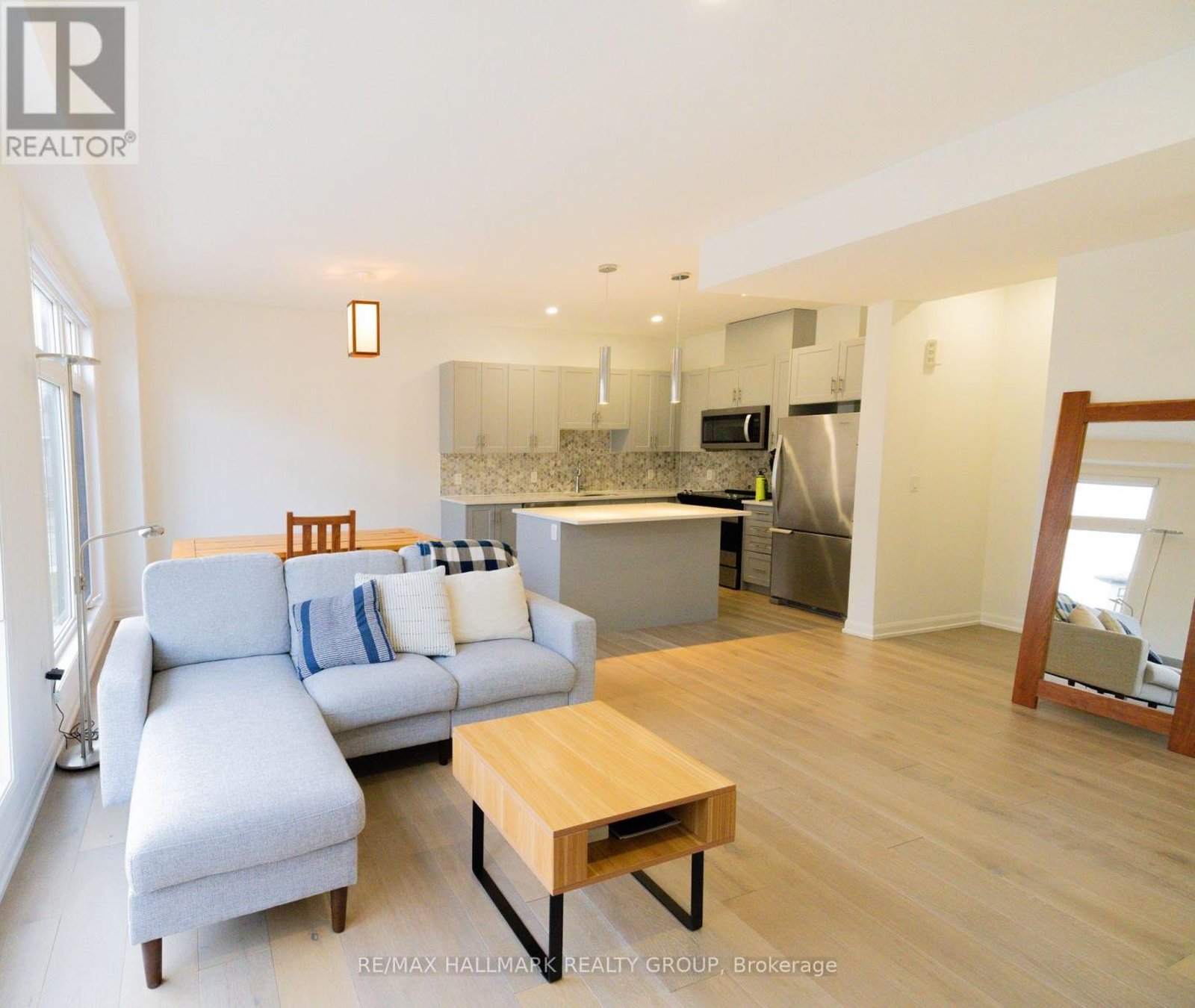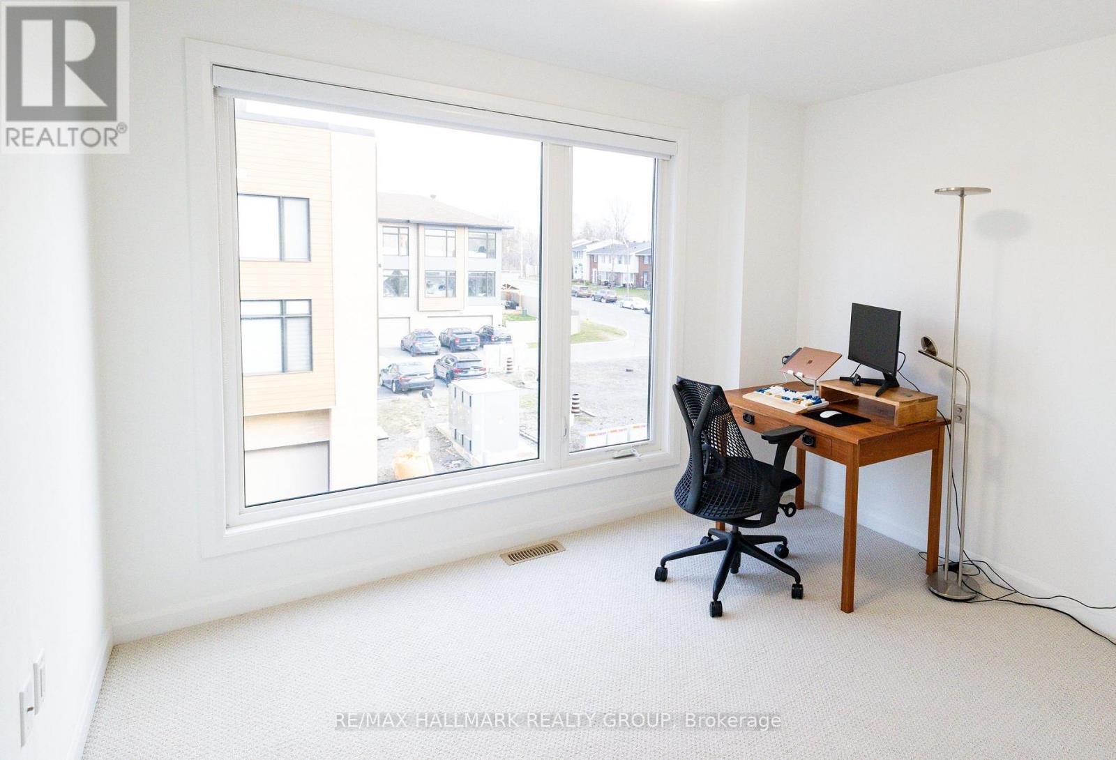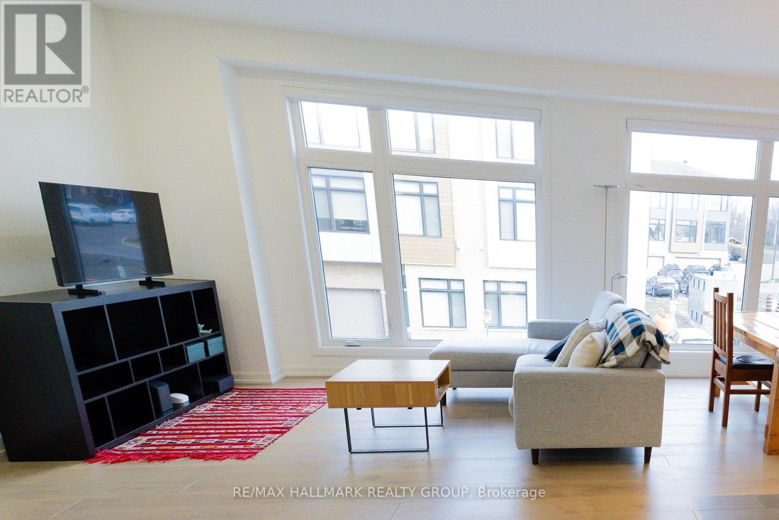 Step into this beautifully maintained 2020-built 3-storey townhome, offering modern finishes, abundant natural sunlight, and exceptional convenience in a prime location. The entry level features a flexible den space along with a full bathroom, perfect for a home office, guest area, or bonus family room.On the second level, enjoy hardwood flooring and a bright, sun-filled open-concept design that seamlessly connects the living room, dining area, and a stylish kitchen complete with a large island, ideal for both everyday living and entertaining. Large windows throughout allow for plenty of natural light, creating a warm and inviting atmosphere.The upper level offers two spacious bedrooms and a full bathroom, providing a comfortable and private retreat. Thoughtfully designed custom closet organization with built-in drawers and hanging systems enhances functionality and storage.One of the home's standout features is the impressive rooftop terrace with a gas hookup, perfect for outdoor dining, summer BBQs, or relaxing evenings.Complete with a 1-car garage equipped with a 30A outlet (240V, 24A), ideal for electric vehicle charging or workshop use, this home is ideally located just minutes to Bayshore Shopping Centre (approx. 8 minutes), Queensway Carleton Hospital (approx. 3 minutes), and the nearby power centre featuring IKEA, Indigo, and more (approx. 2 minutes). Enjoy easy access to major highways, making commuting across the city simple and efficient.POTL fee $121.72 includes snow removal and garbage pickup.